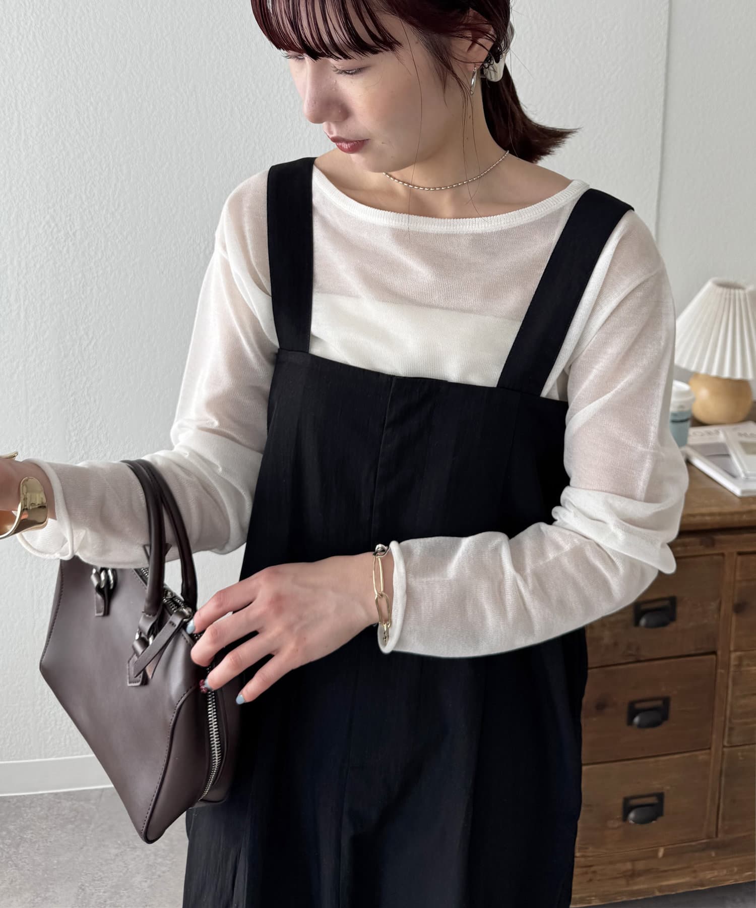 暑い時期はタンクトップやTシャツを、寒い時期にはロンTやニットなど、インナー次第でロングシーズン着用いただけるアイテムです。