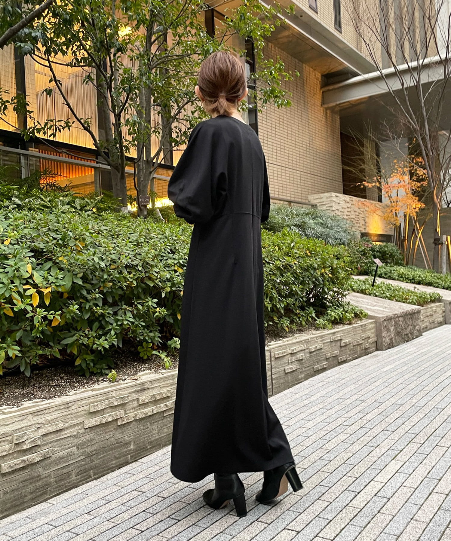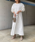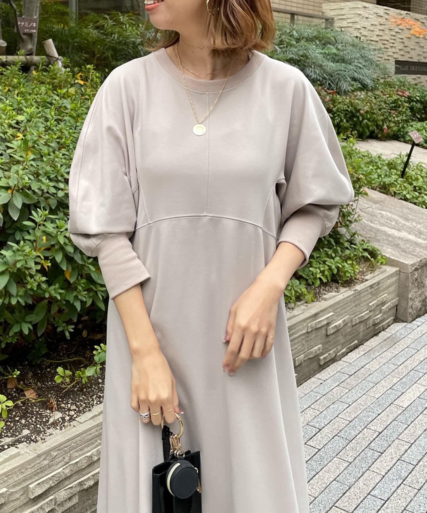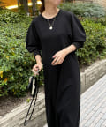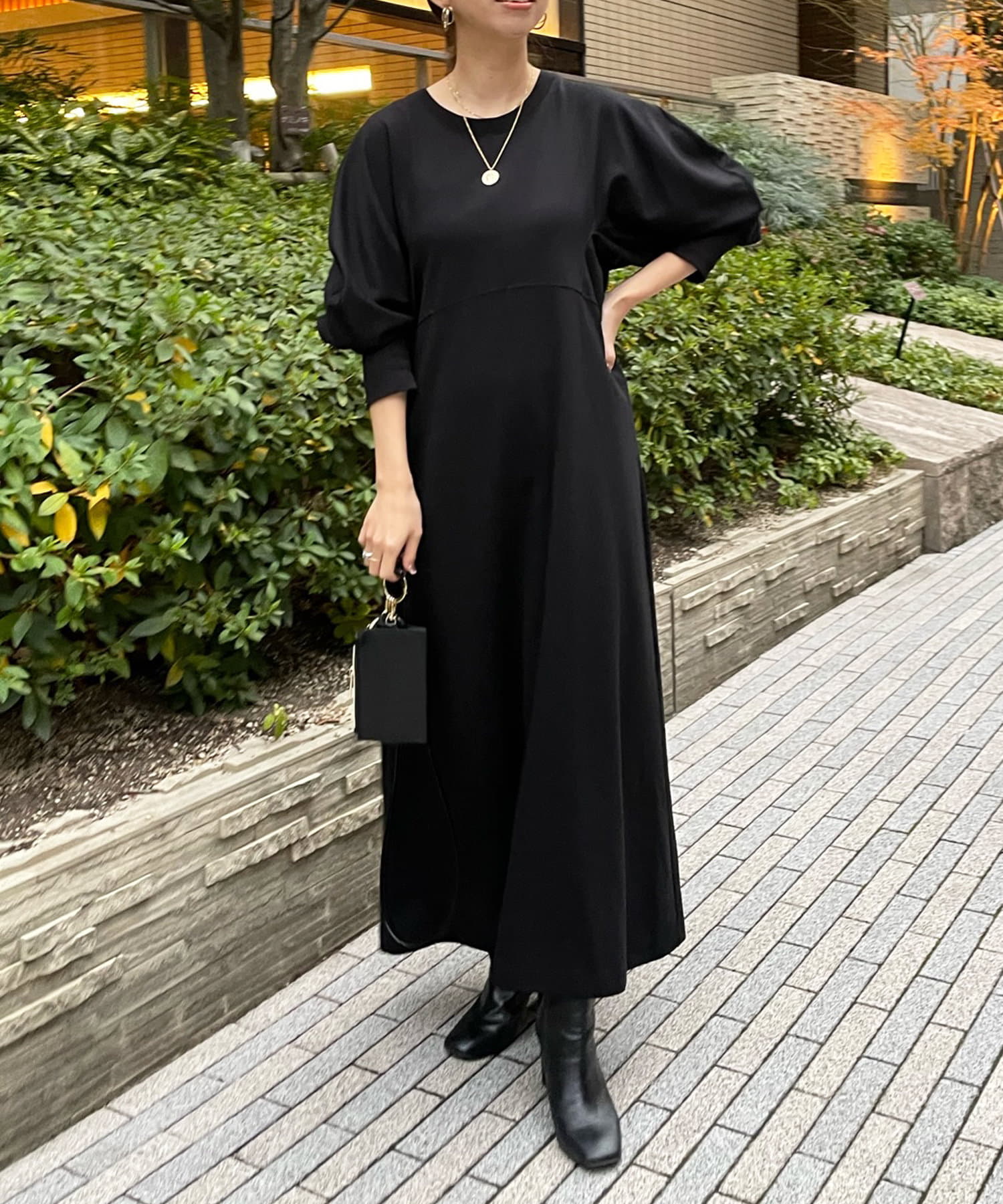 ウエストがくびれるシルエットなのでボリューム袖でも着太りしない印象です。