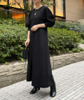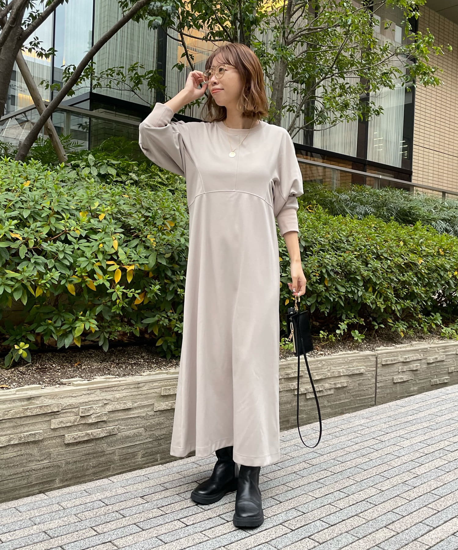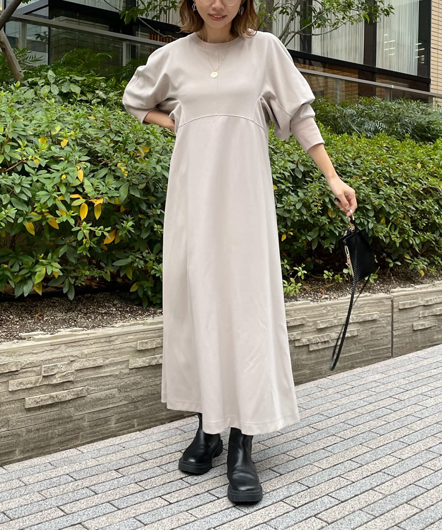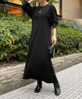 身体のラインを拾わずにすっぽりと覆ってくれるロング丈のワンピースは、ノンストレスな着心地で