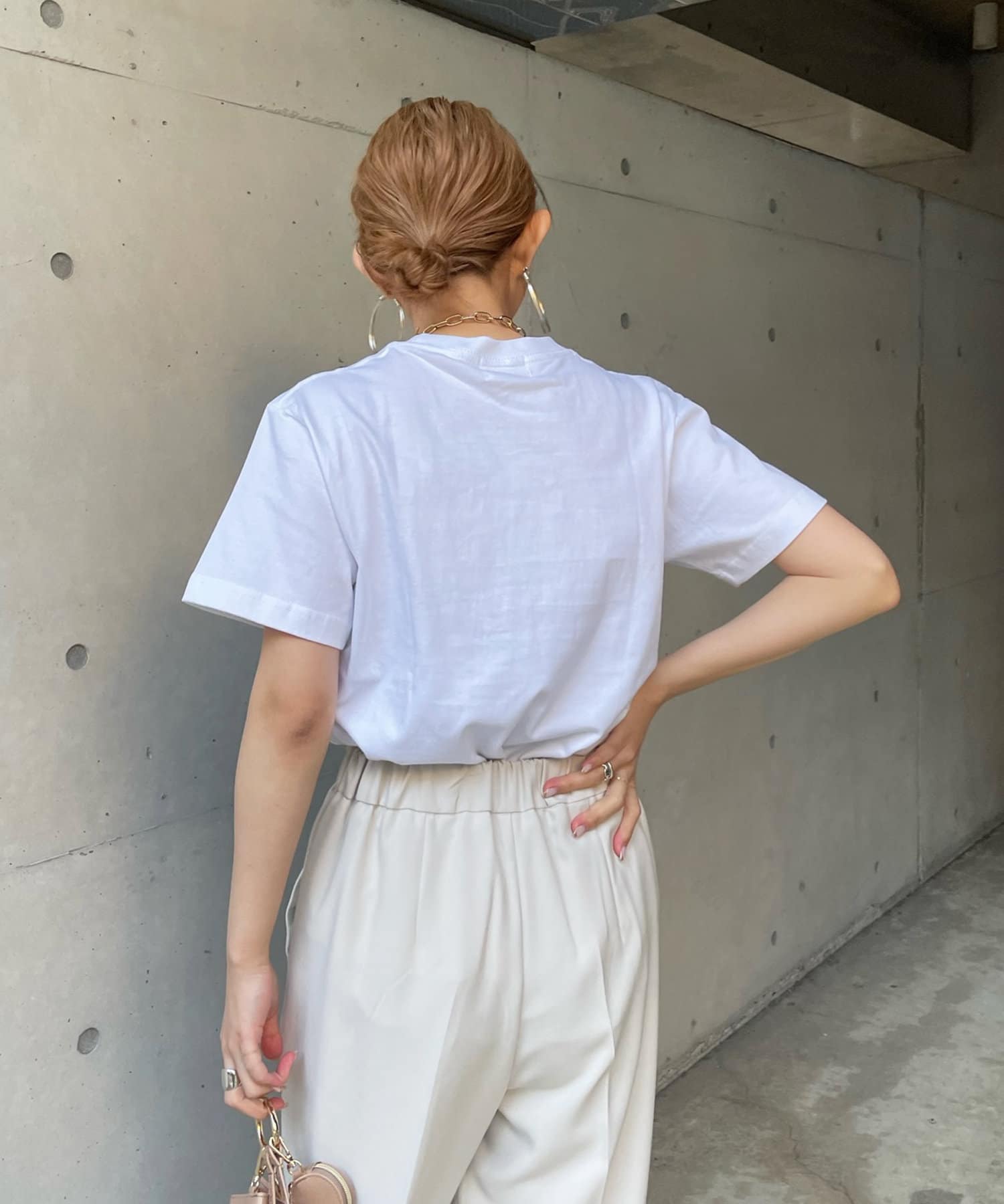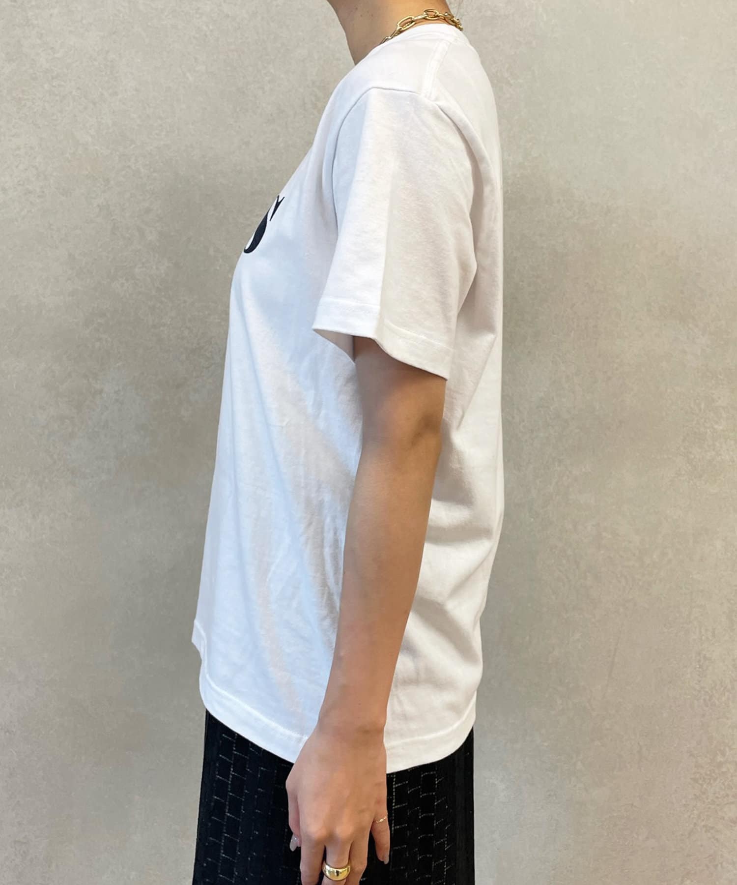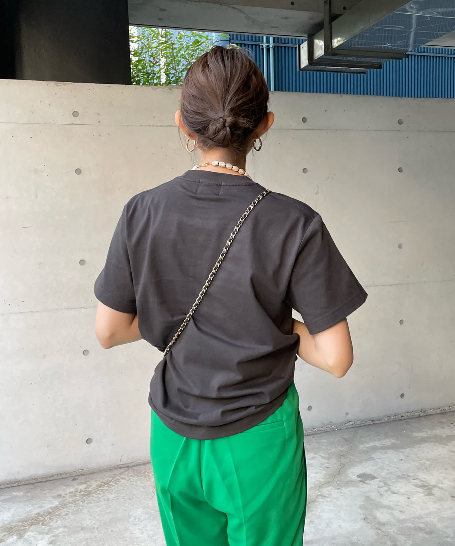 ロゴの何とも言えない可愛さと、コンパクトなサイズ感がカジュアルになり過ぎず、大人なスタイリングにもマッチして着ていただけます。