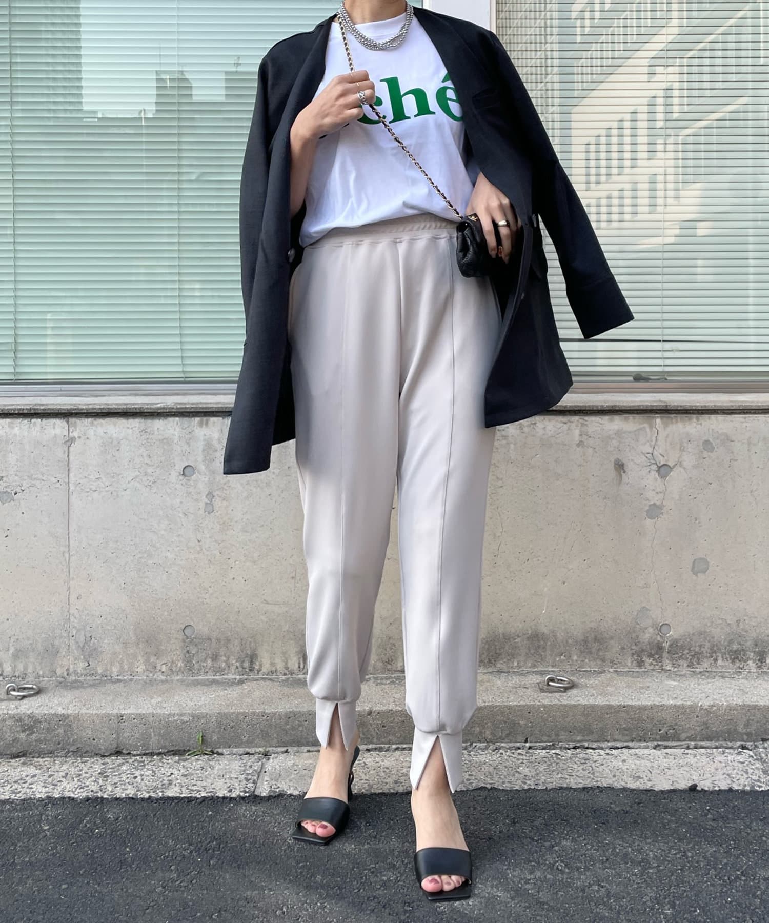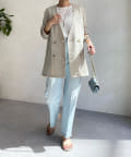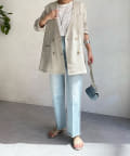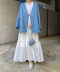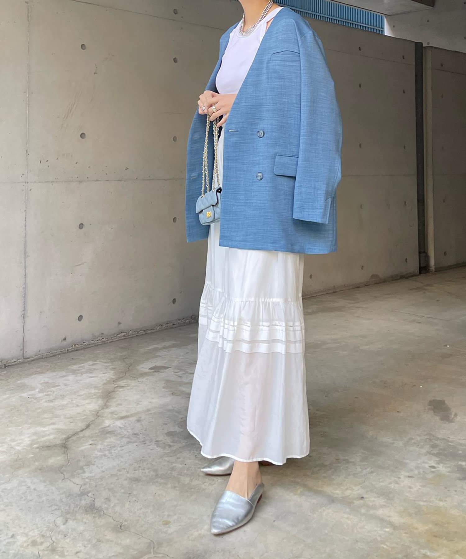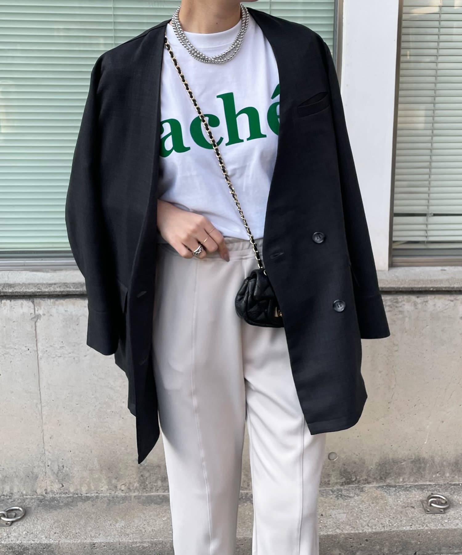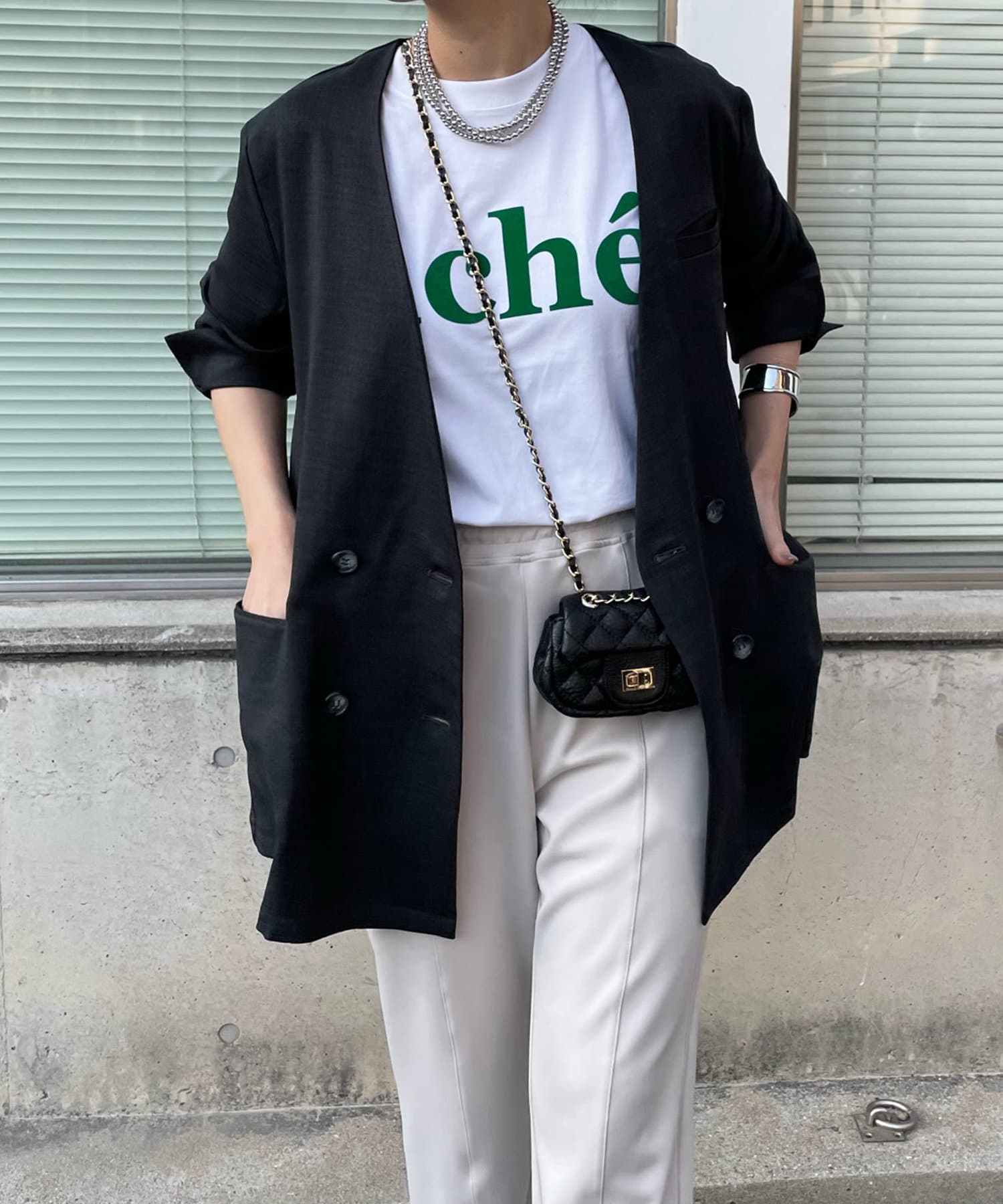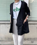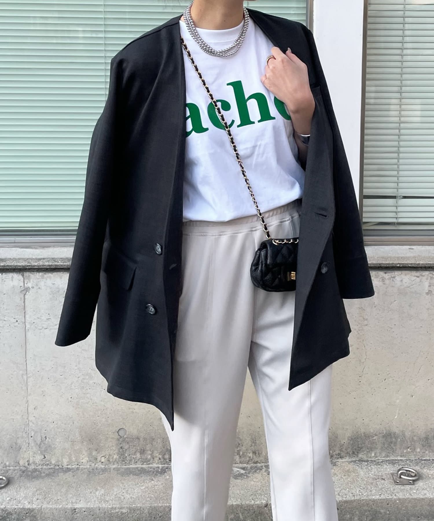 ワンピースなど女性らしいアイテムとのスタイリングや、ロゴTを覗かせてカジュアルに...などきちんと感のあるディティールだからこそ幅広いスタイリングにマッチしてくれます。