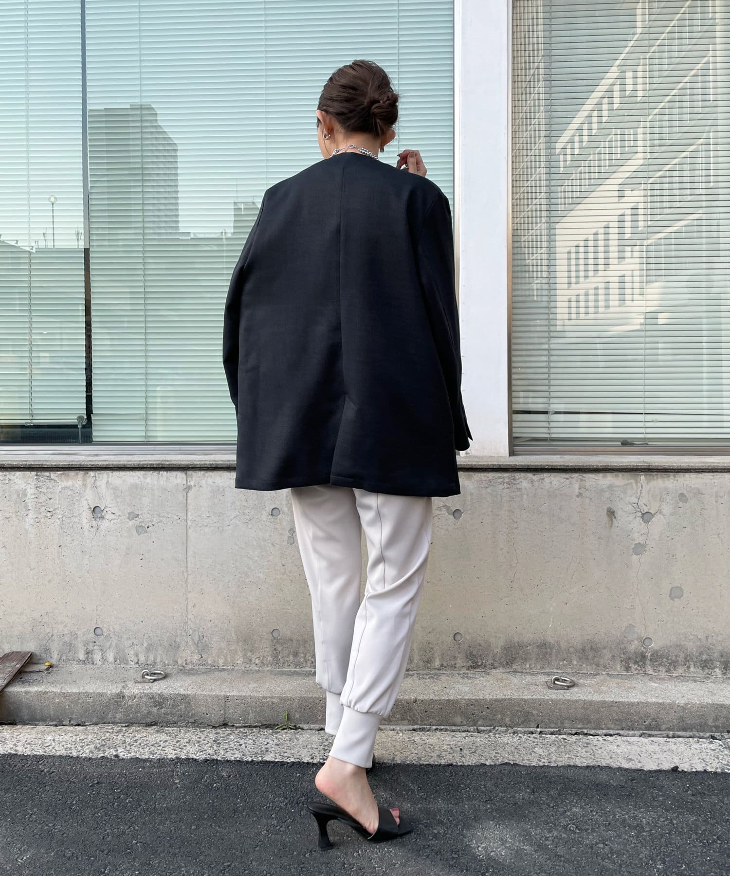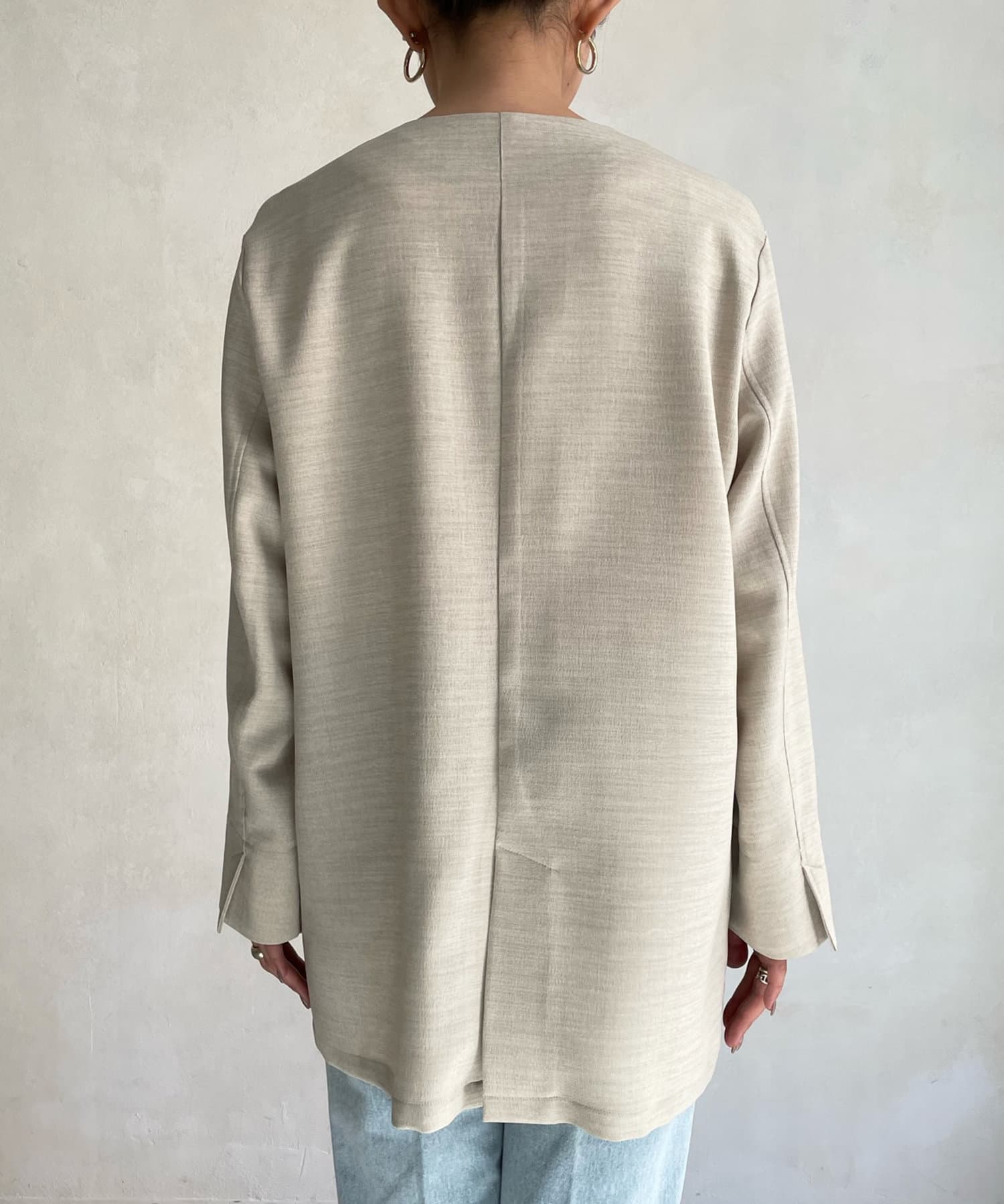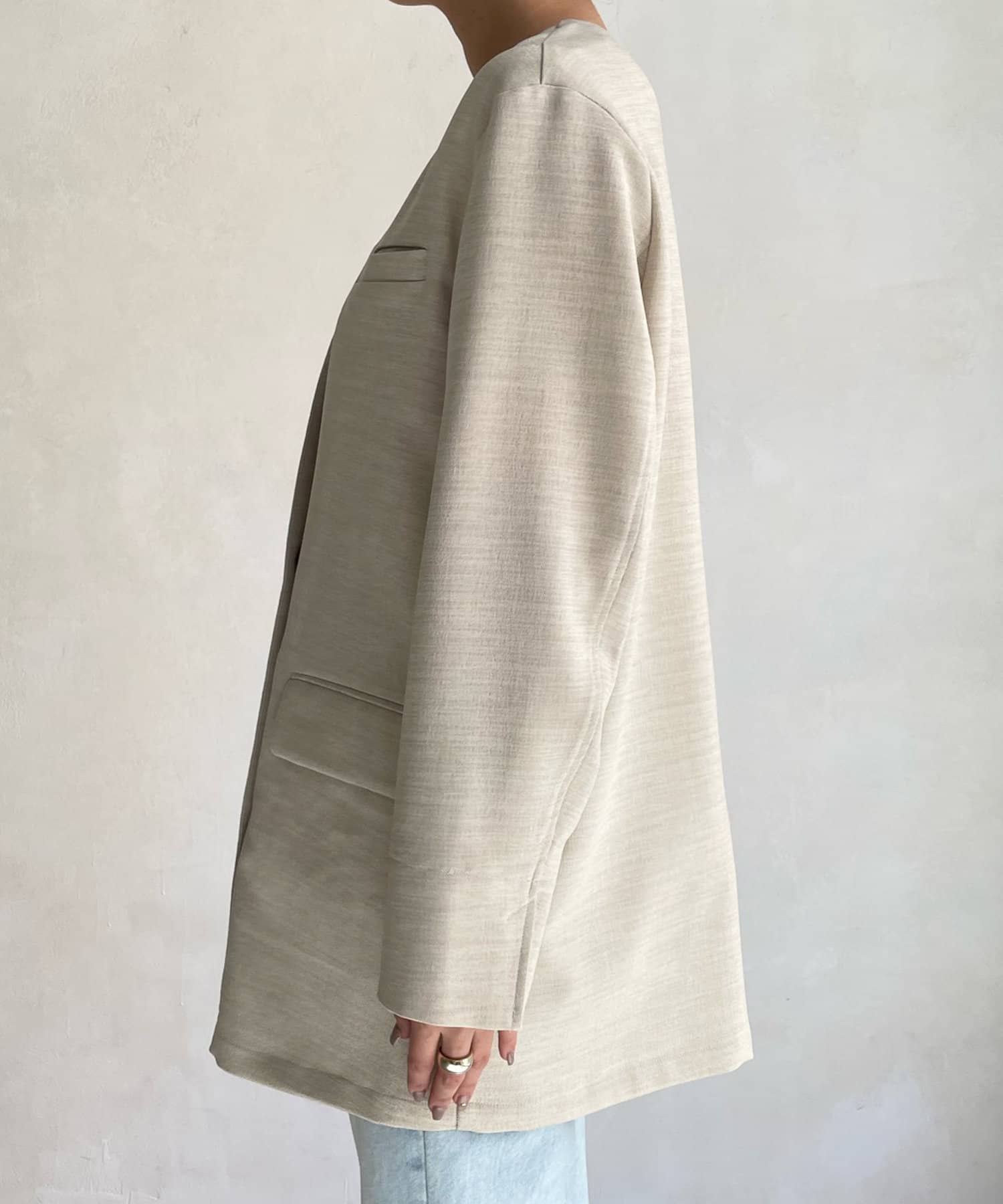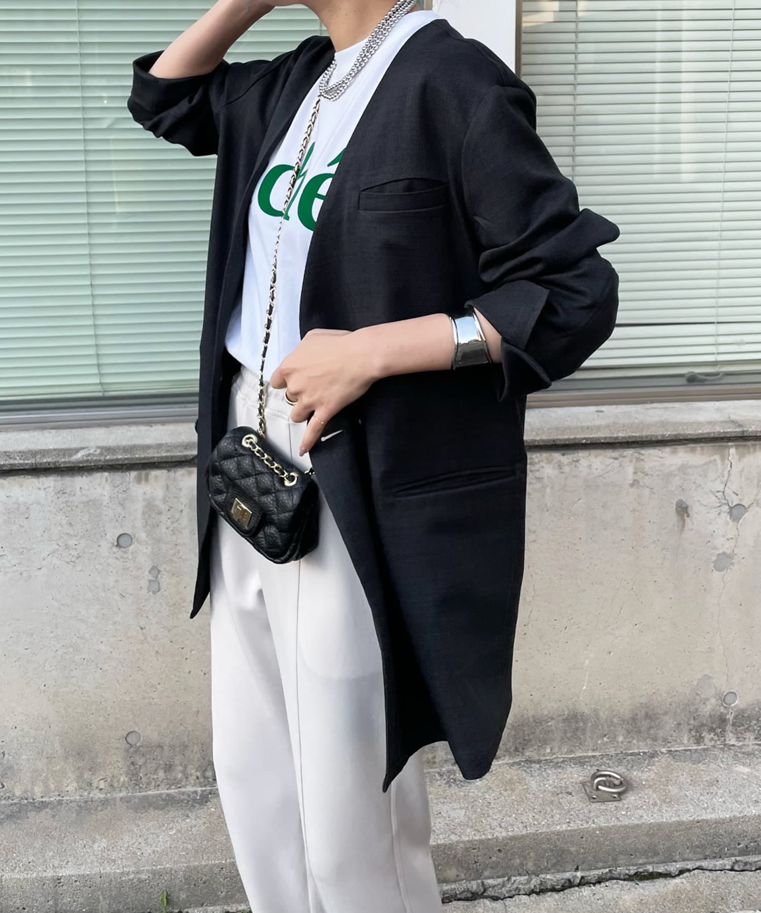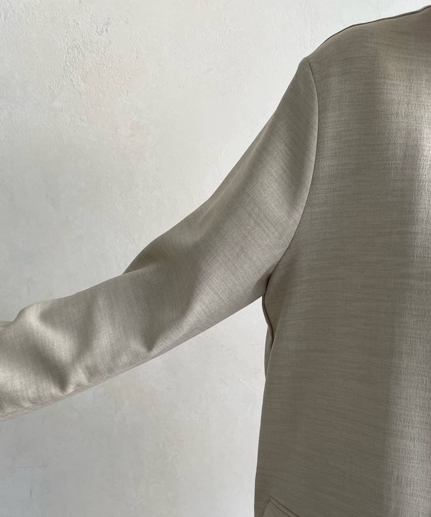 顔周りをすっきりと、そして春らしさをぐっと上げてくれるノーカラージャケット。