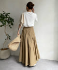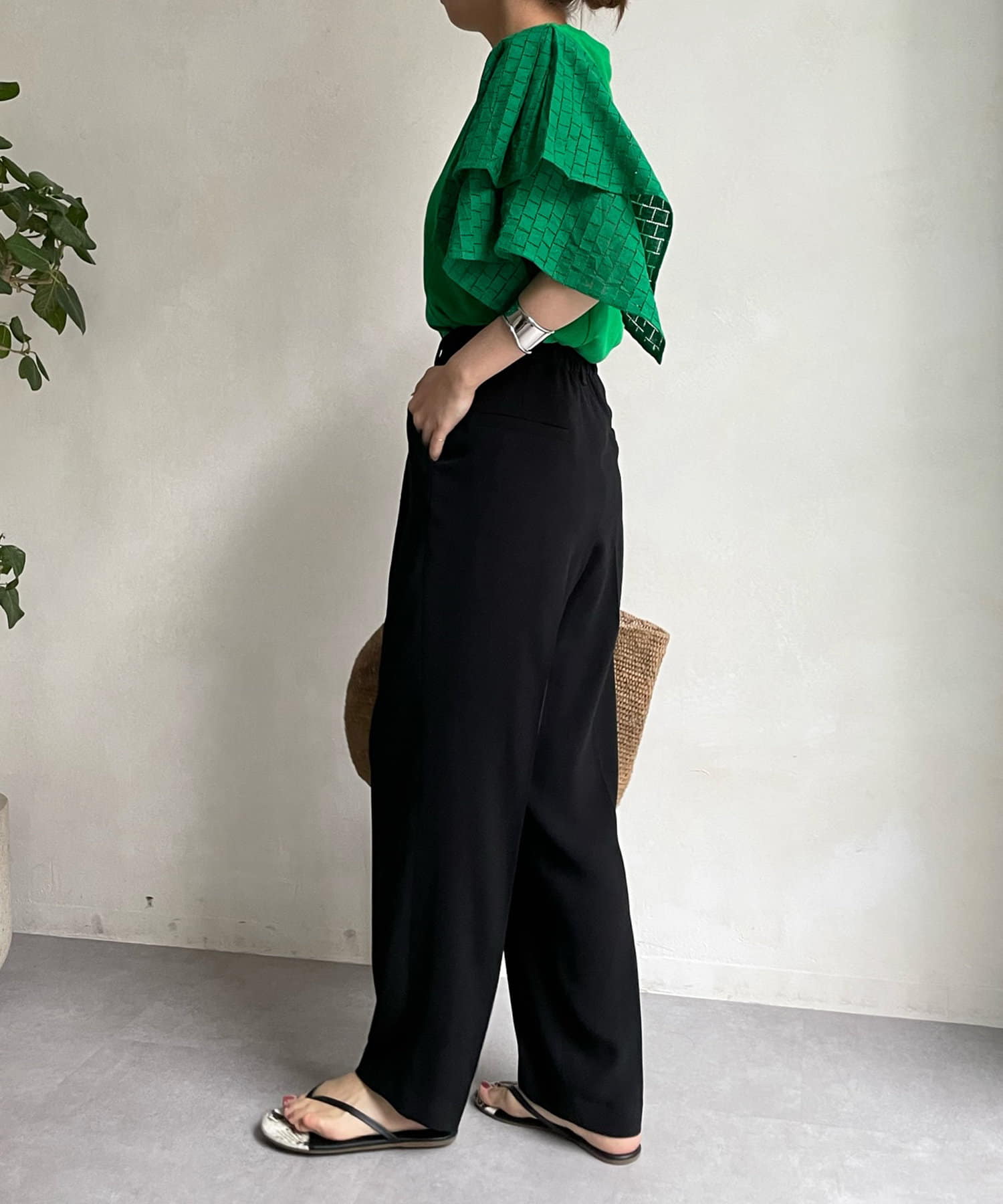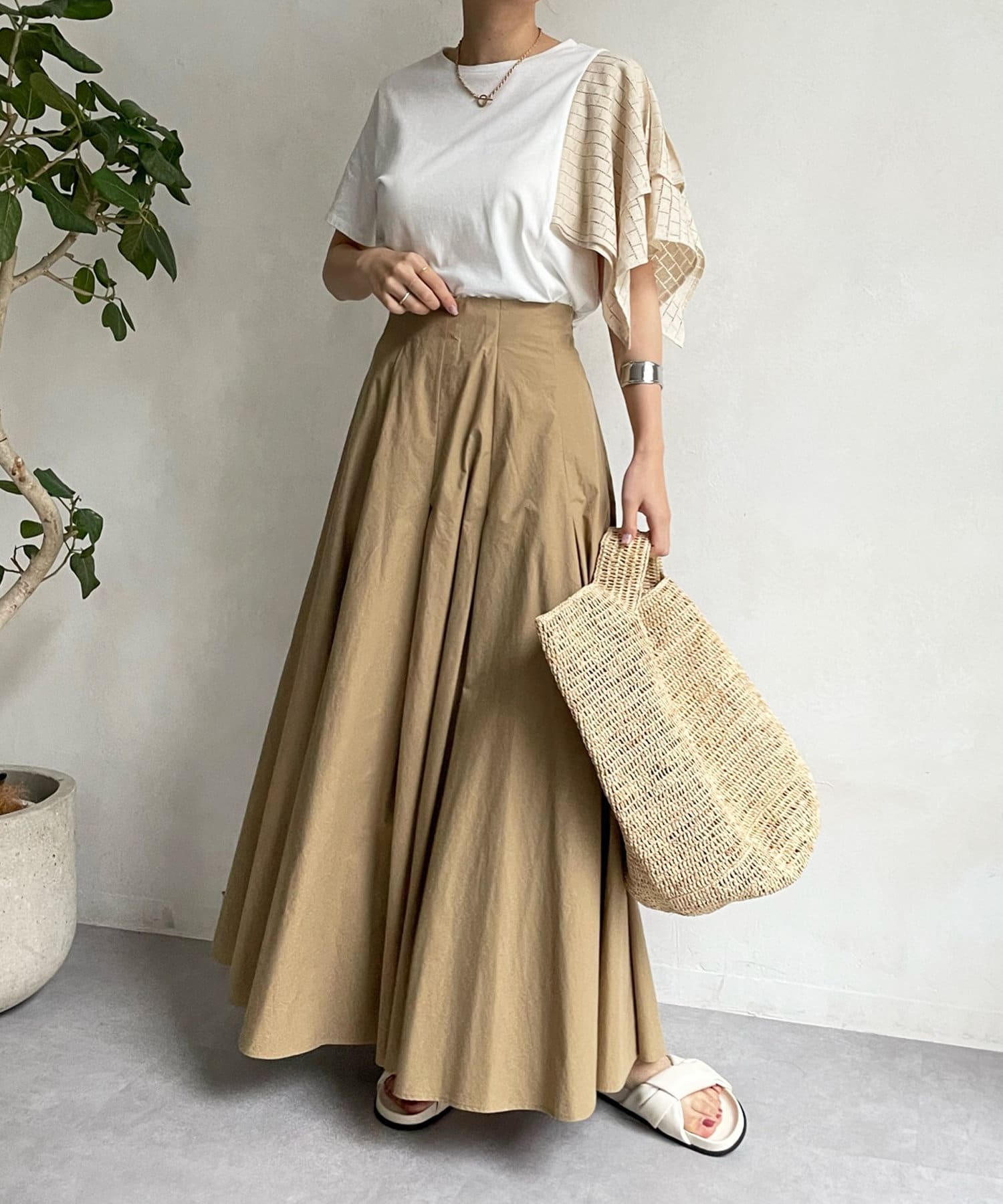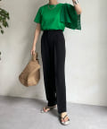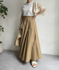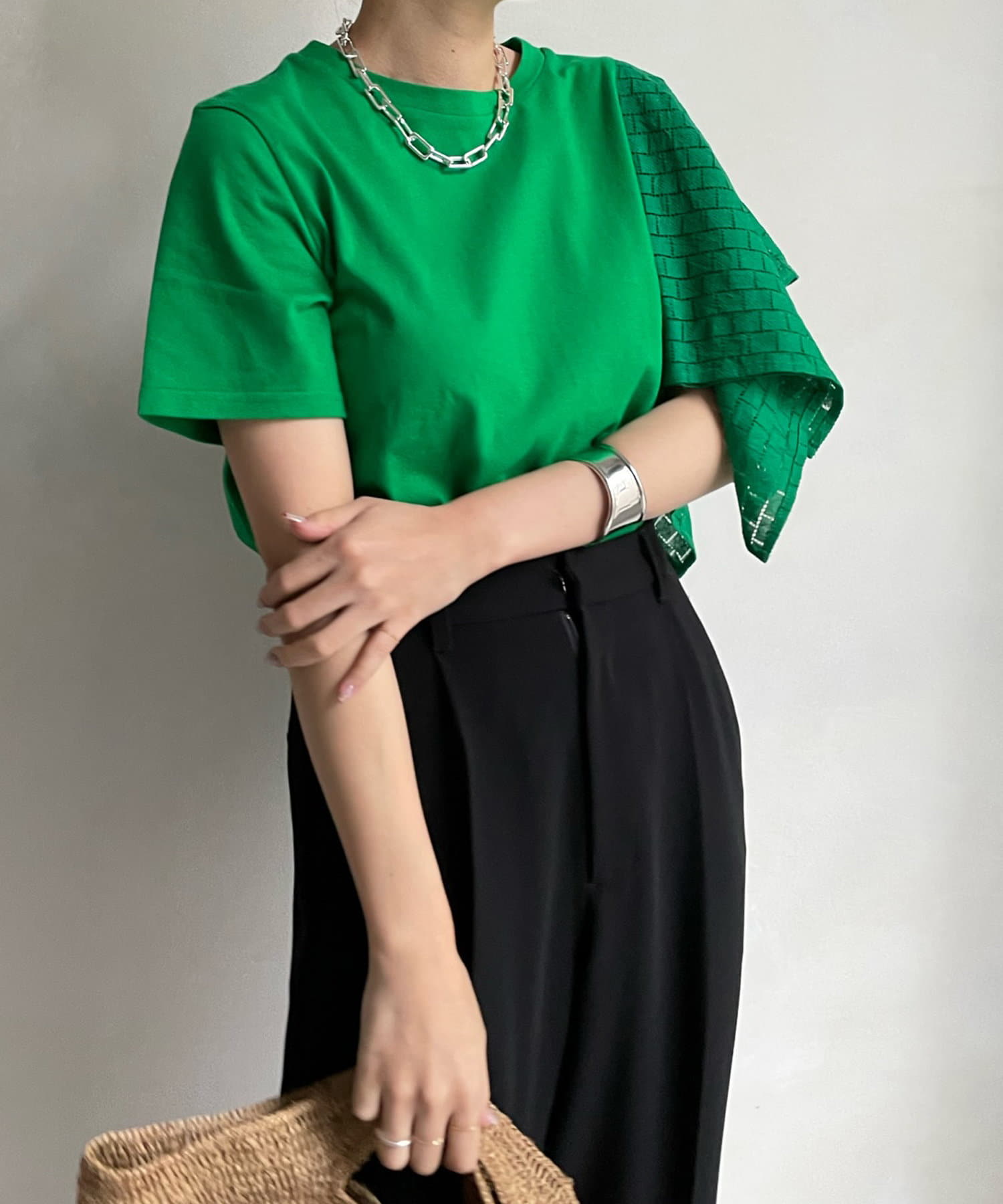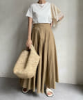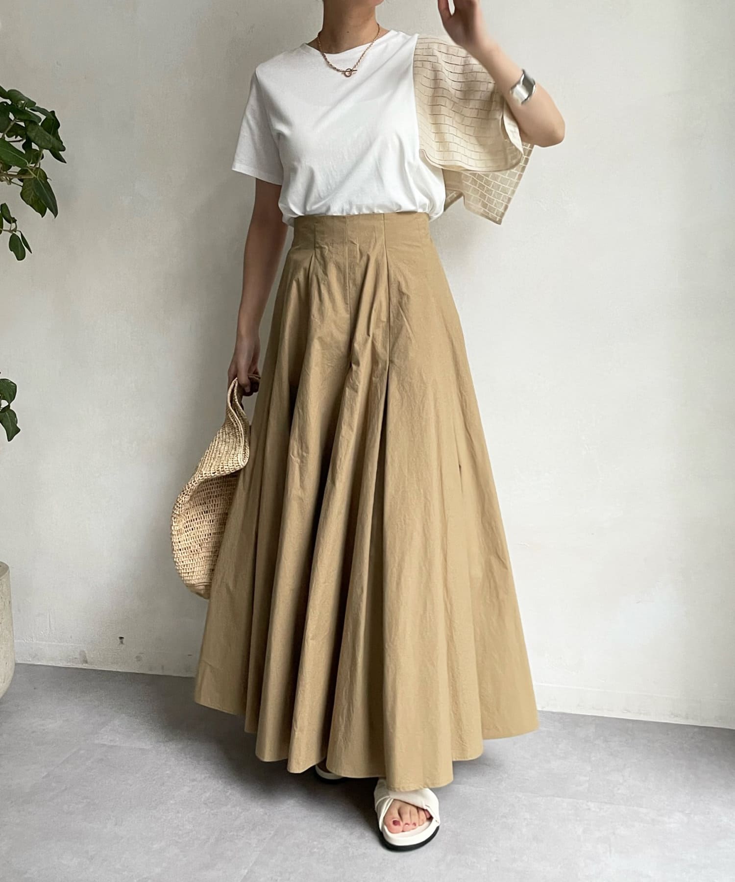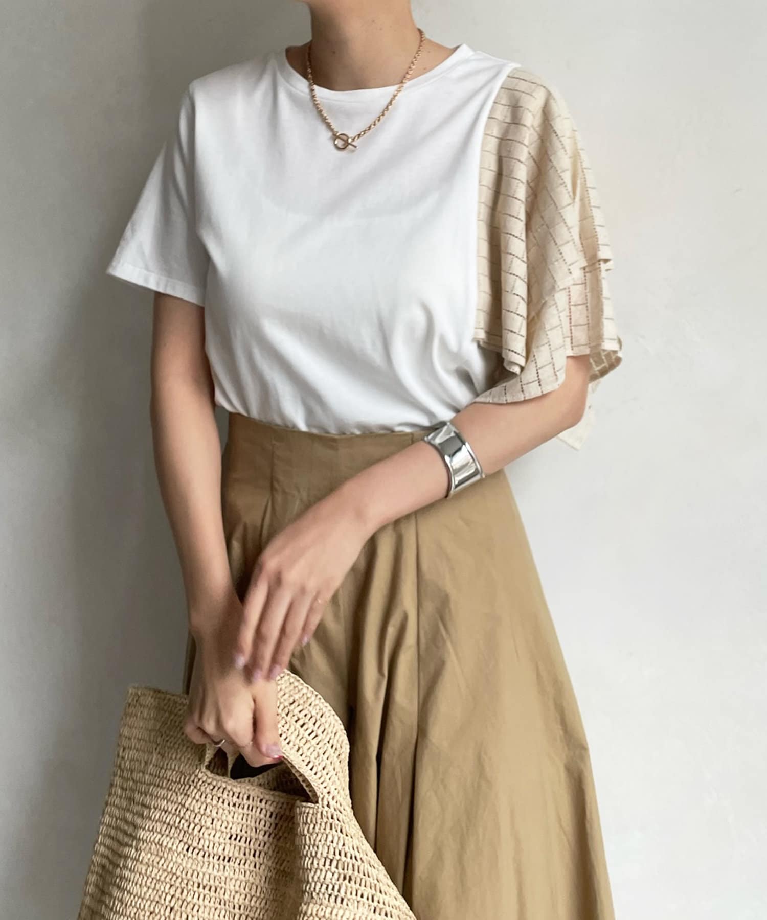 カットソー素材で程よくカジュアルな印象を与えてくれるので、スタイリングがバランス良く決まります。