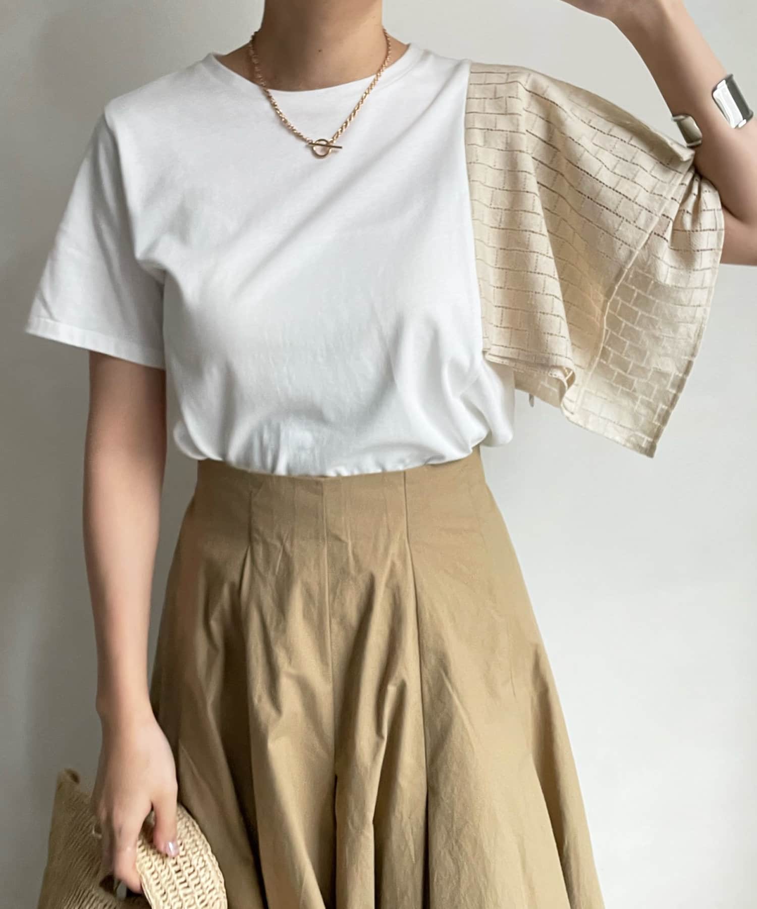 アシメトリーでとりあえず可愛い袖が気に入りました。黒を選んだので、Tシャツですがきちんと感がでて素敵です。