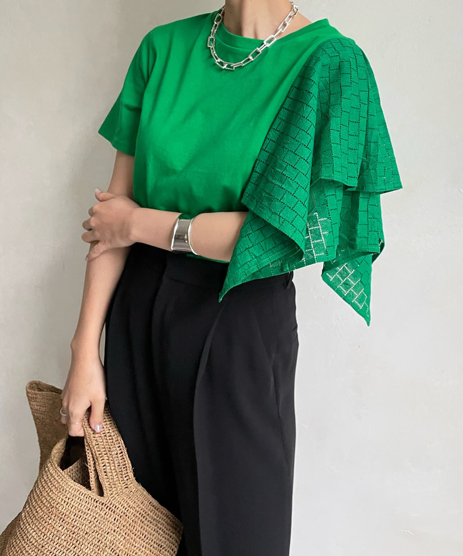 TOP > DOUDOU > レディース > トップス > Tシャツ/カットソー > 【WEB限定】アシメレースプルオーバー