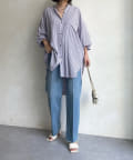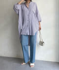 TOP > DOUDOU > レディース > トップス > シャツ/ブラウス(ボタン) > 【新色追加】袖リブストライプシャツ