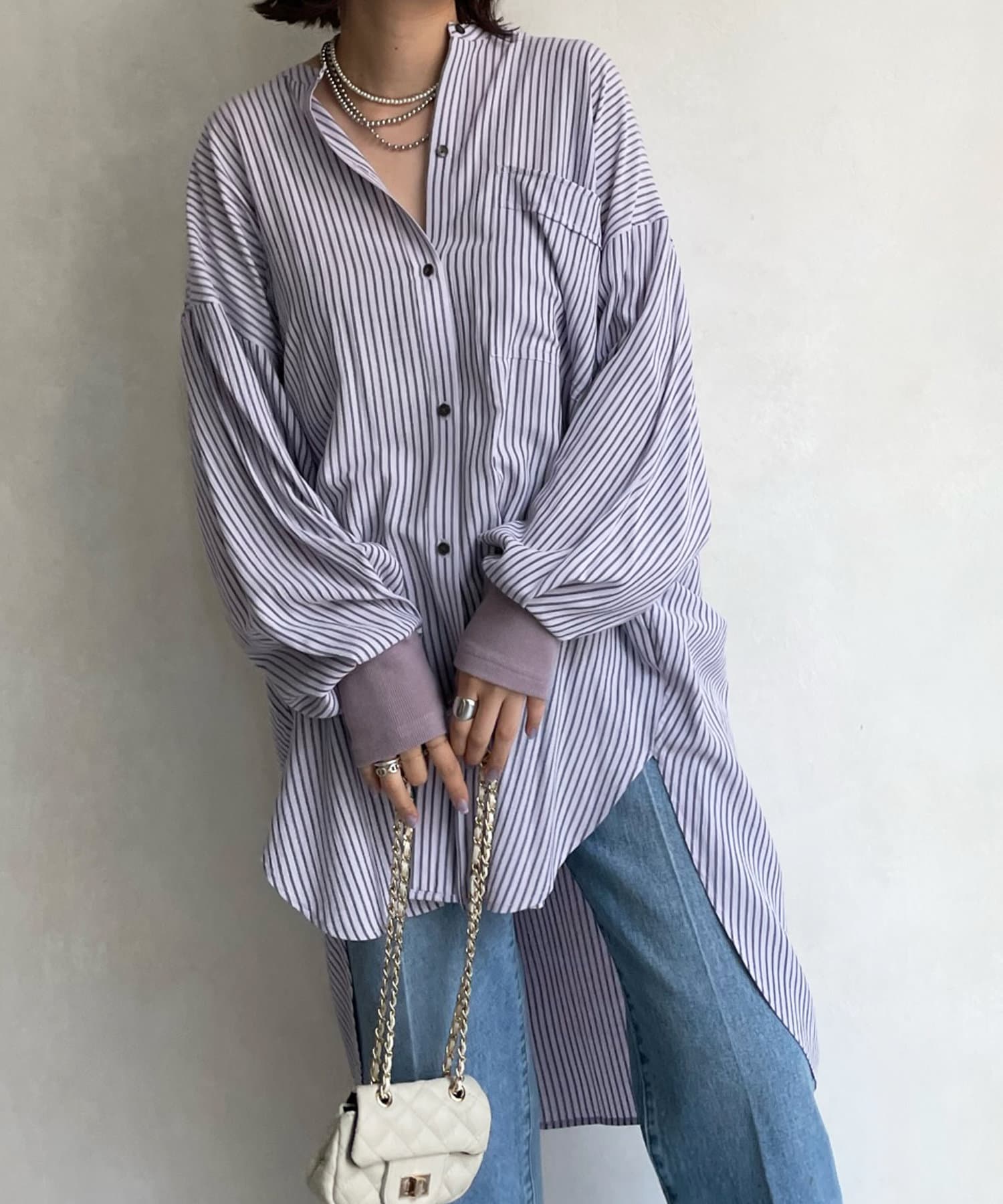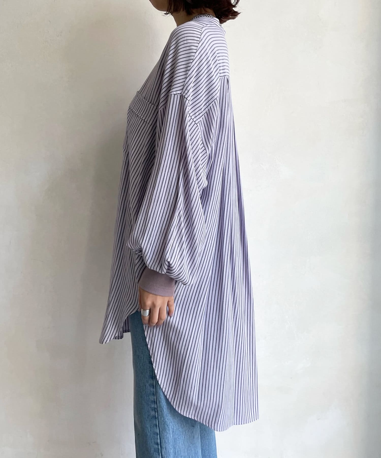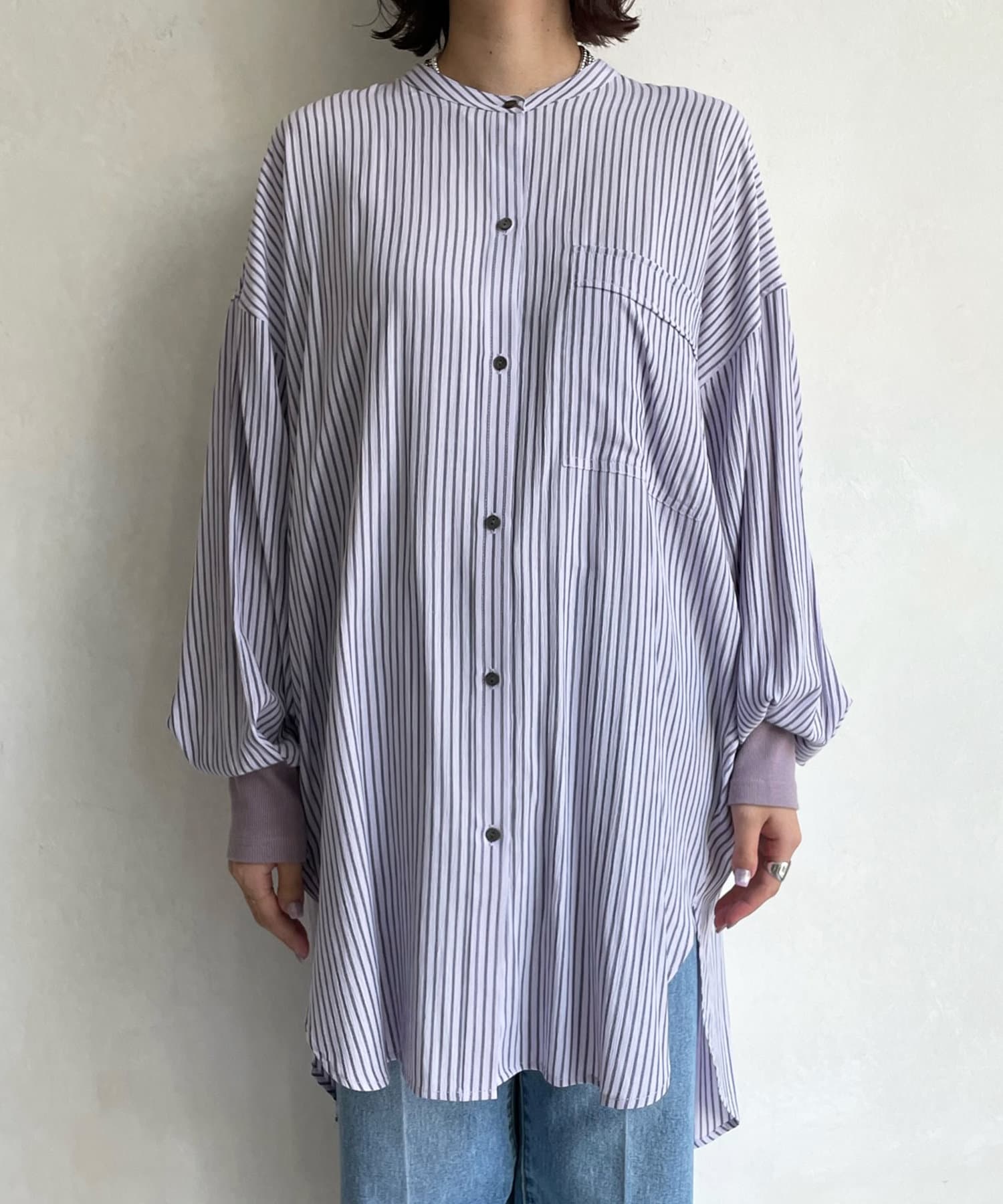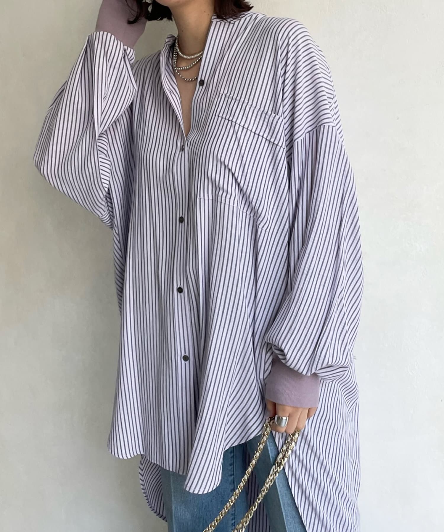 【新色追加】袖リブストライプシャツ