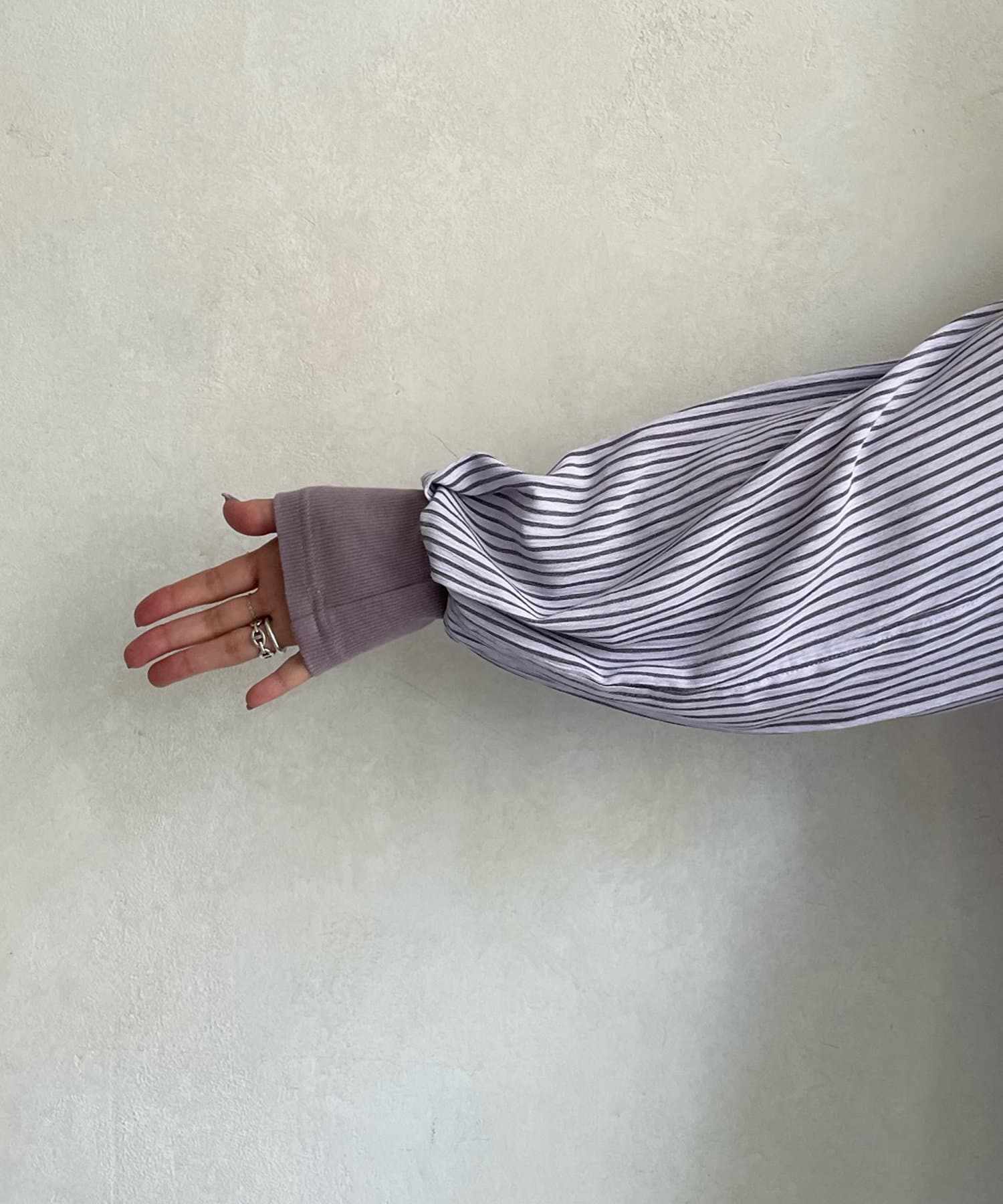 DOUDOU(ドゥドゥ) 【新色追加】袖リブストライプシャツ