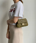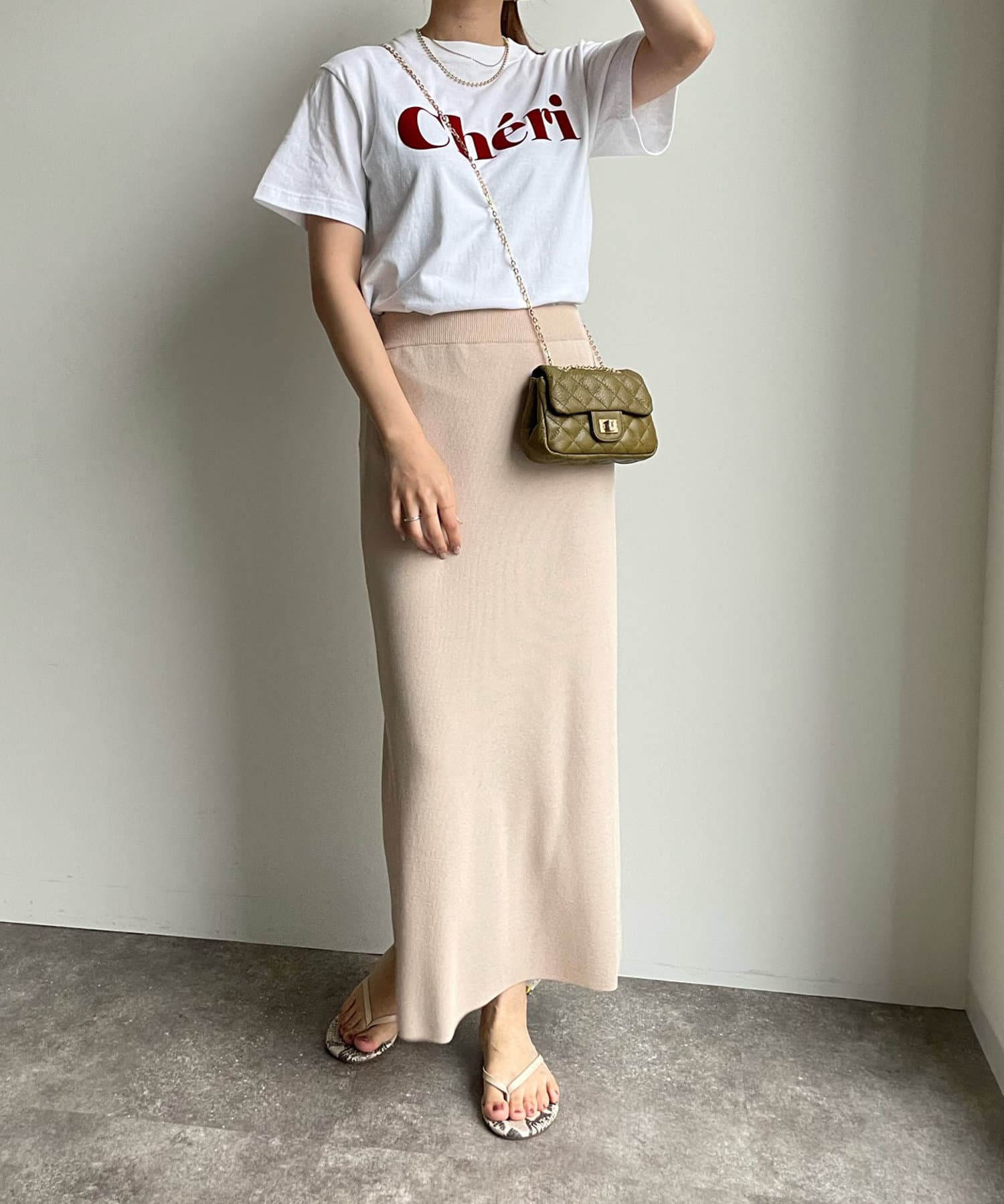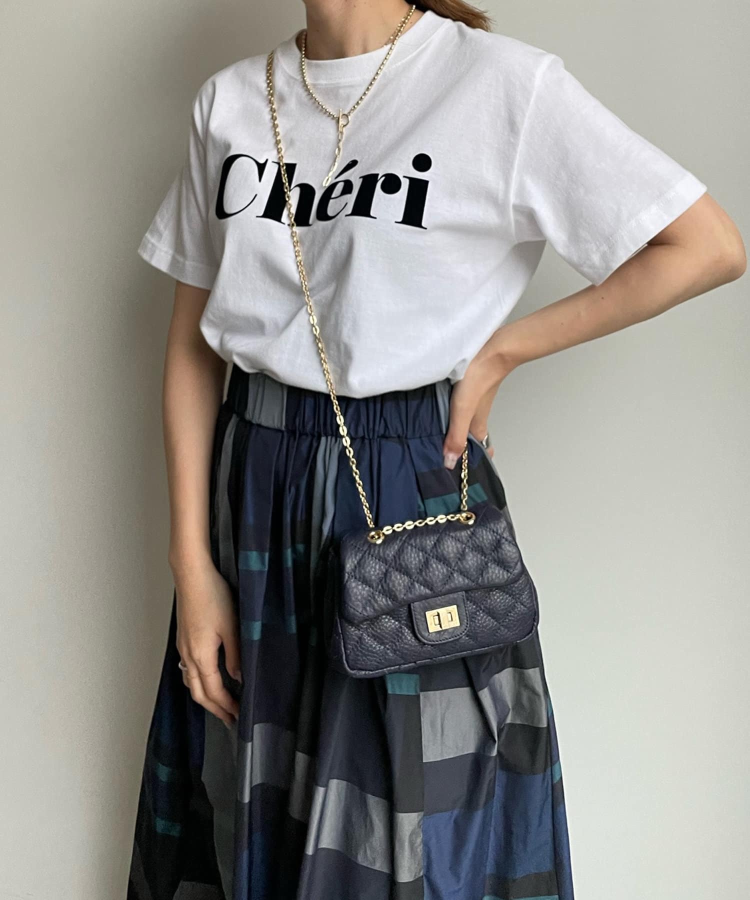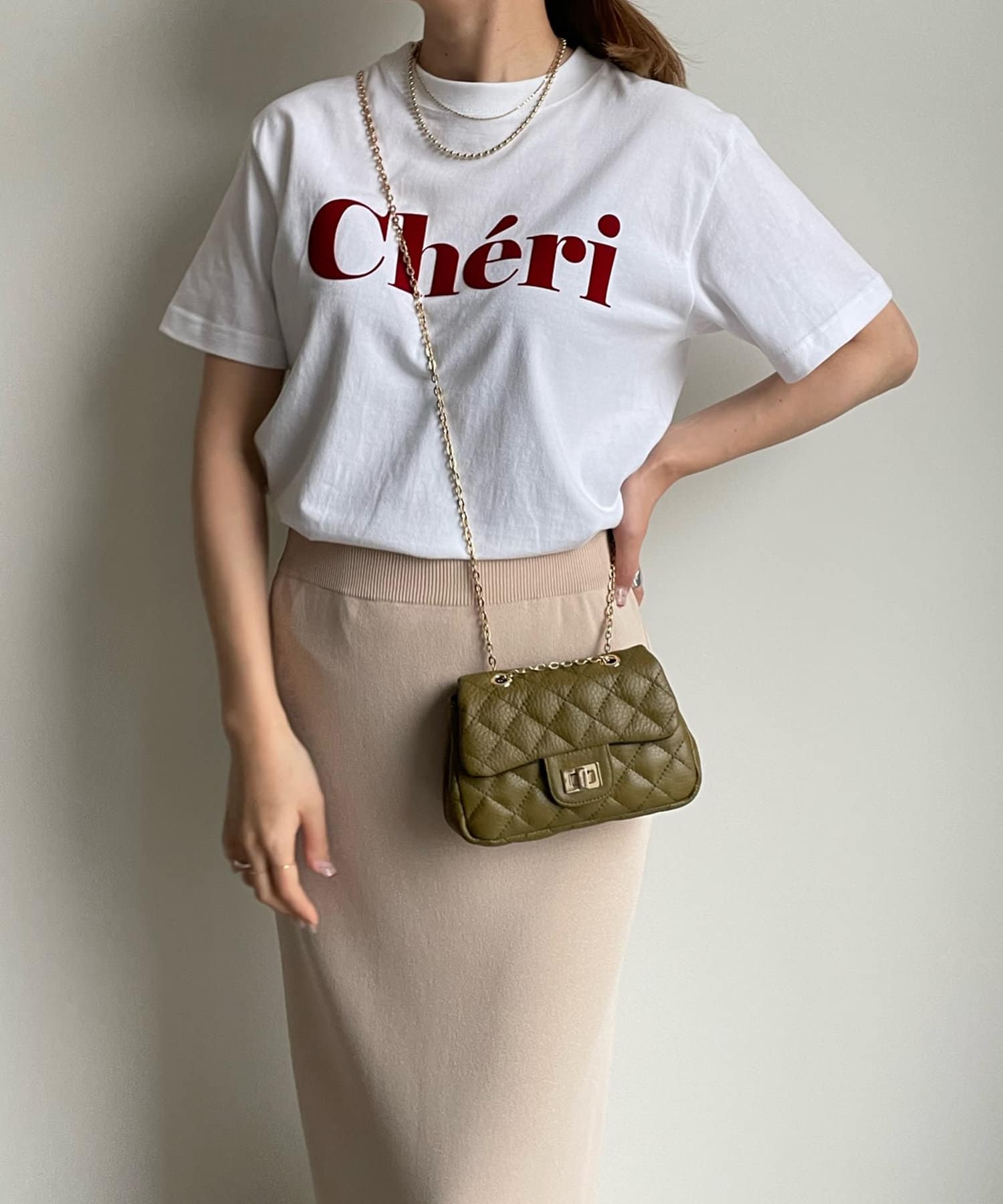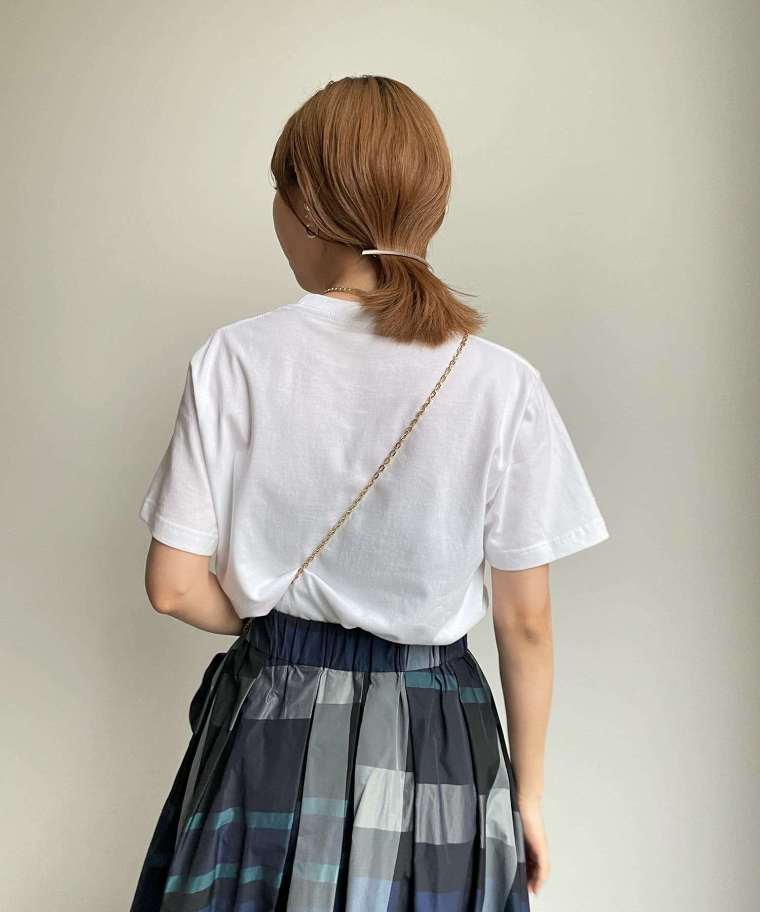 ロゴの何とも言えない可愛さと、コンパクトなサイズ感がカジュアルになり過ぎず、大人なスタイリングにもマッチして着ていただけます。