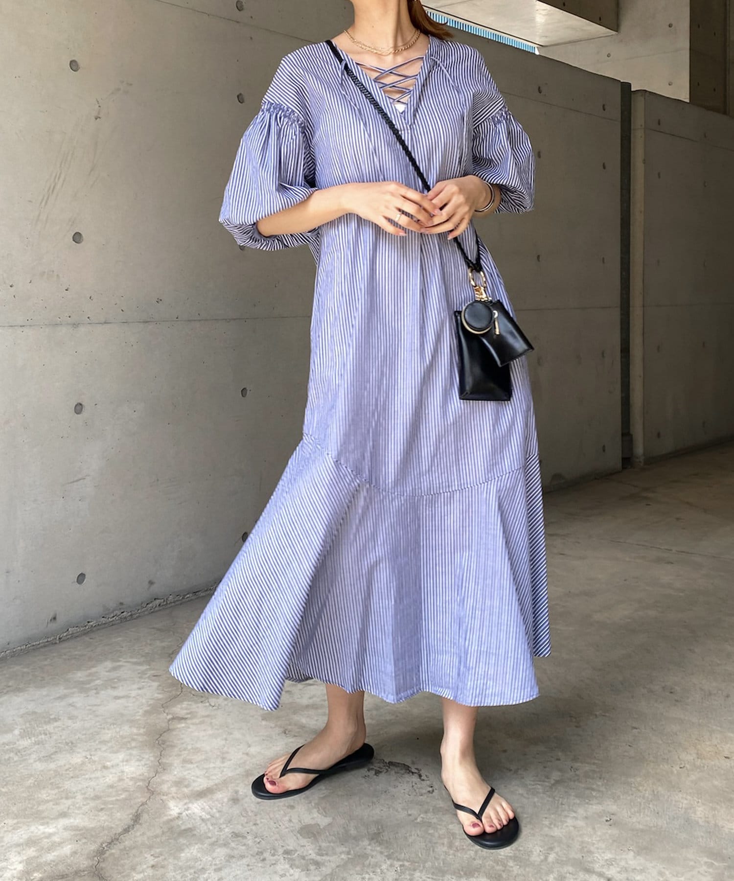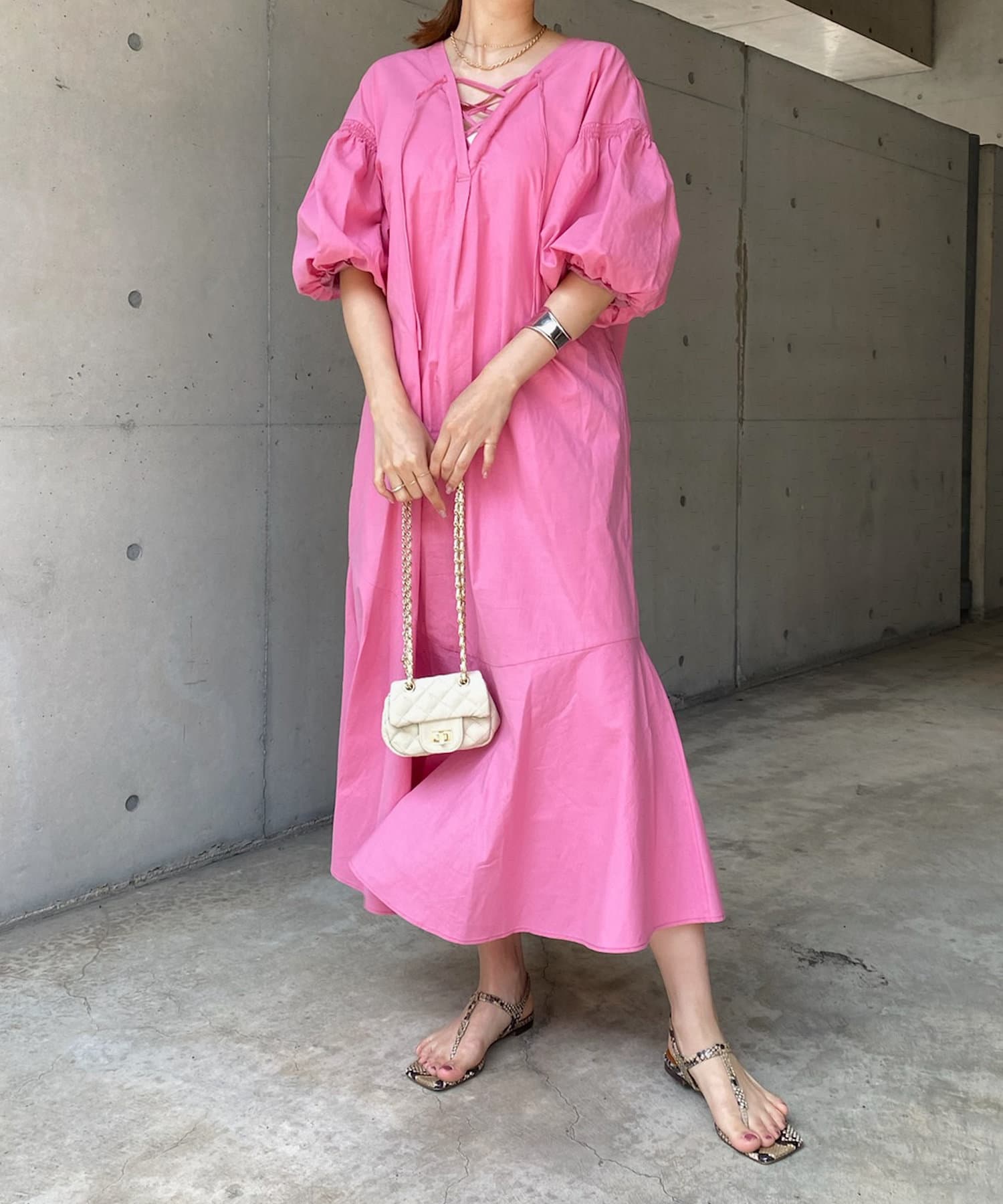 どこを見ても素敵なワンピースはさらっと1枚でサマ見えし、夏の活躍に期待大。