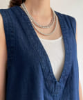 重量感のあるデニムも、トレンド感漂う深Vネックですっきりと爽やかな印象に。