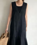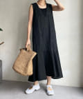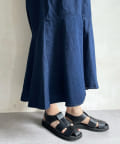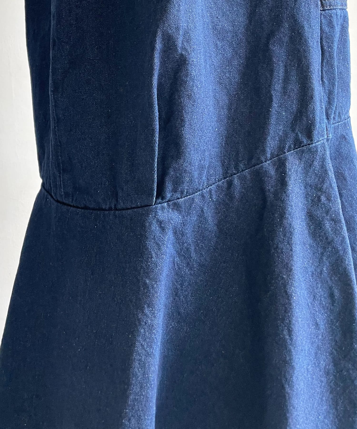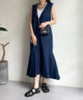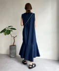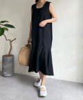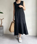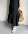裾はフレアシルエットに切り替え、デザイン性をプラス。また、サイドには甘くなりすぎないよう、大きなポケットを加えました。
