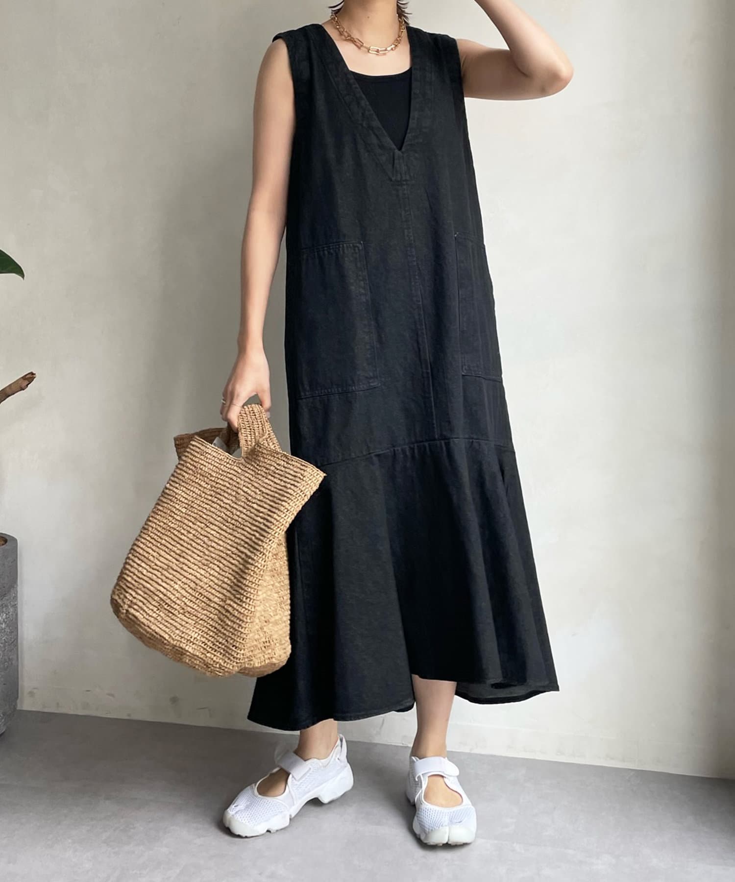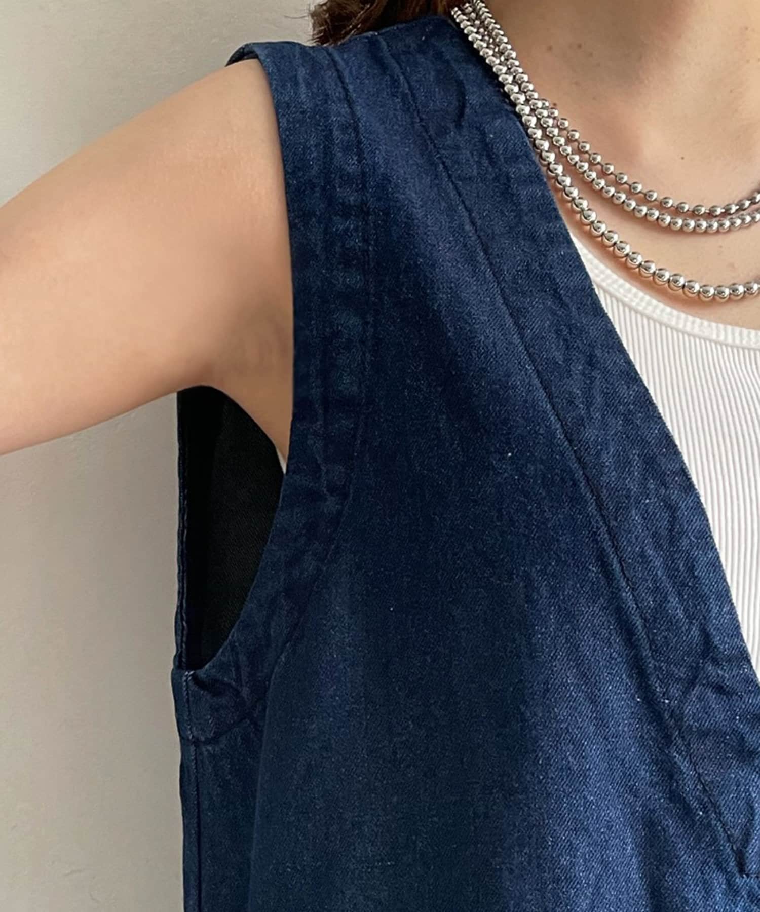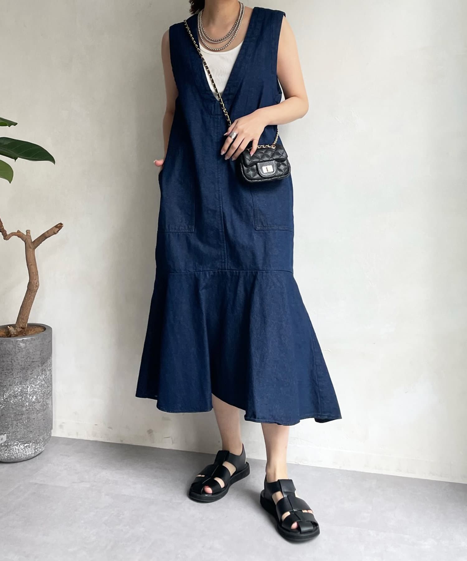 デニムはどんなカラーアイテムとも相性抜群なので、タンクやTシャツなどコンパクトなアイテムと合わせてスタイリングを楽しんで頂けますよ!
