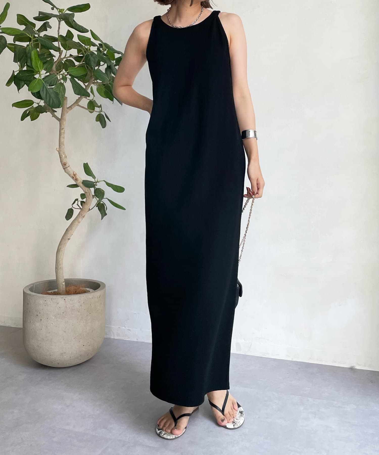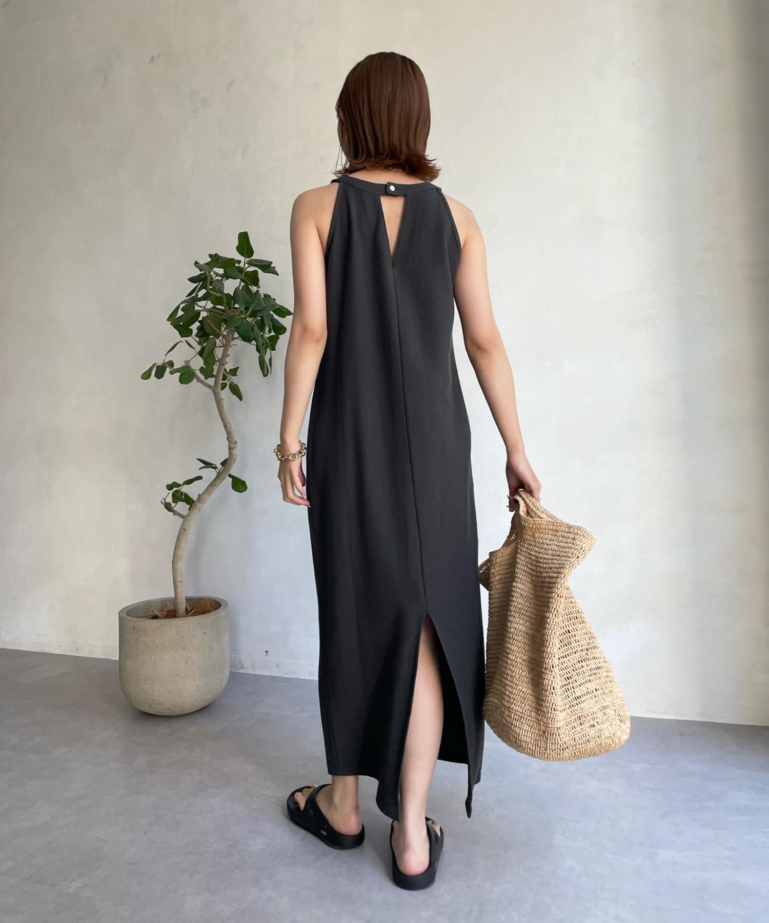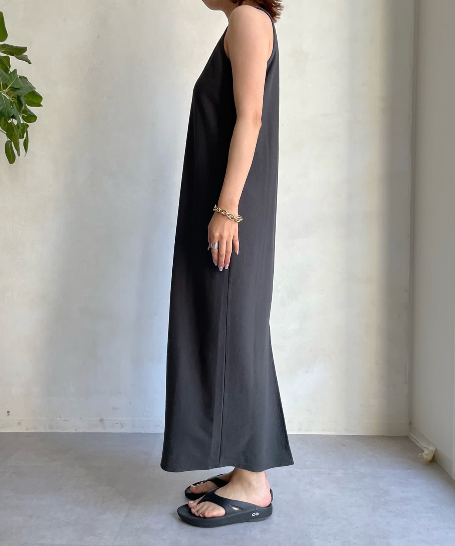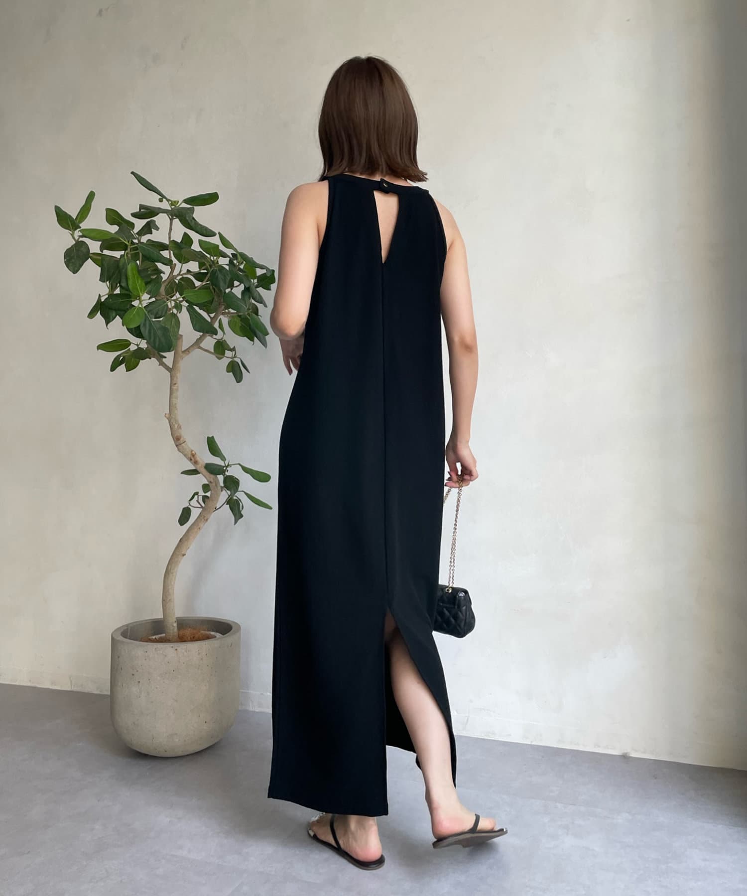 Iラインでストンと細見えするシルエットは、ぴたっとせずに程よく肌から離れるリラクシーな着心地。バックにはスリットを施し、足さばきの良い仕様に。