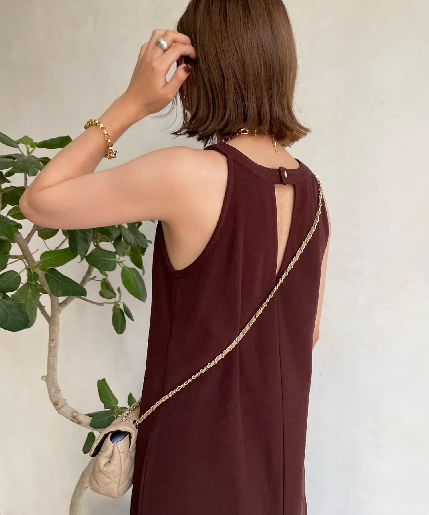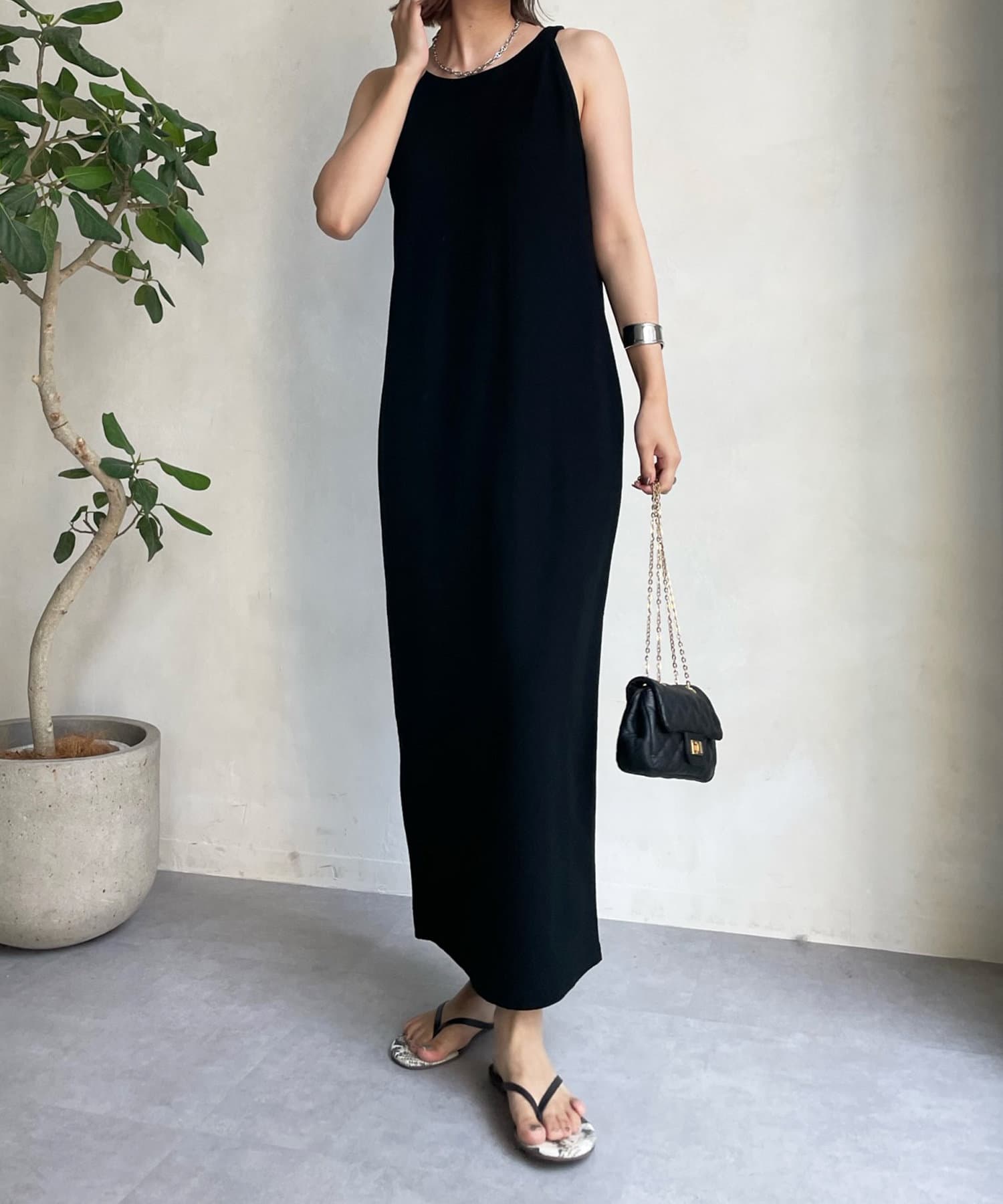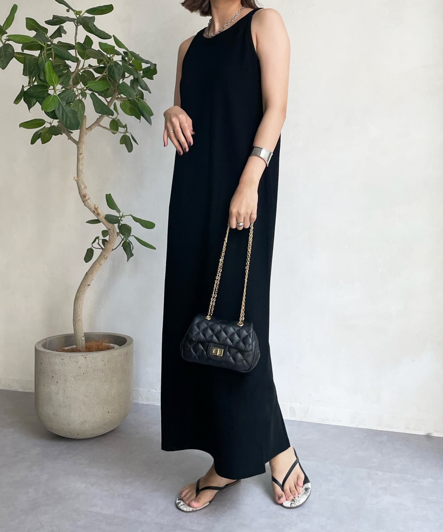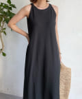 Iラインでストンと細見えするシルエットは、ぴたっとせずに程よく肌から離れるリラクシーな着心地。バックにはスリットを施し、足さばきの良い仕様に。