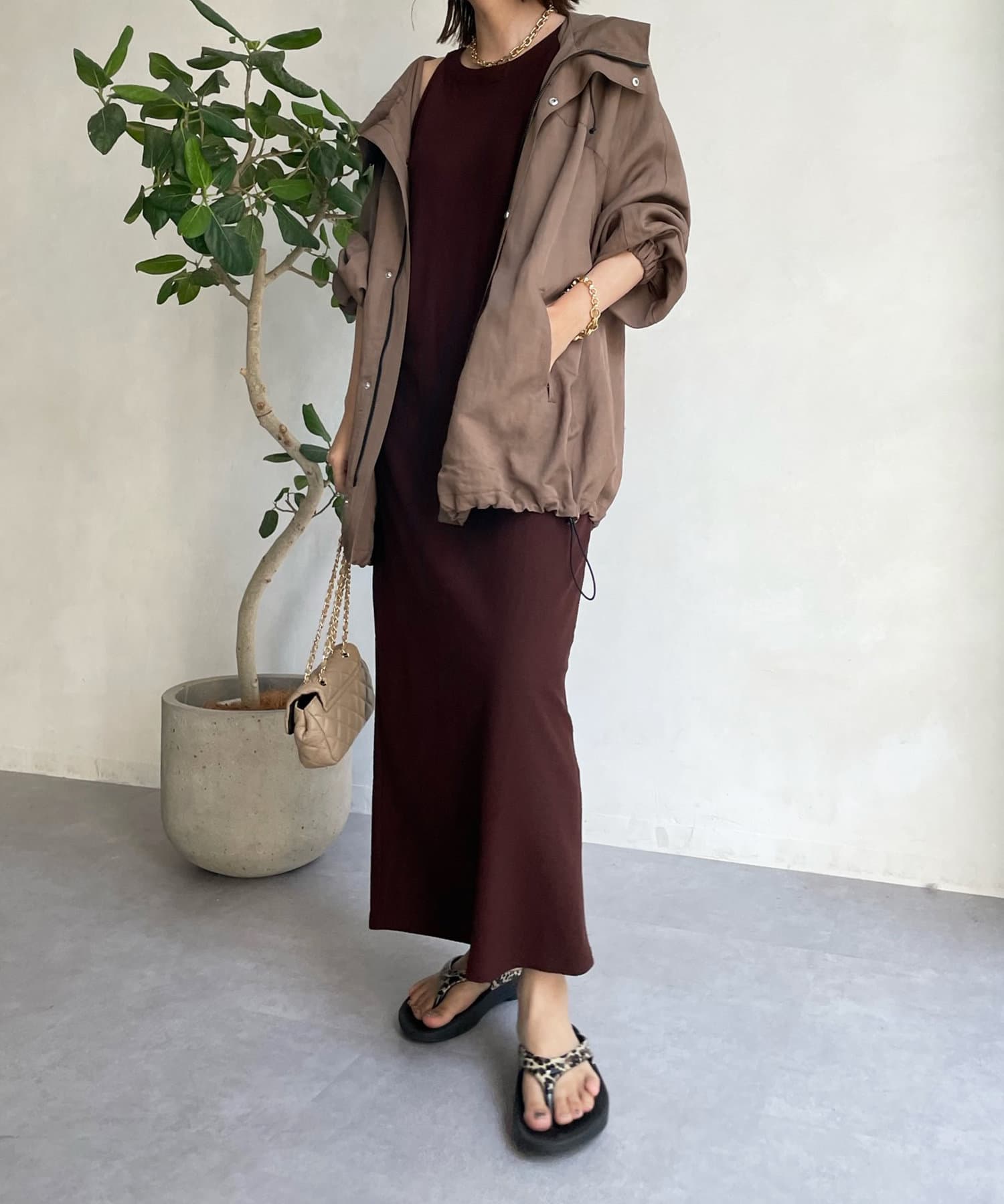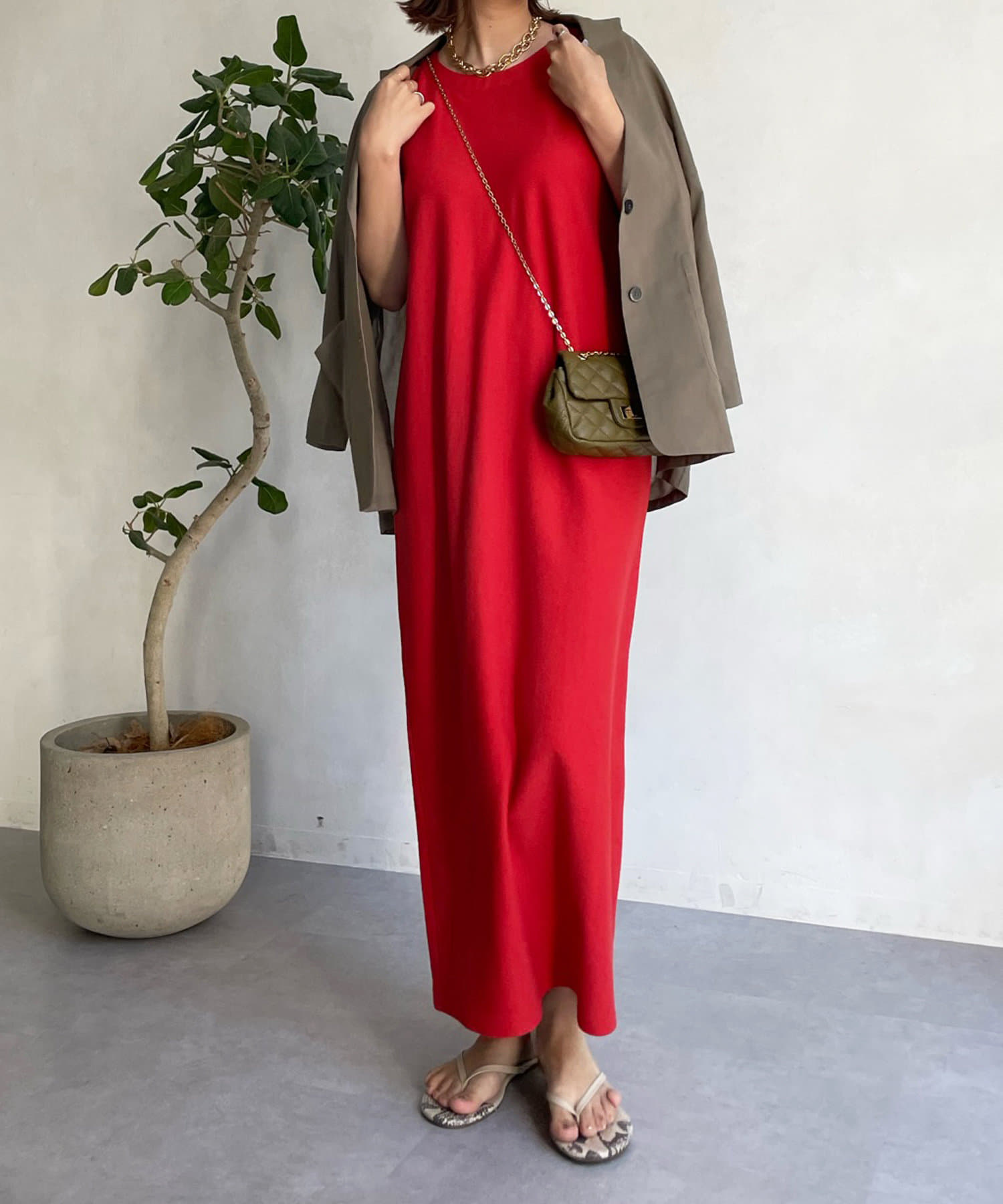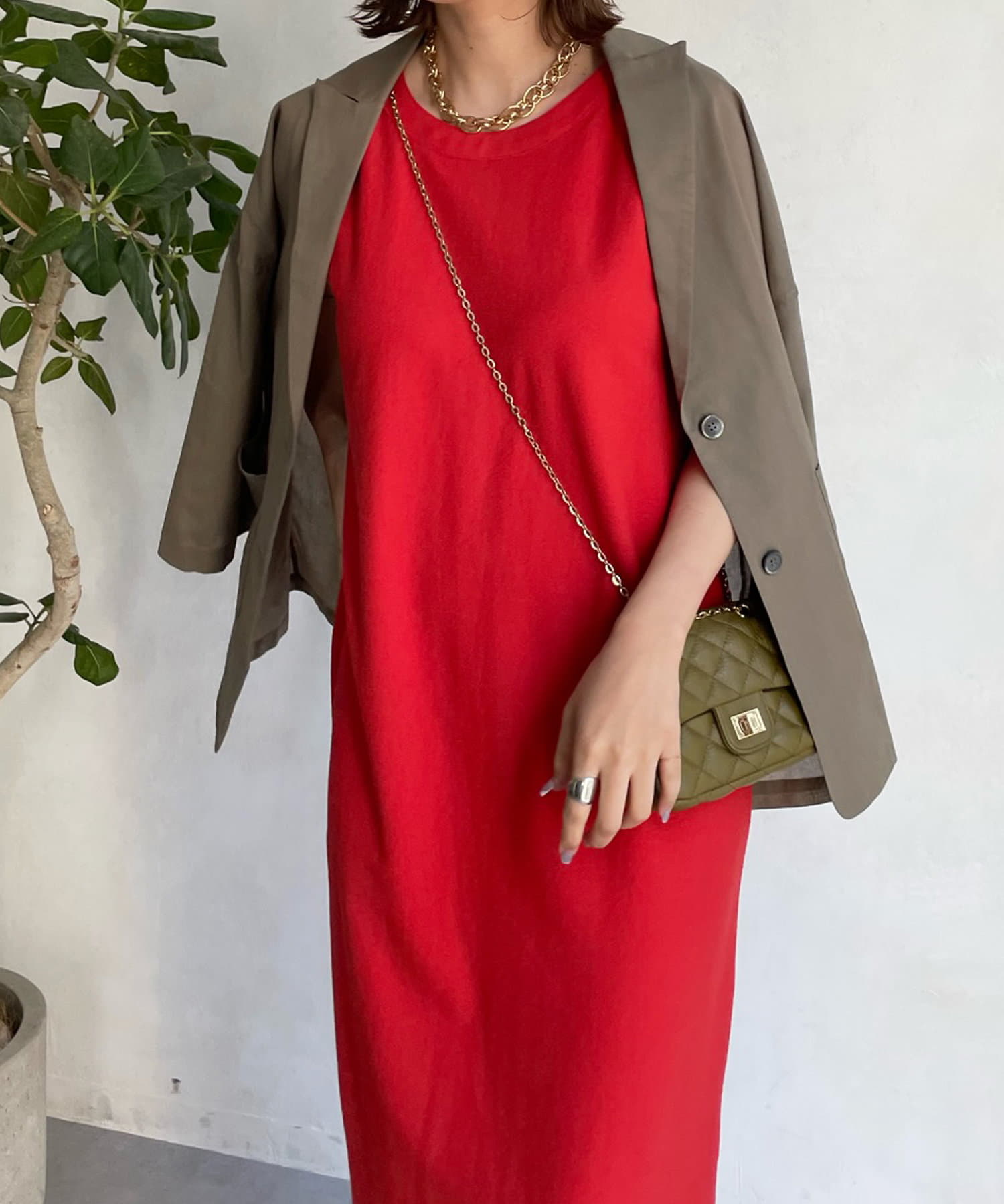 さらりと1枚ではもちろん、羽織りアイテムと合わせてスタイリングするのも素敵ですよ◎アクセサリーや足元で変化を付けて様々な着こなしを楽しんで頂けます。
