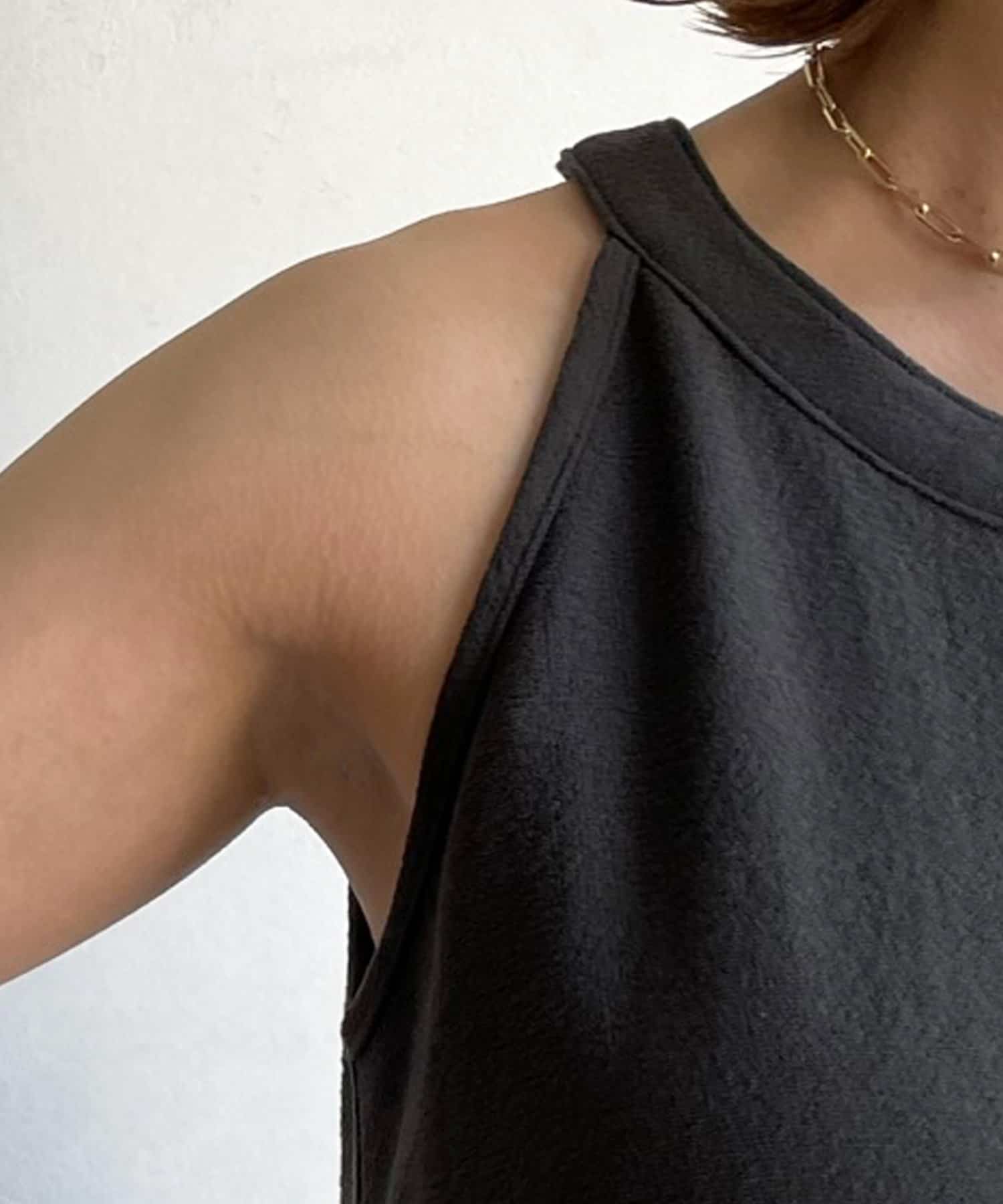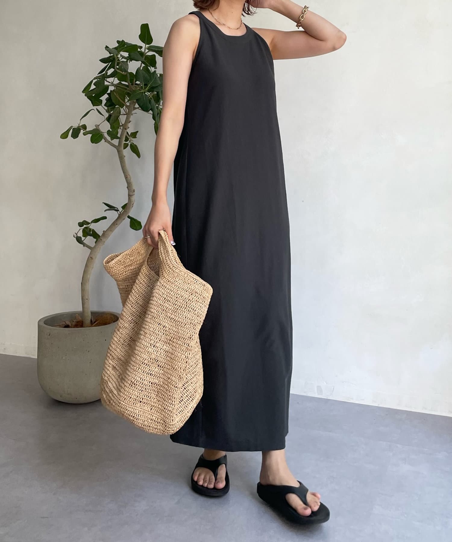 真夏に1枚で着てもオシャレ見えし、ヘルシーに着こなせるアメスリデザインです。