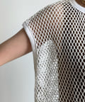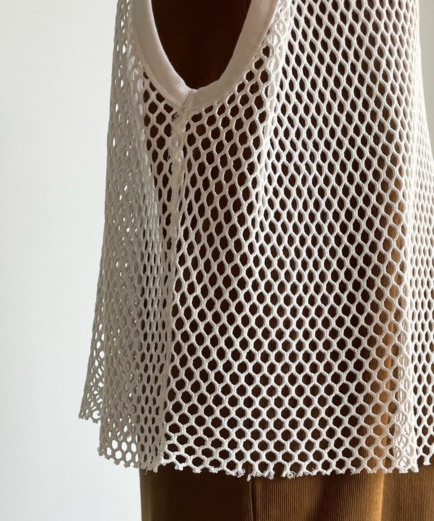 ※ こちらのアイテムのメッシュプルオーバーは粗いメッシュ素材を使用しております為、採寸が難しい仕様となっております。記載のサイズとは多少のズレがありますことをご了承ください。また、保管の際はハンガー掛けでは無く畳んでの保管を推薦しております。