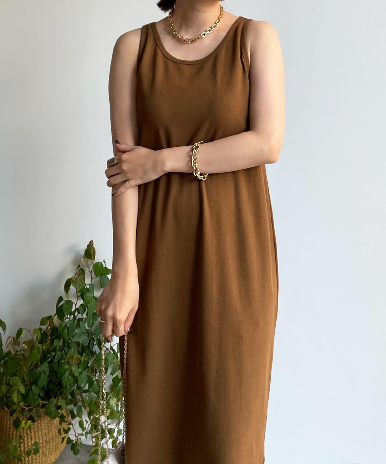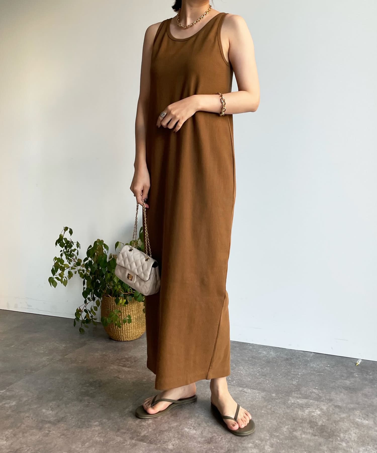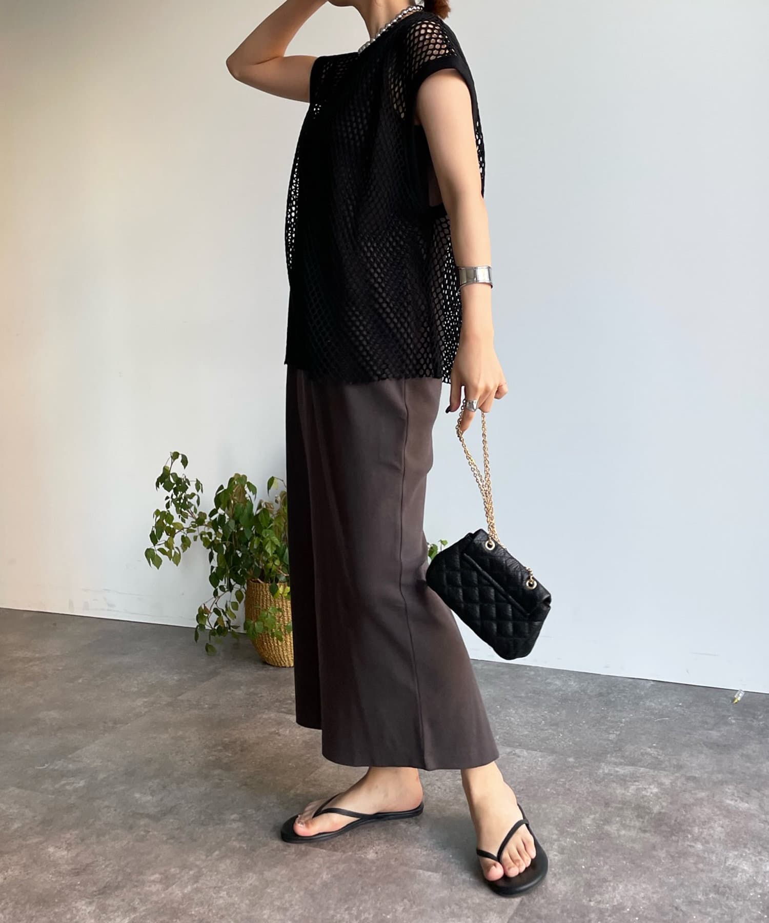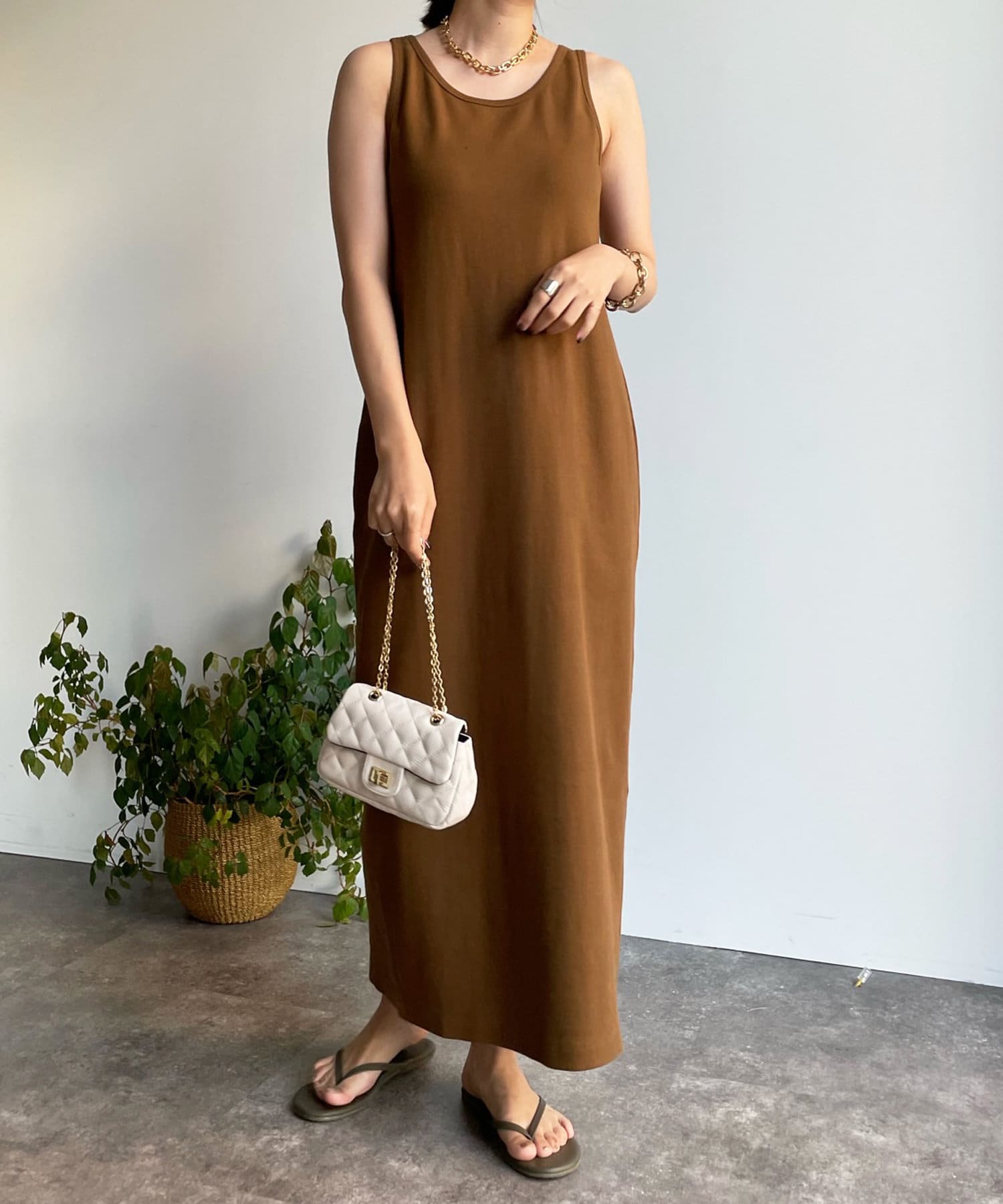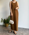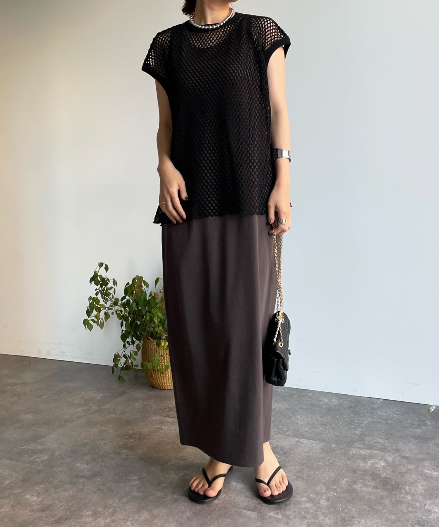ワンピースはすとんとIラインに落ちるシルエットで、きれい見えをプラス。