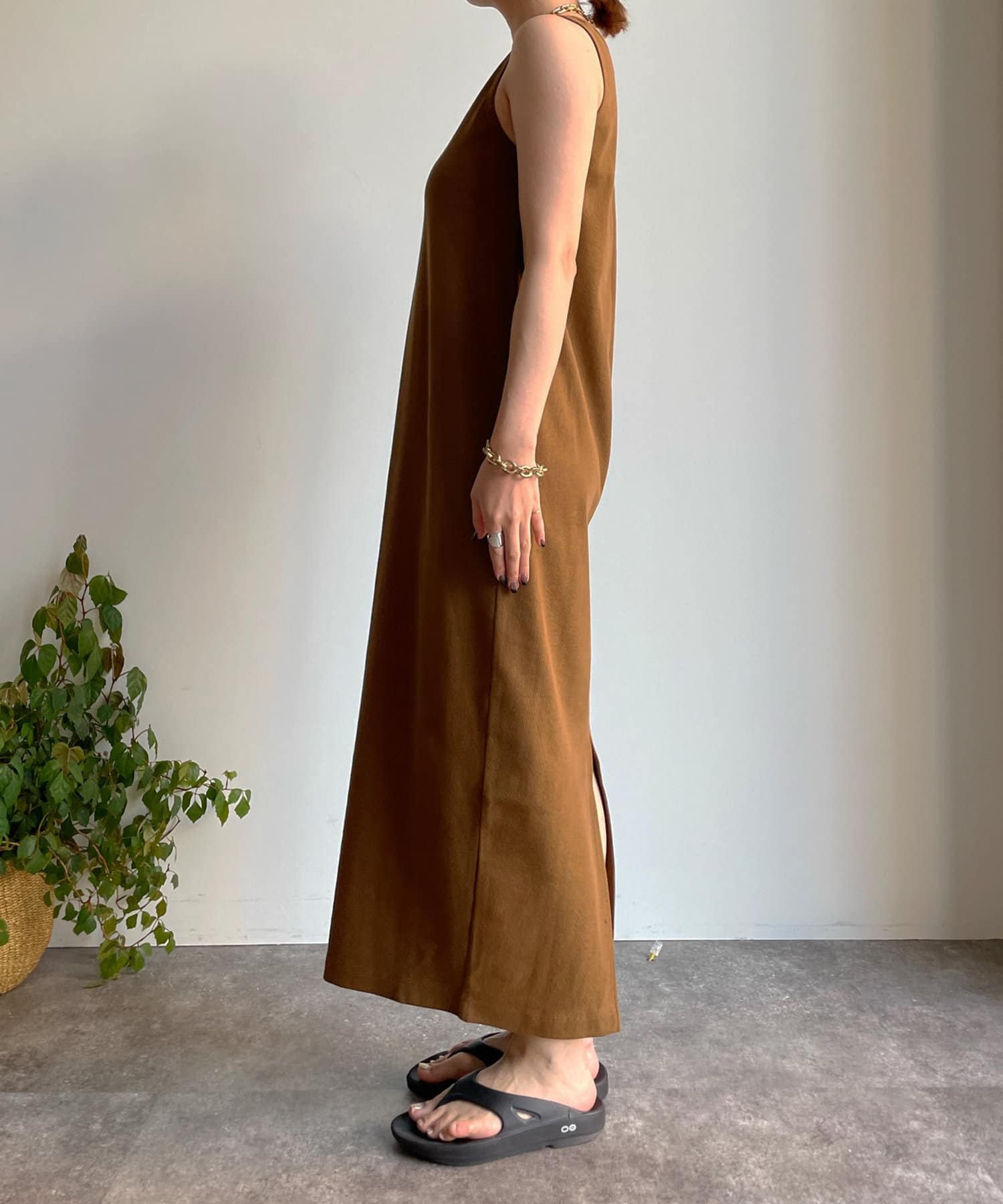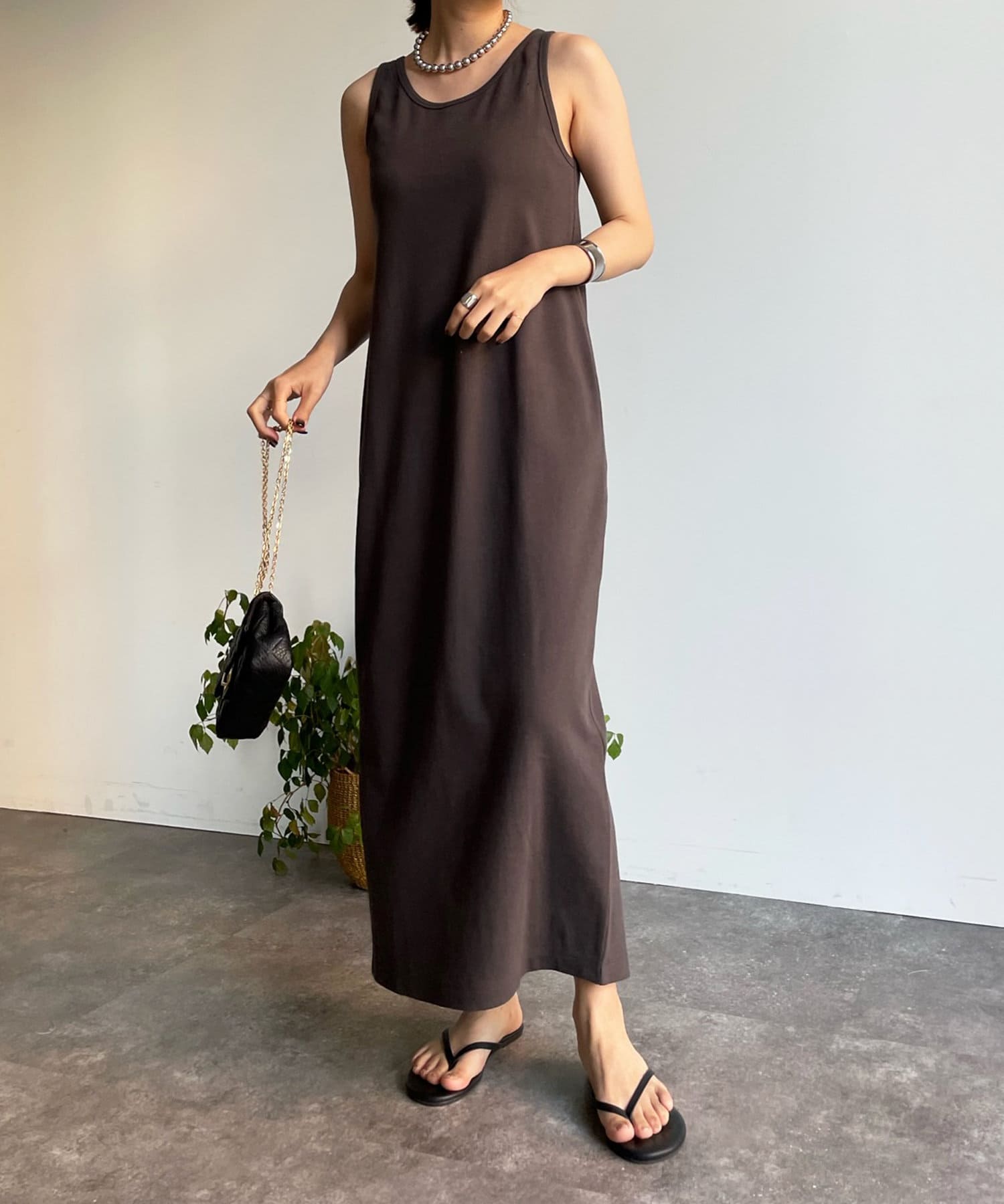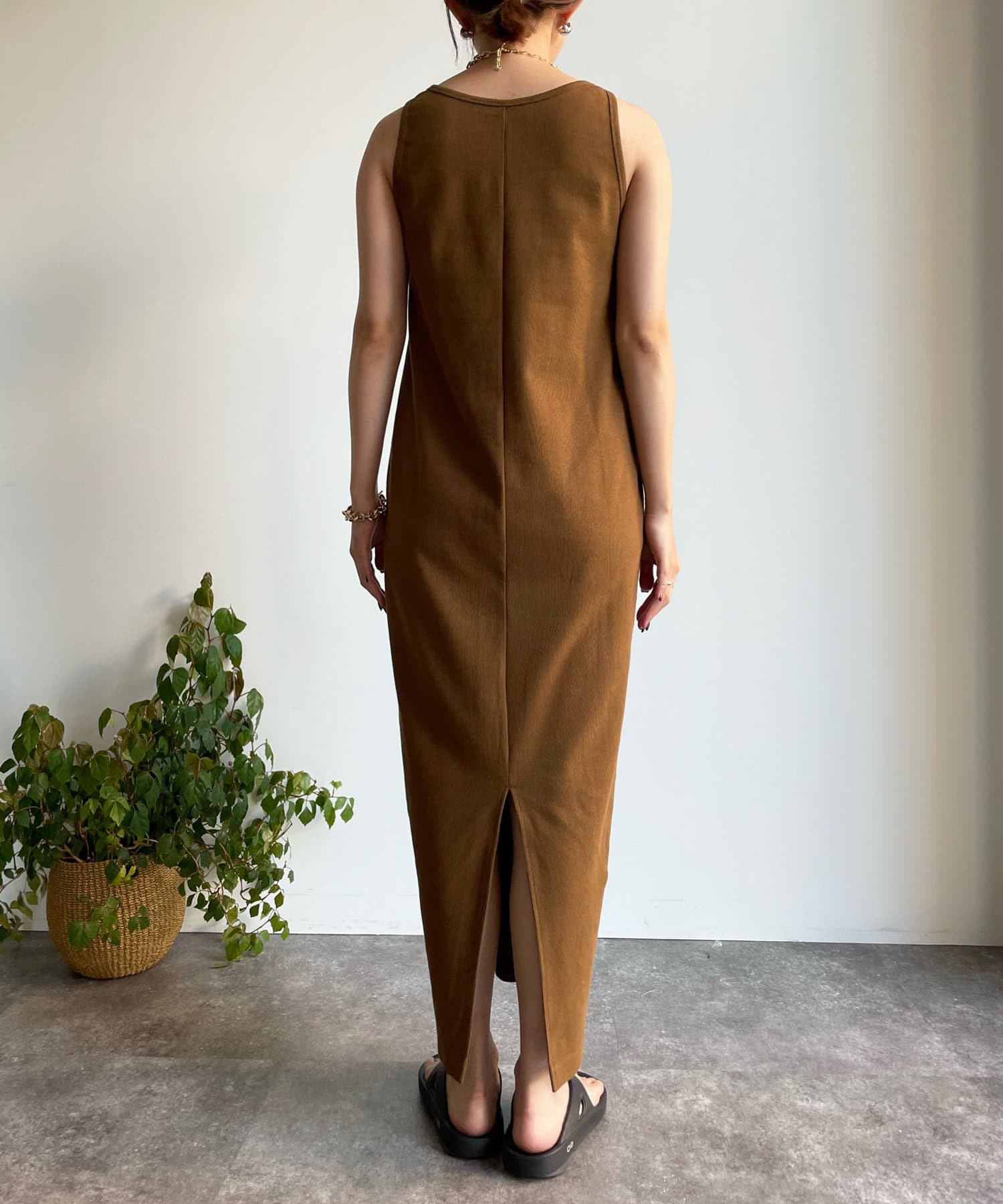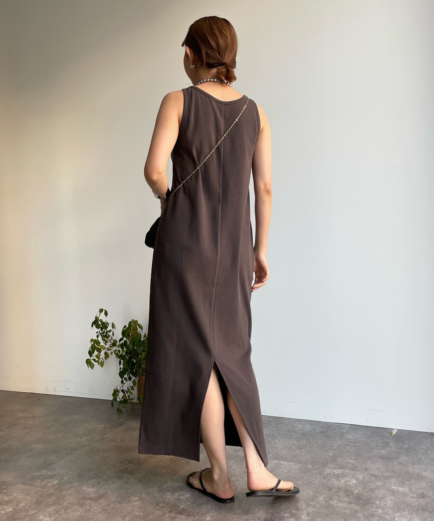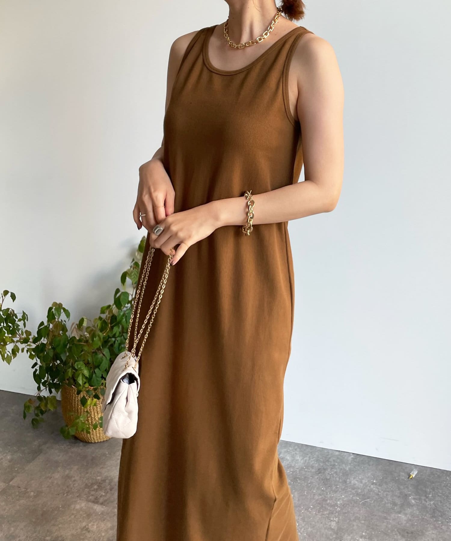 ワンピースはすとんとIラインに落ちるシルエットで、きれい見えをプラス。