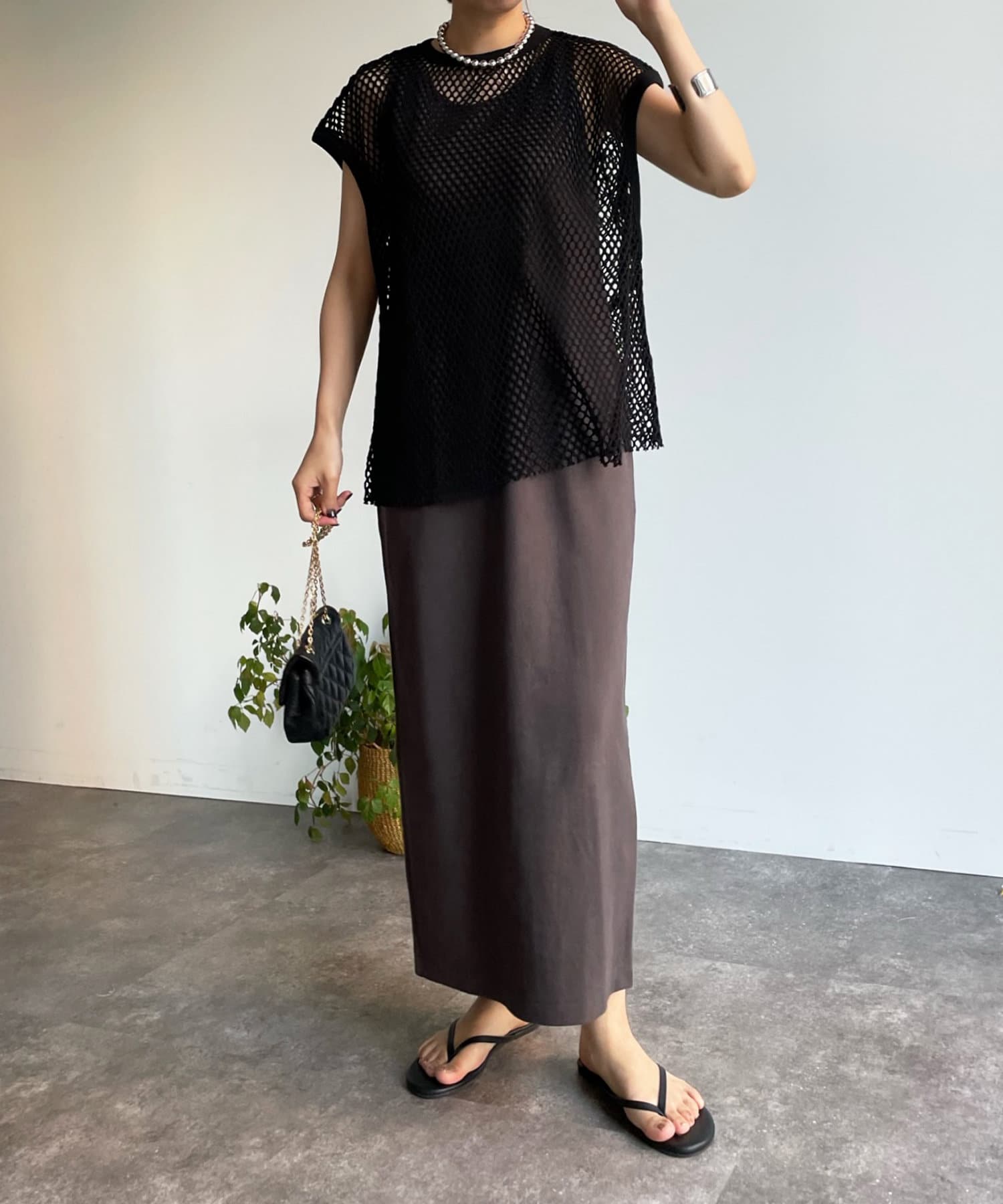 TOP > DOUDOU > レディース > ワンピース > ワンピース > メッシュプルオーバー+リブワンピースSET