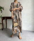 絶妙な柄とカラーリングで華やかな印象と存在感を与えるワンピース。