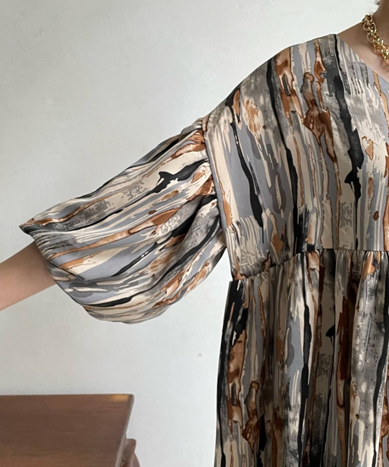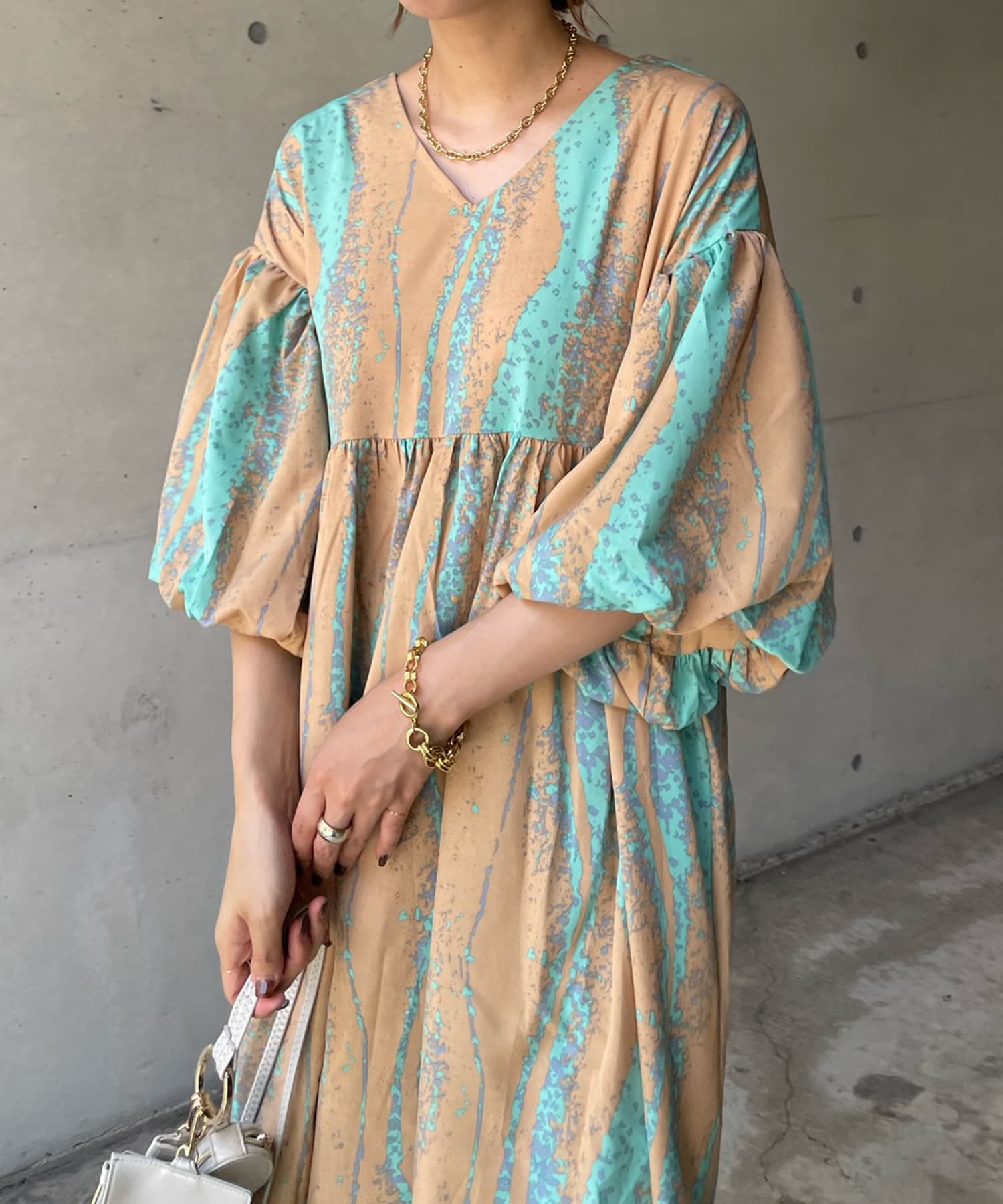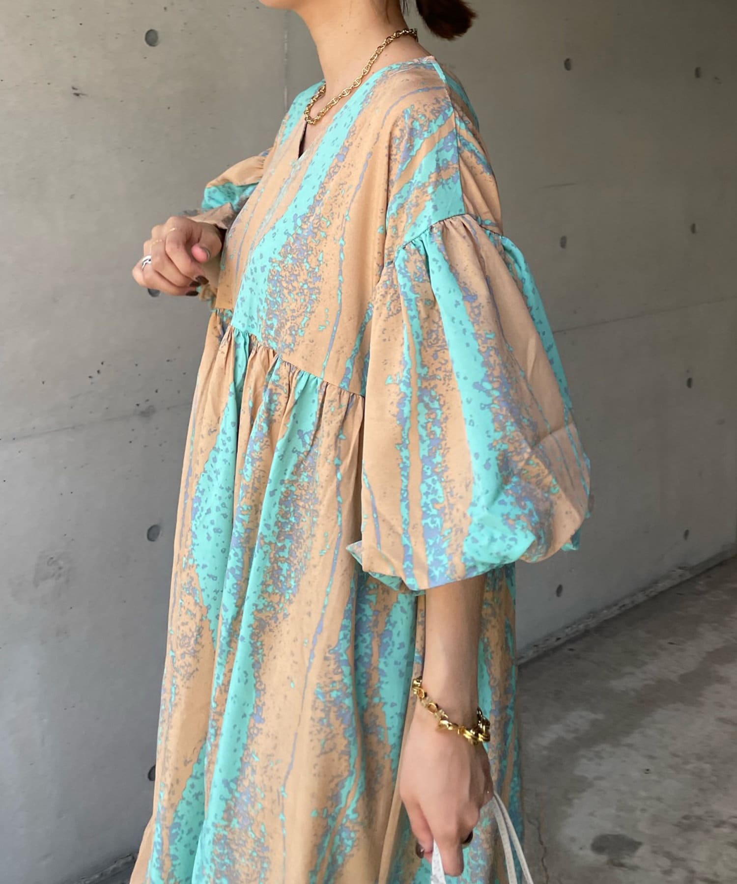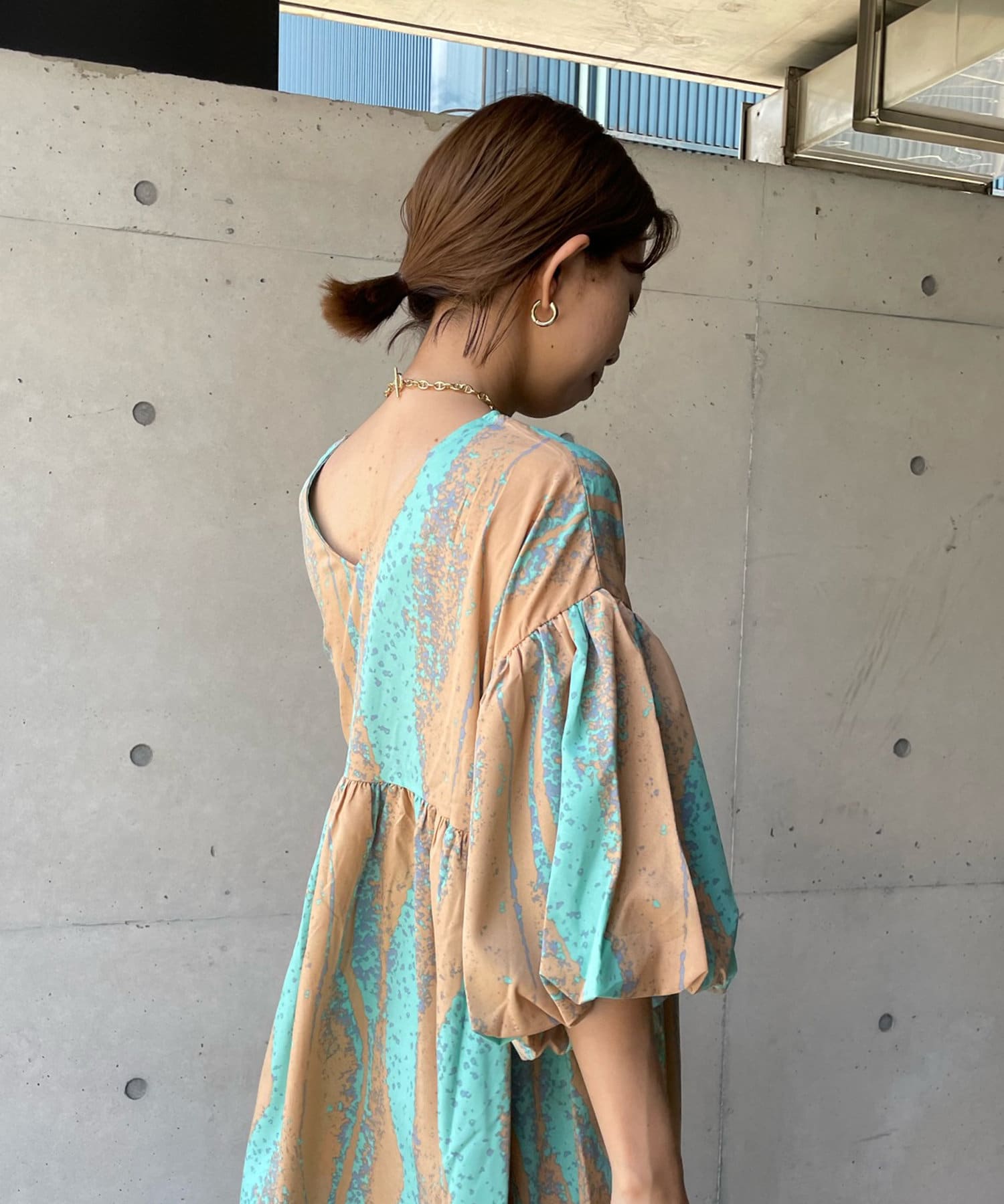 【一部WEB限定カラー】袖バルーンプリントワンピース