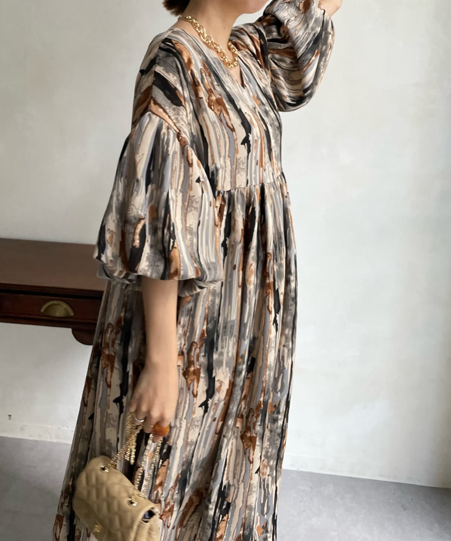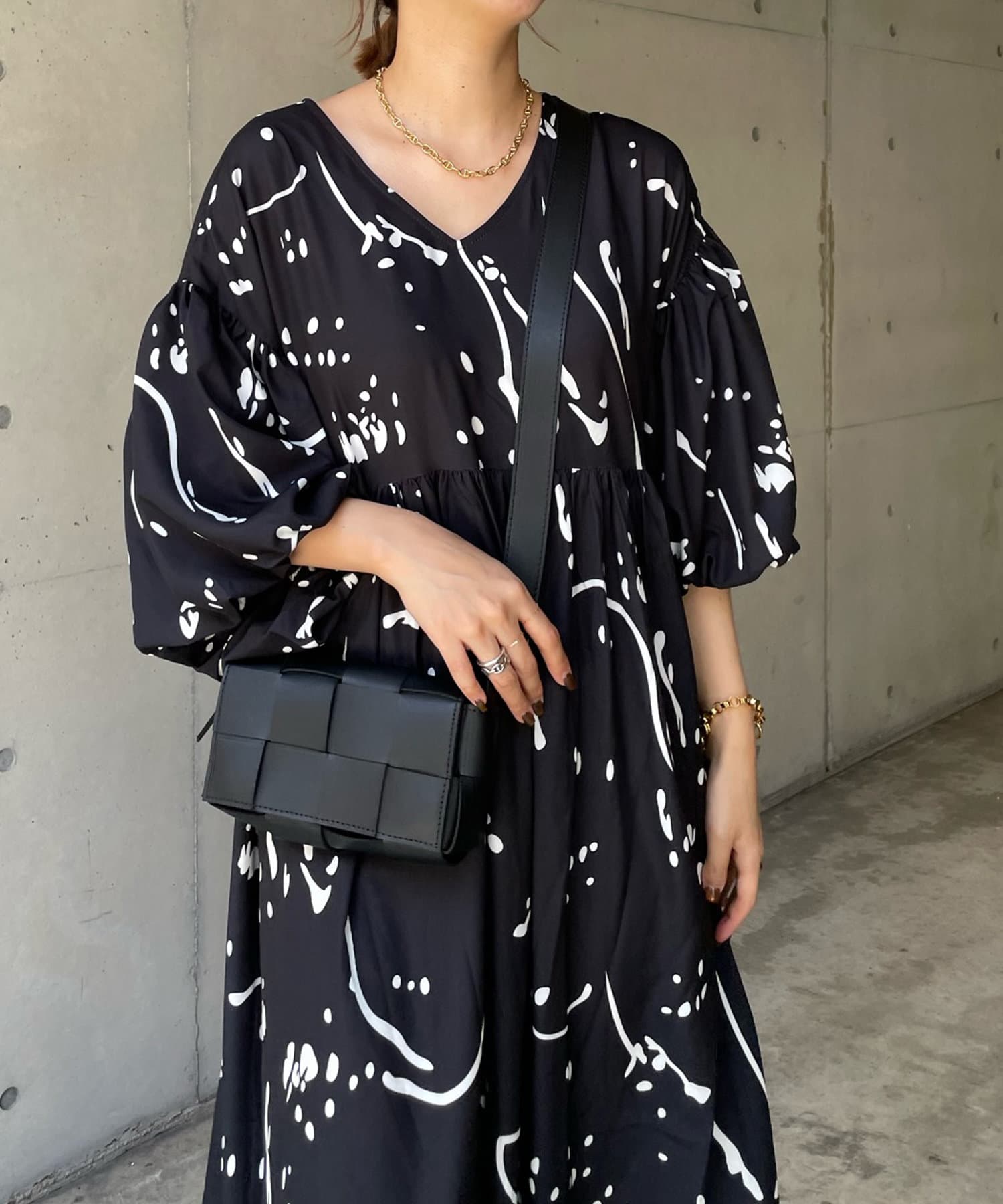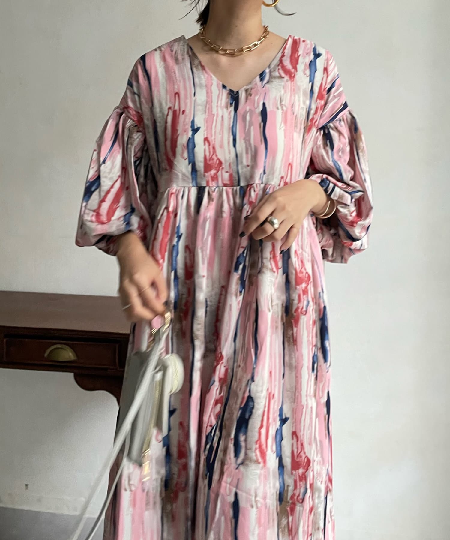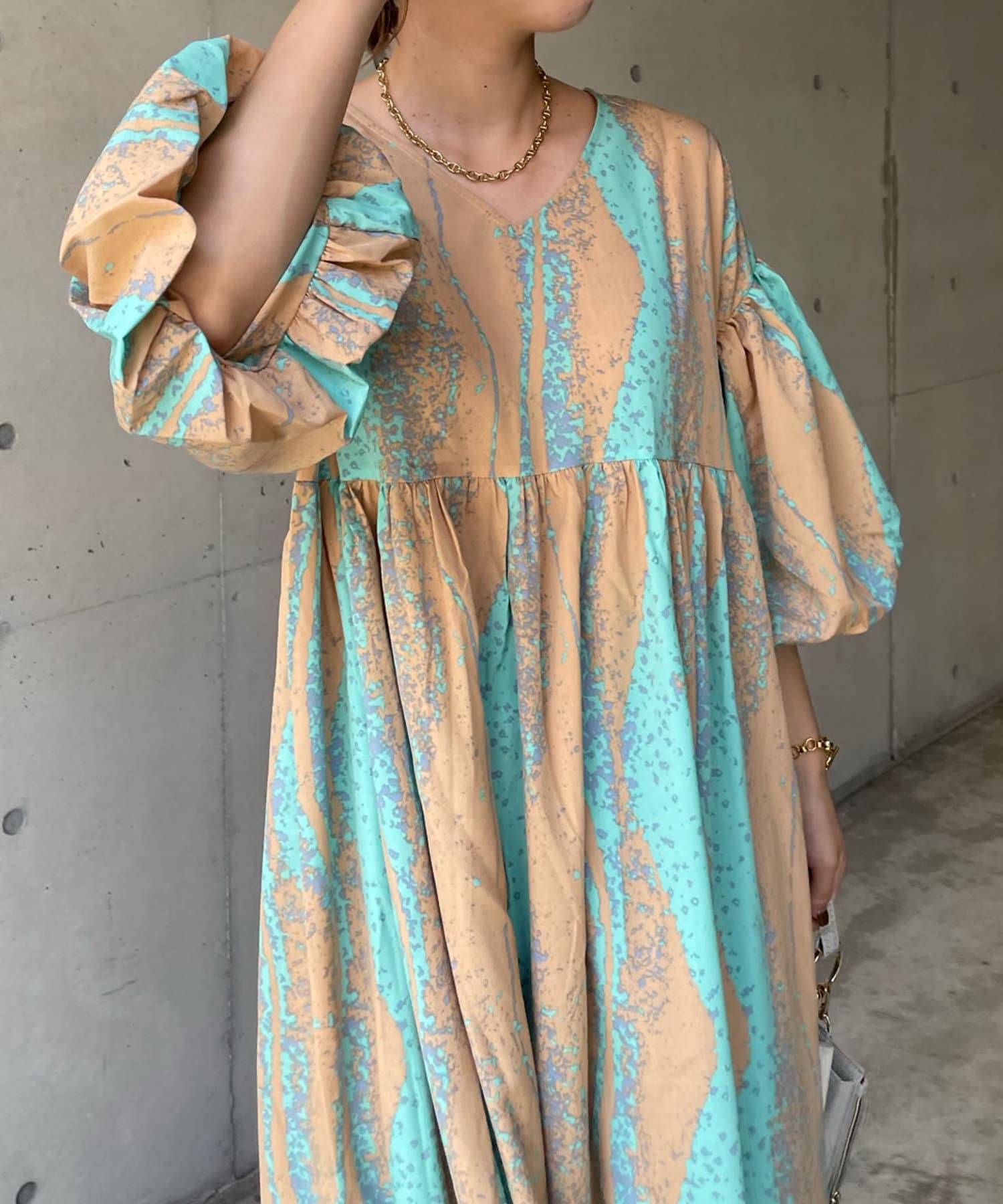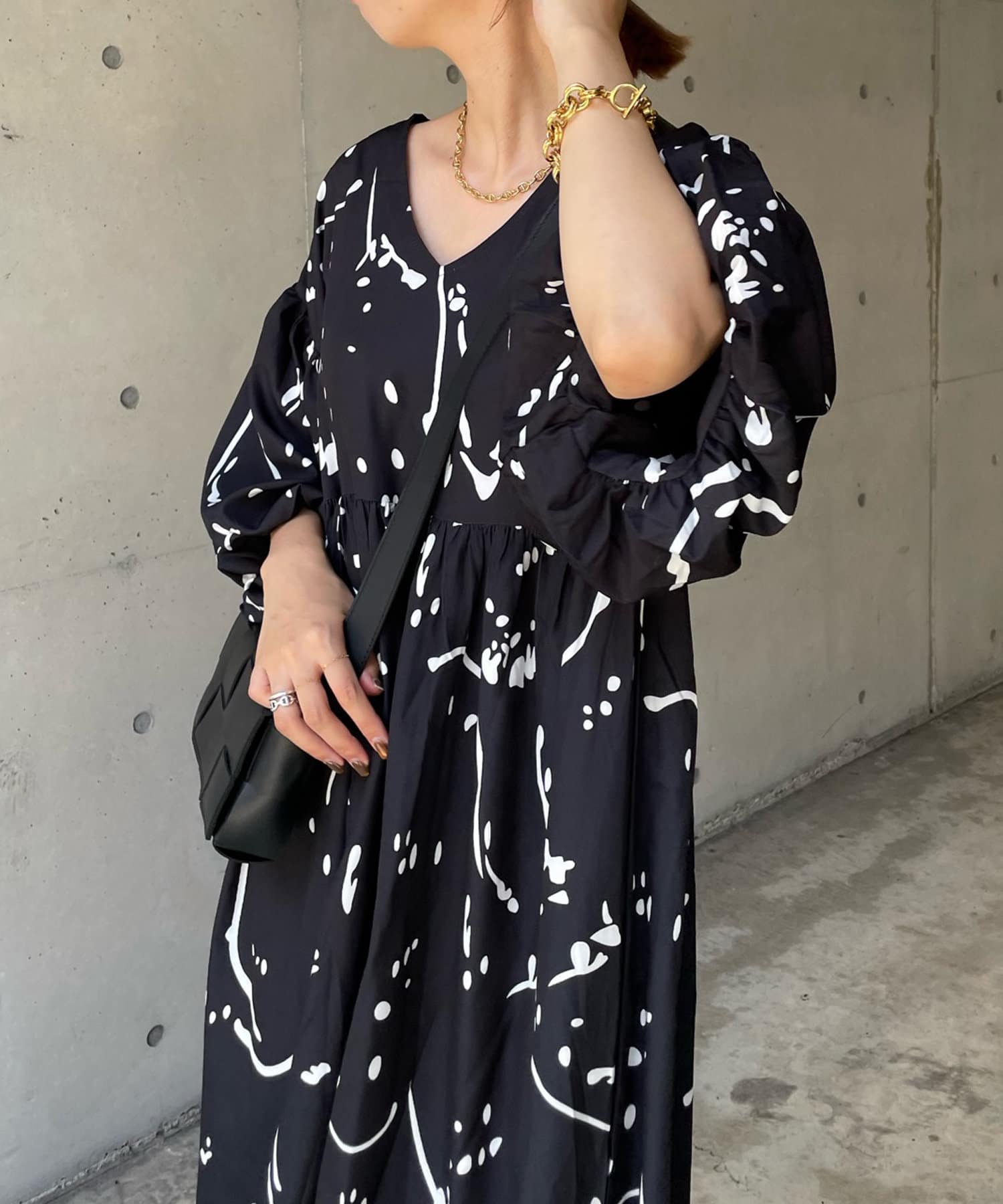 【一部WEB限定カラー】袖バルーンプリントワンピース