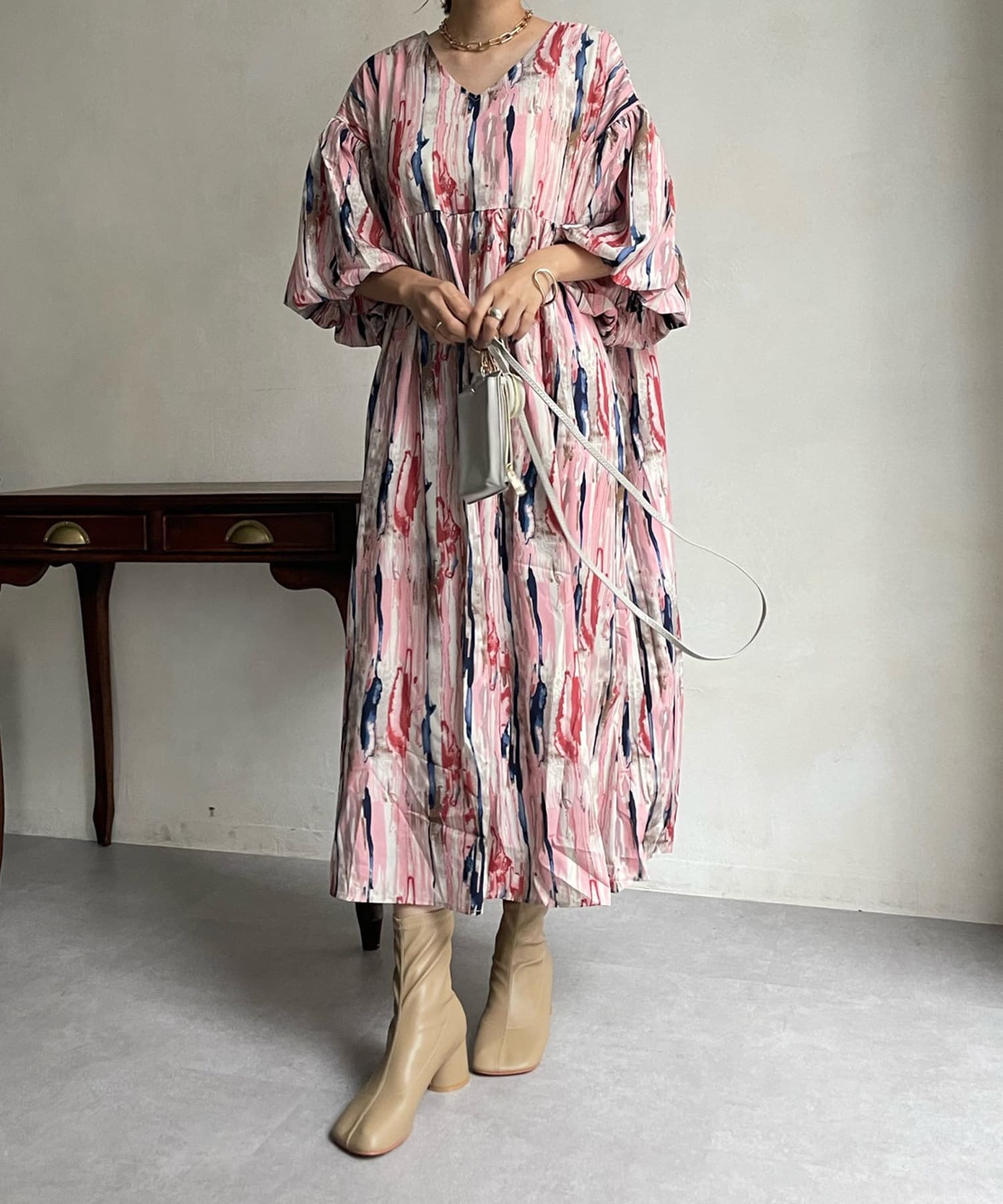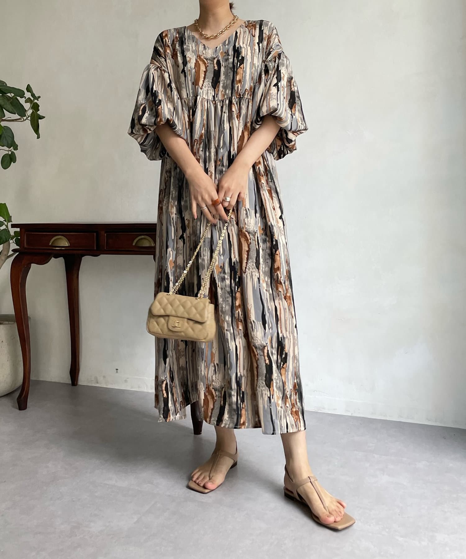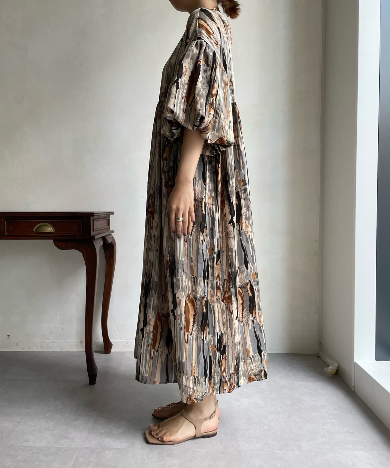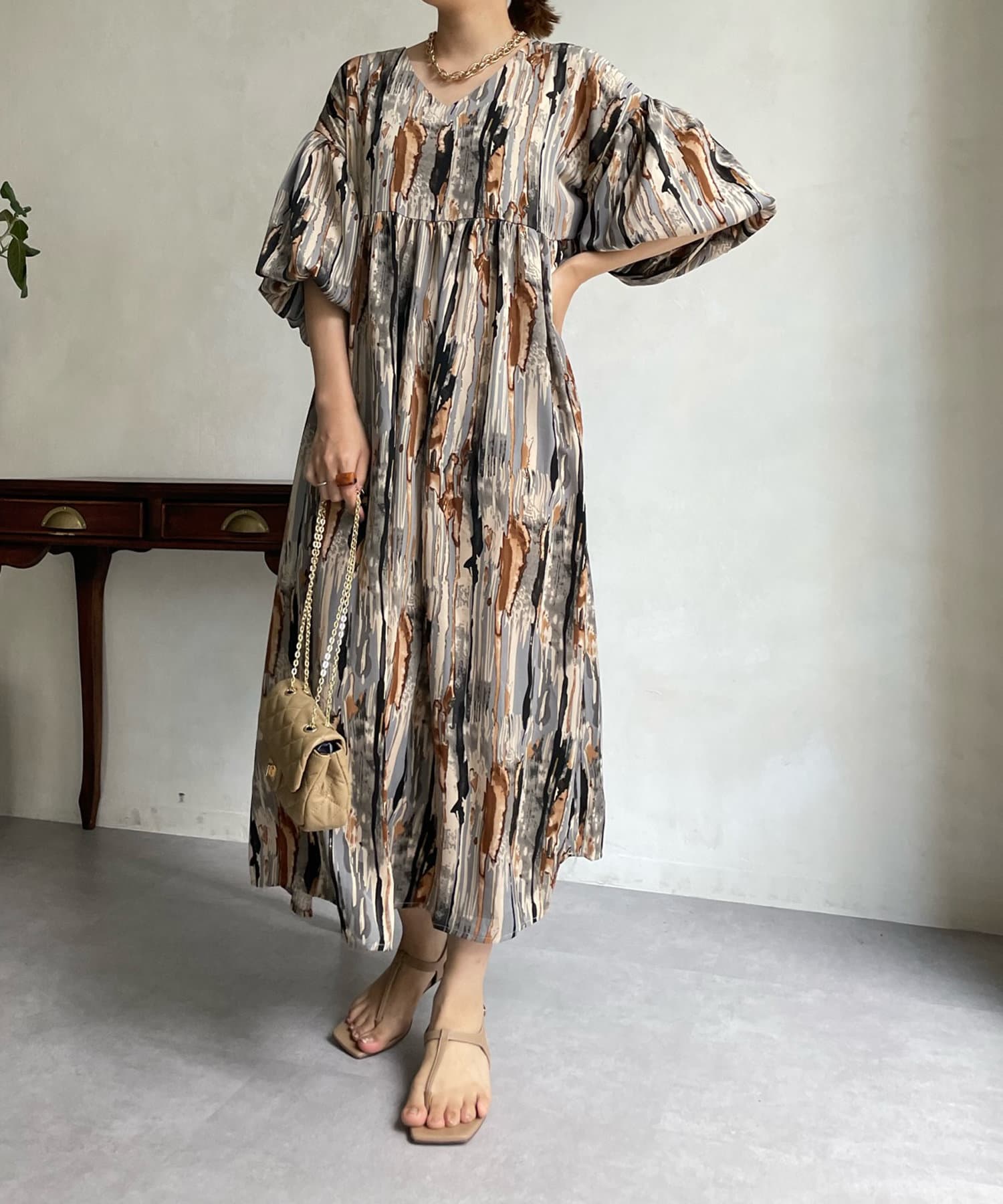 【一部WEB限定カラー】袖バルーンプリントワンピース