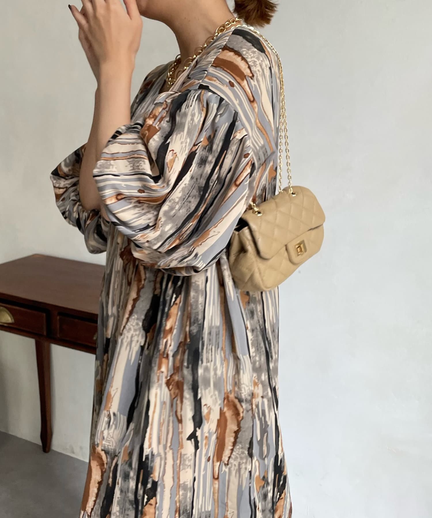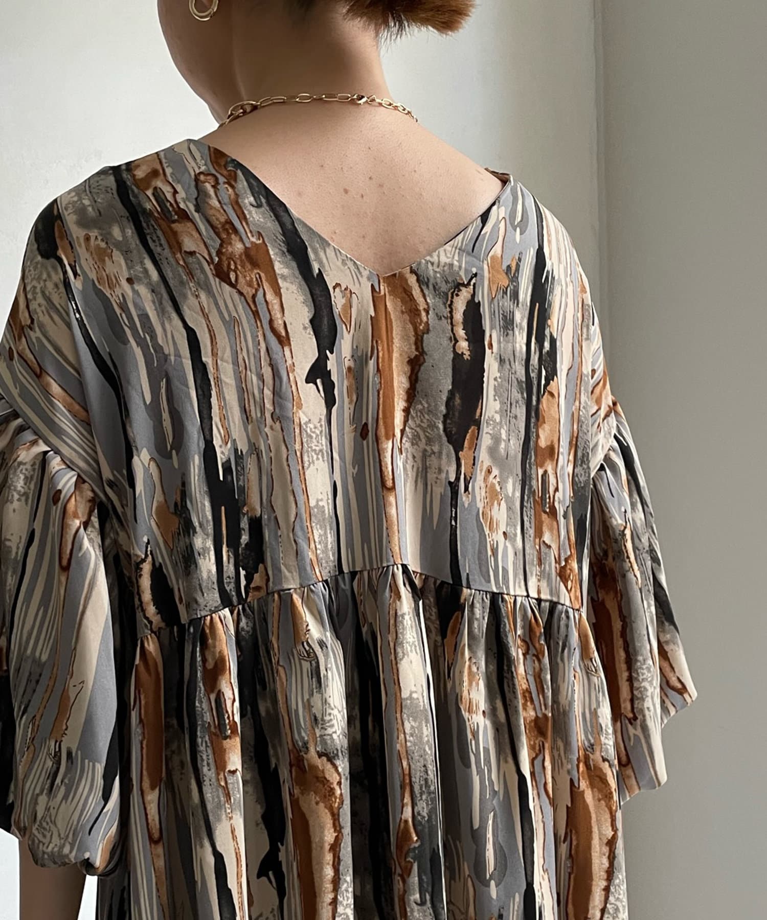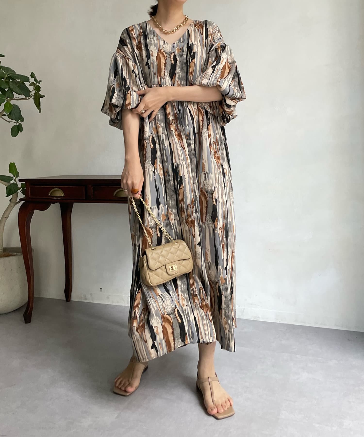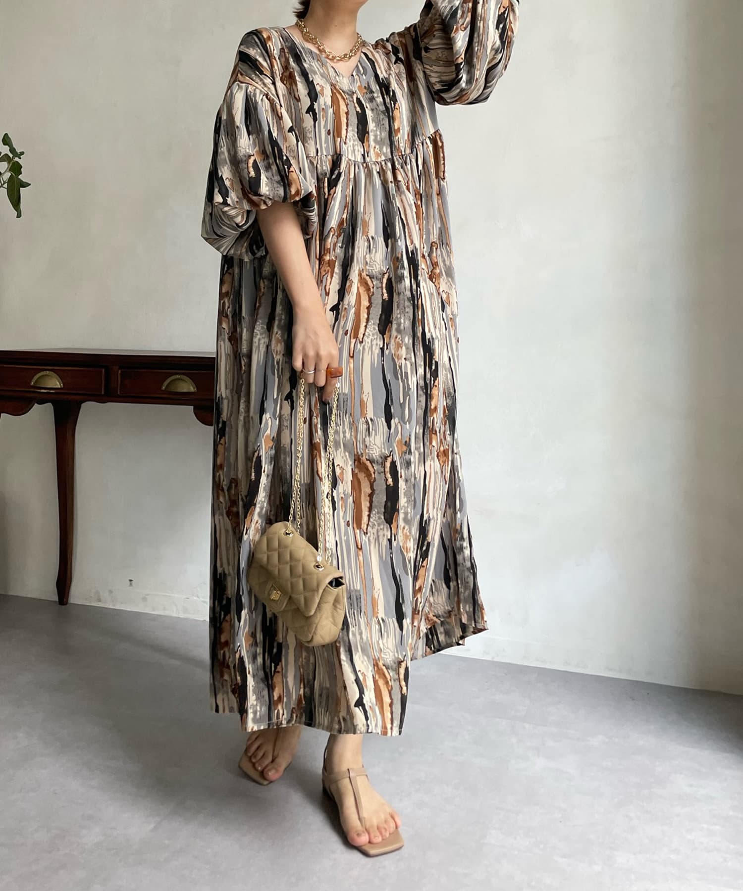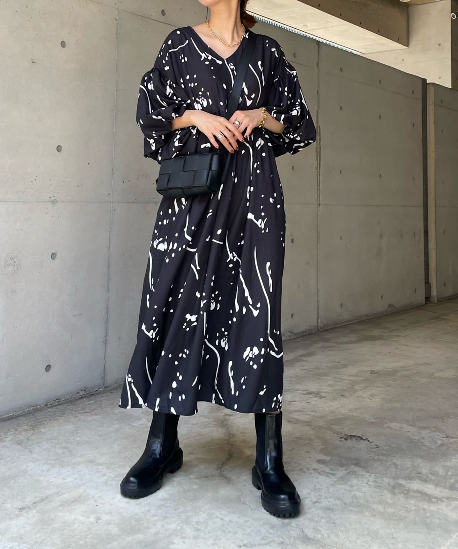 【一部WEB限定カラー】袖バルーンプリントワンピース