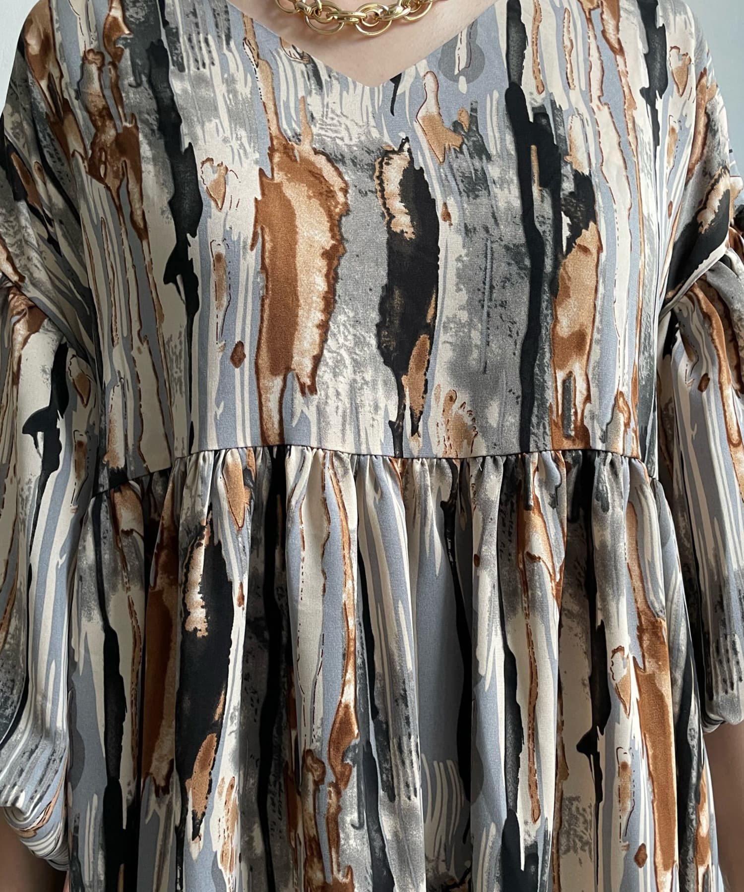 ニュアンス感のある柄が他には無く、その日1日の気分をぐっと上げてくれる1着です。