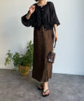 フロントに施したスリットは足さばきの良さだけでなく、抜け感をプラスしてトレンドを押さえた今年らしい印象もプラス。
