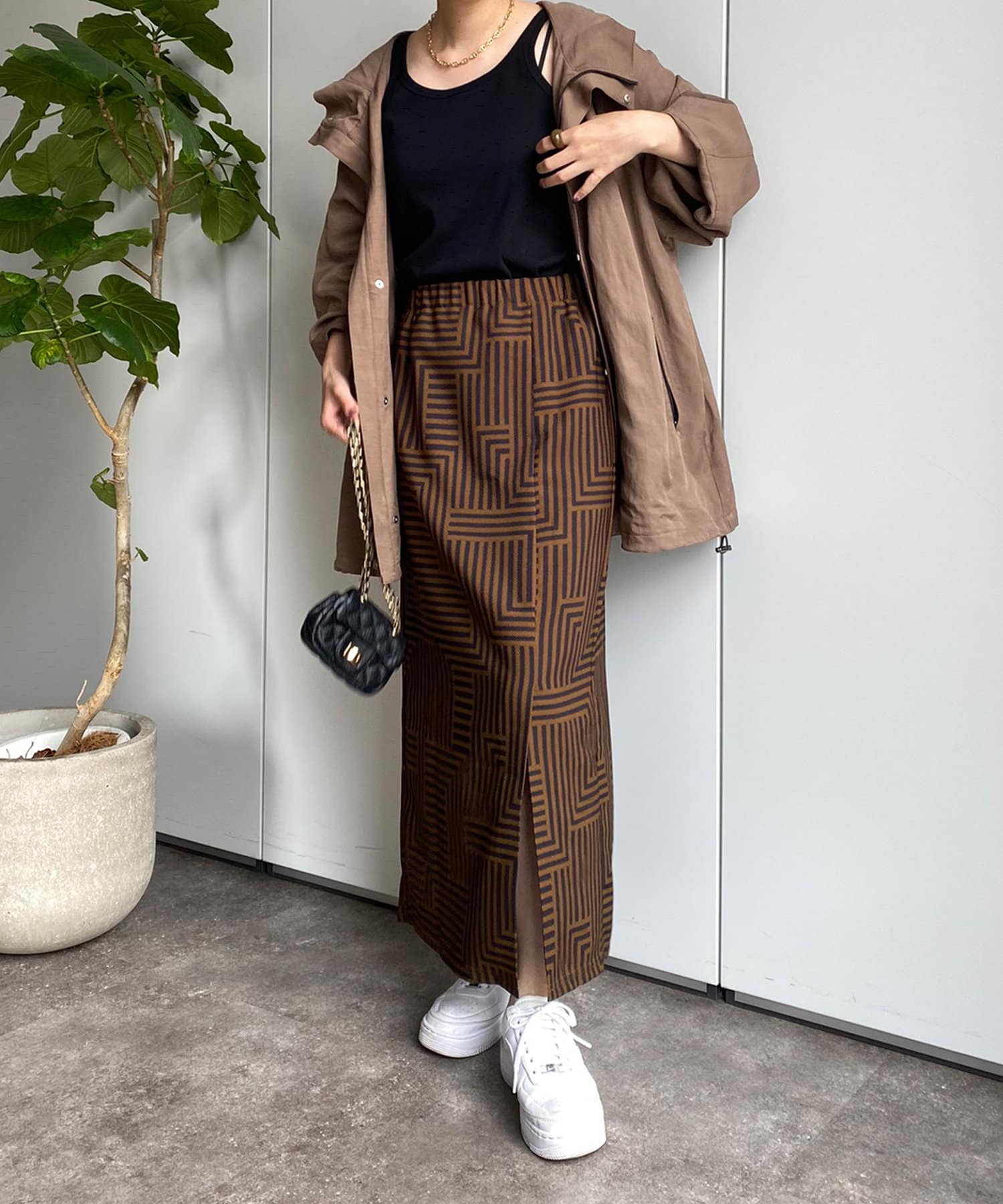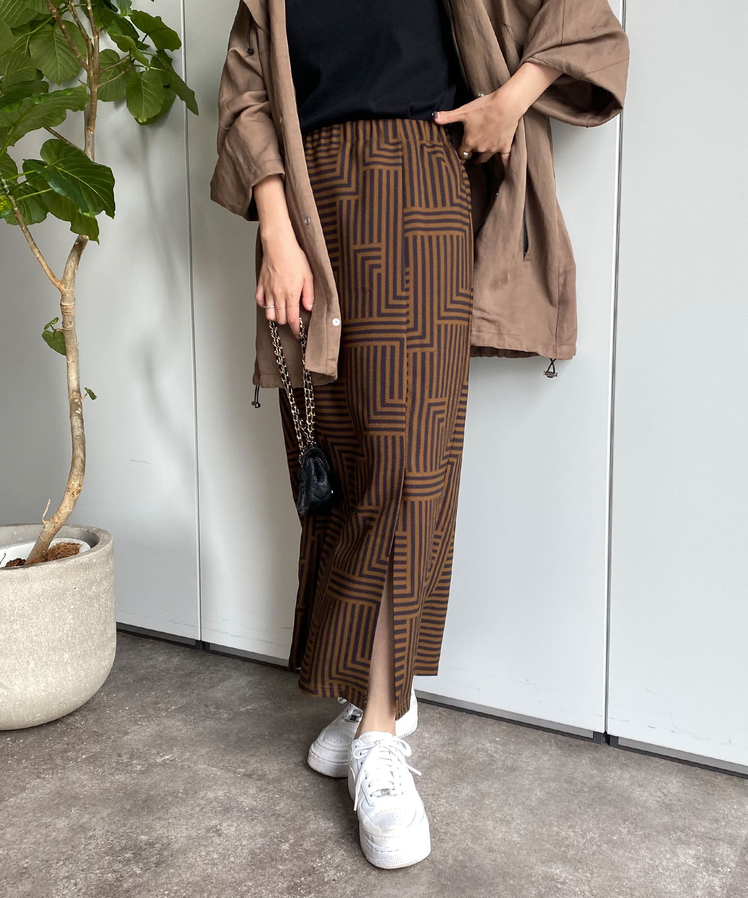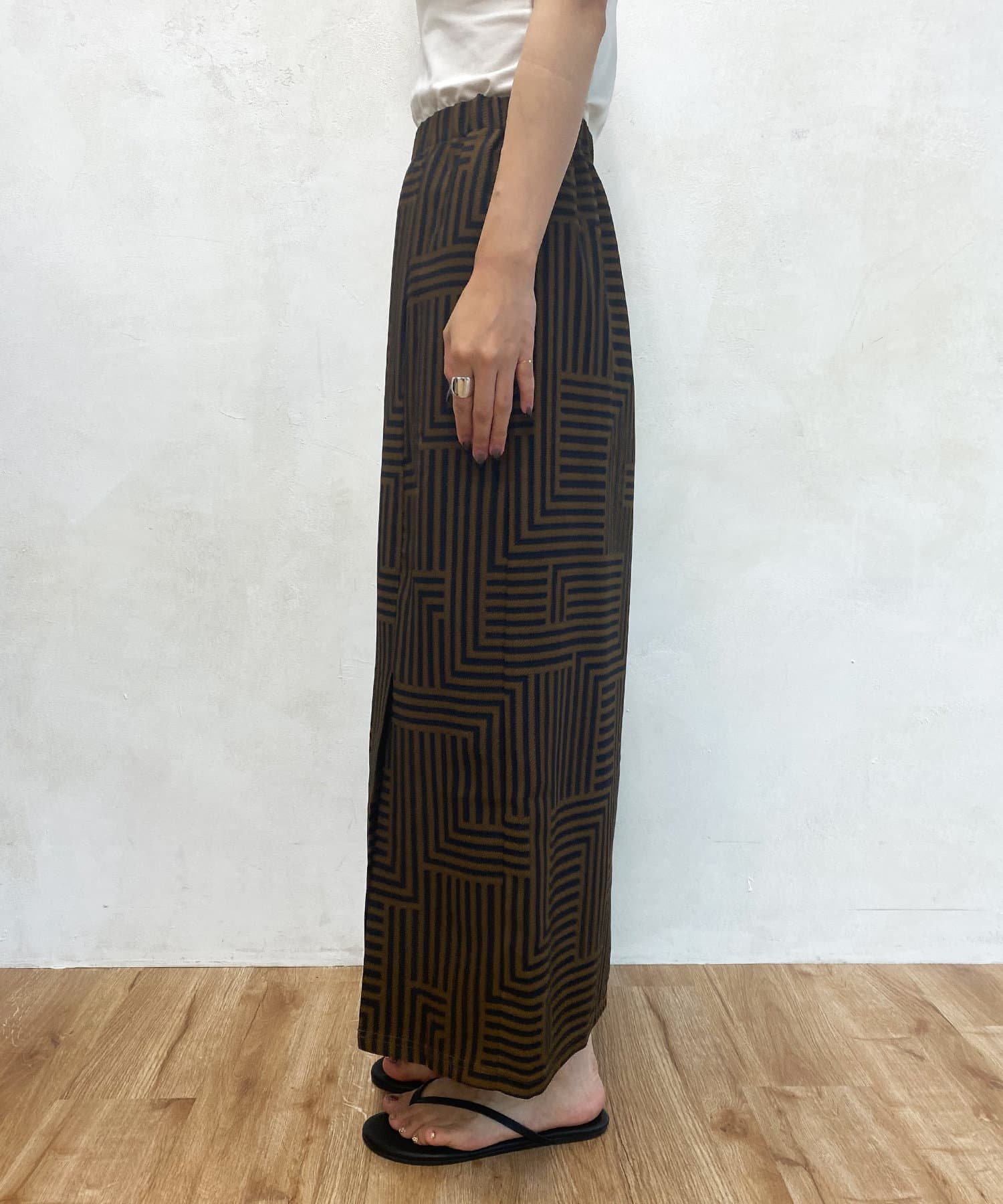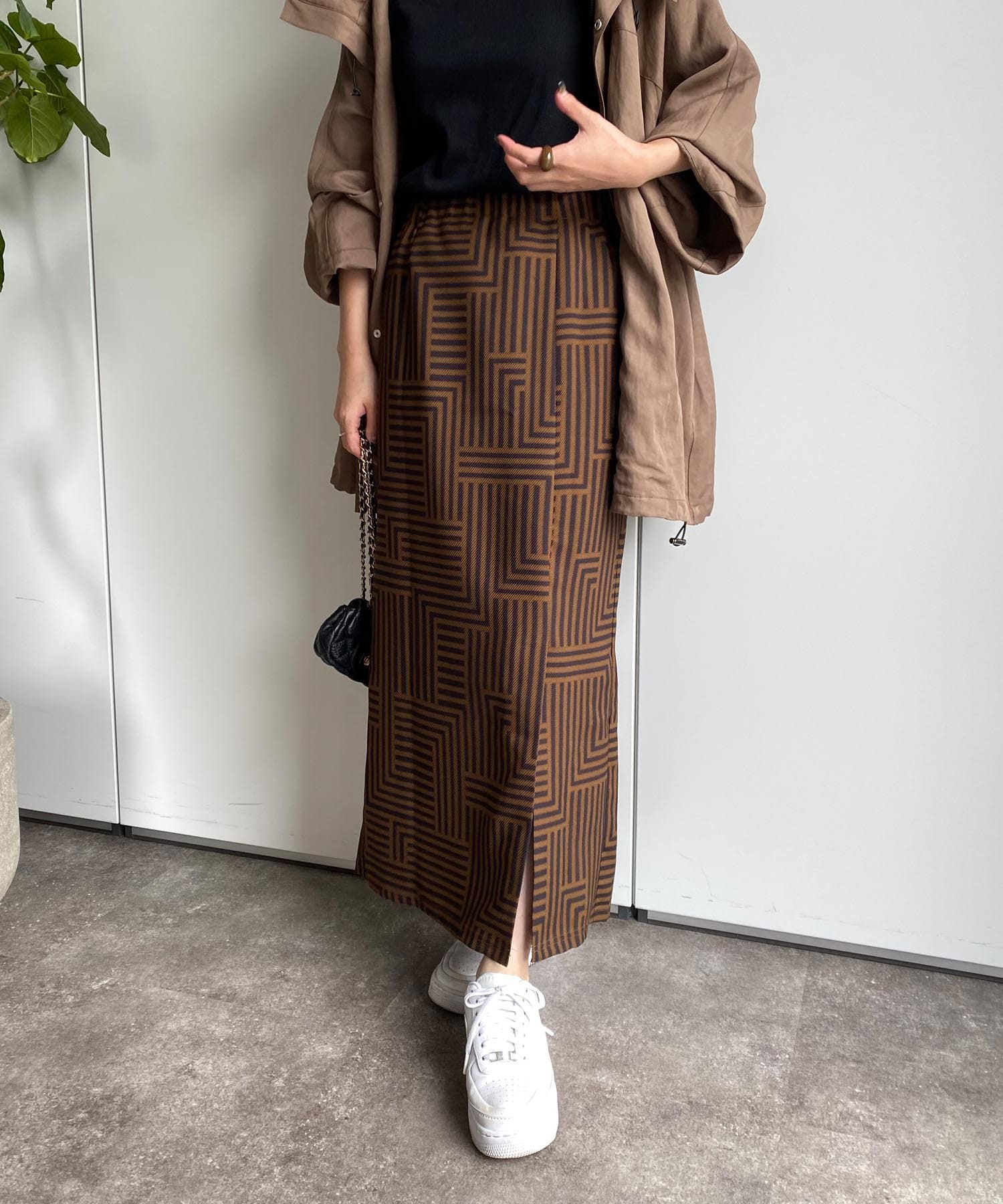 大人らしく仕上げてくれる幾何柄は、いつものトップスに合わせるだけでスカートスタイルを新鮮に見せてくれる1着です。