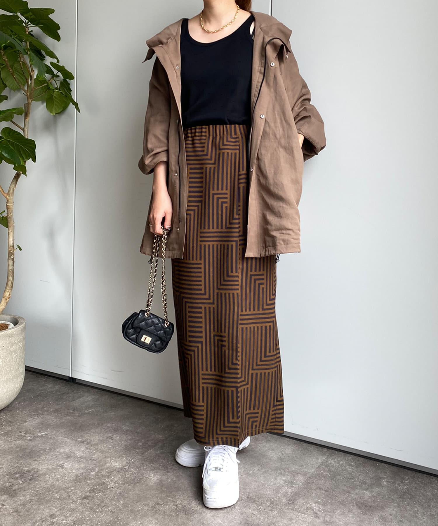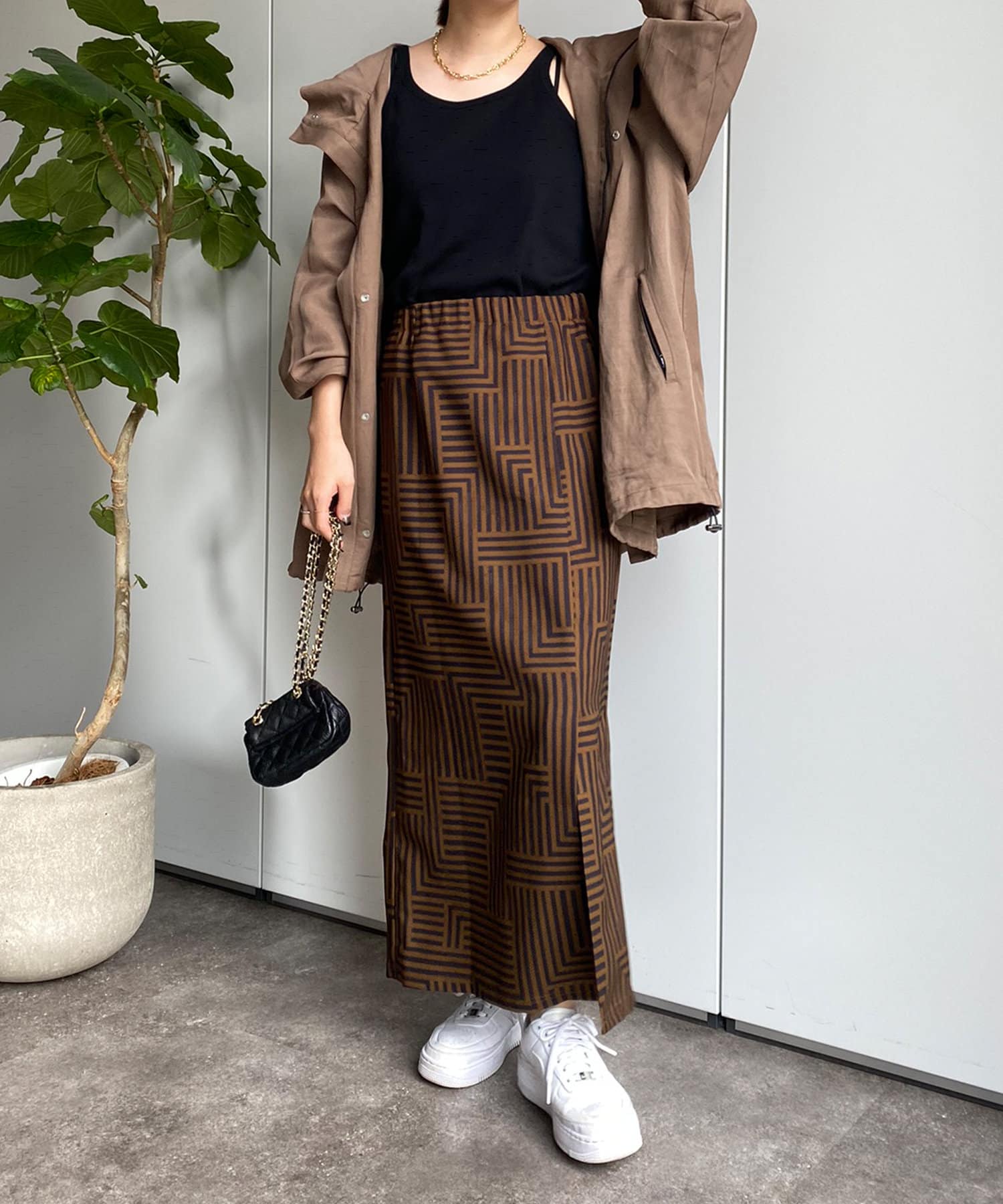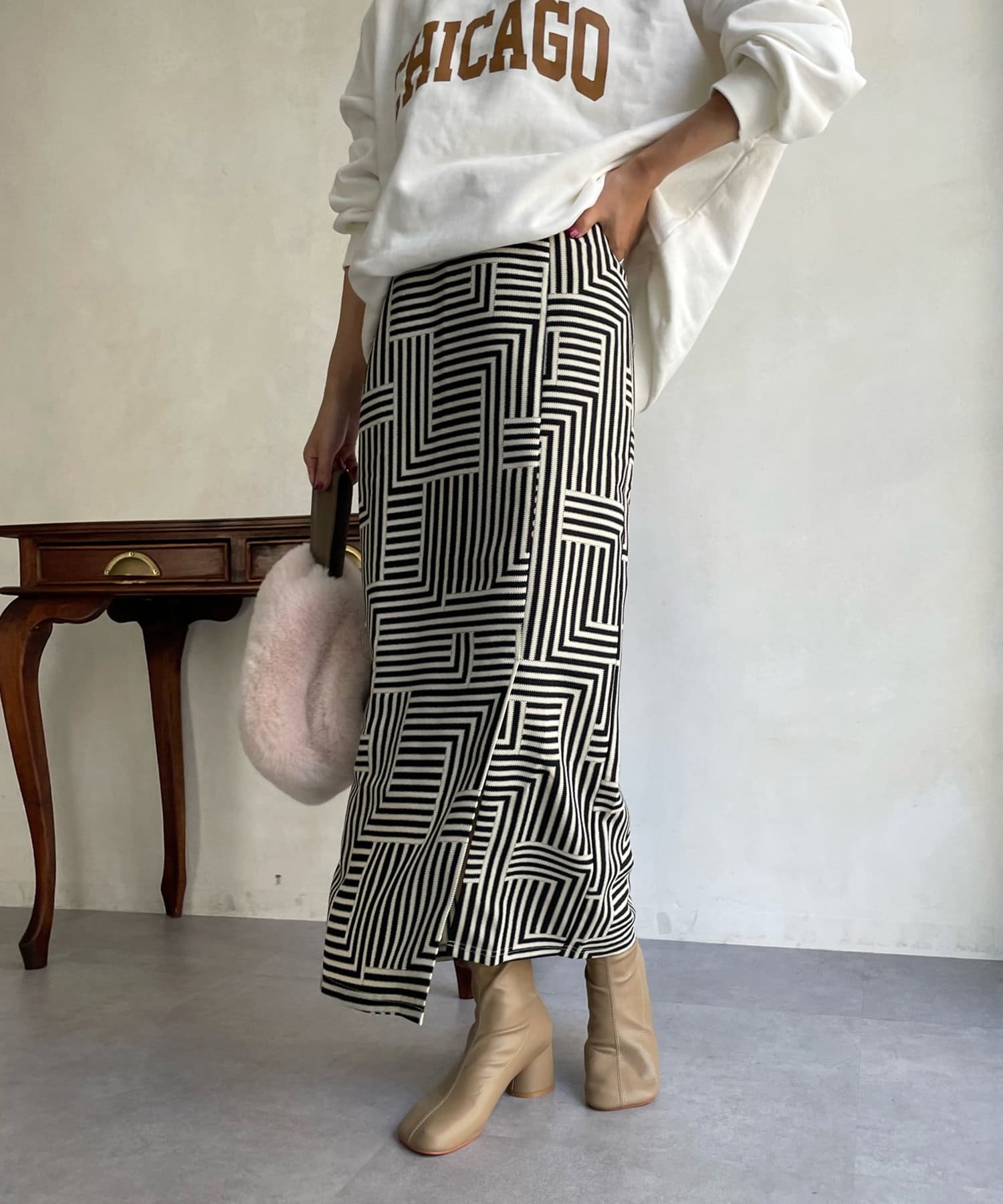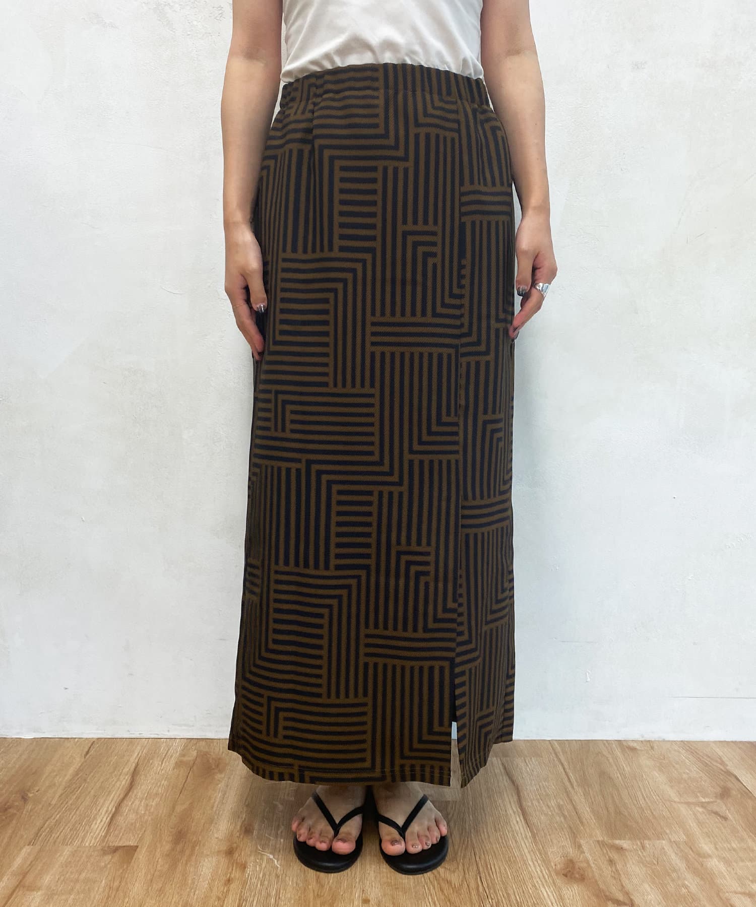 大人らしく仕上げてくれる幾何柄は、いつものトップスに合わせるだけでスカートスタイルを新鮮に見せてくれる1着です。