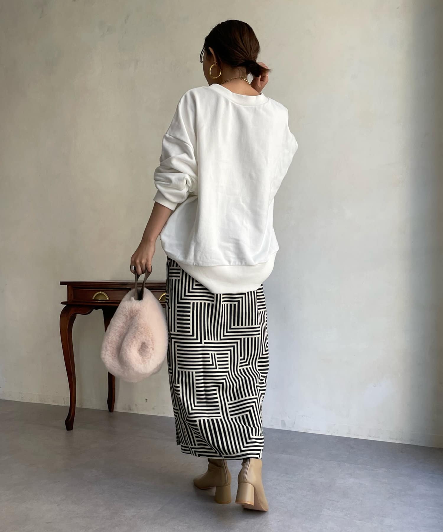 スタイリングに馴染みやすいモダンな幾何柄。