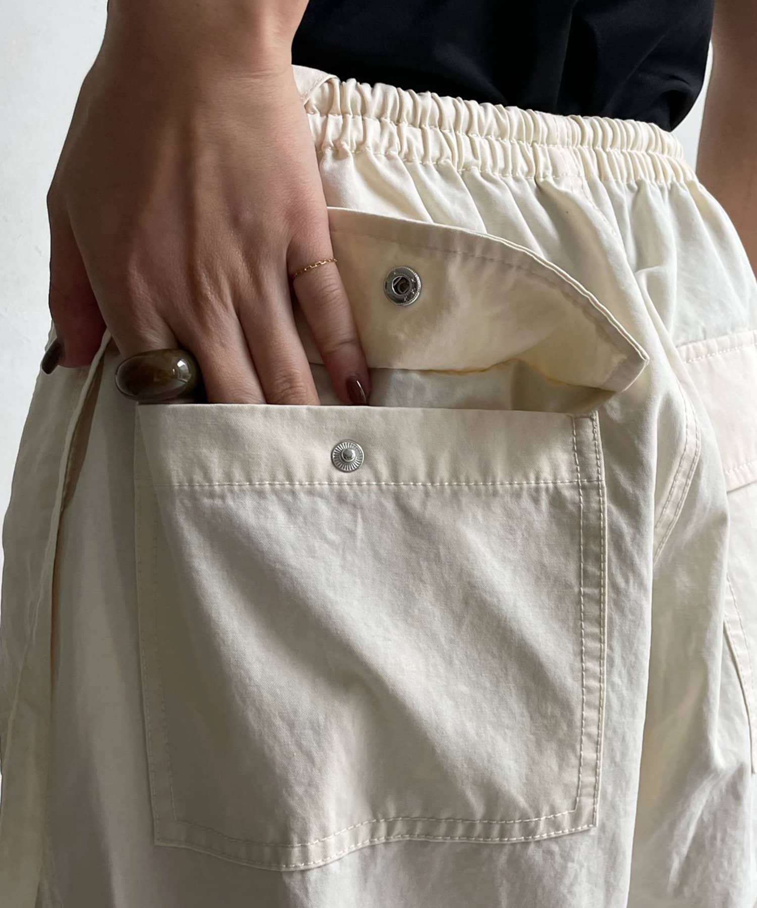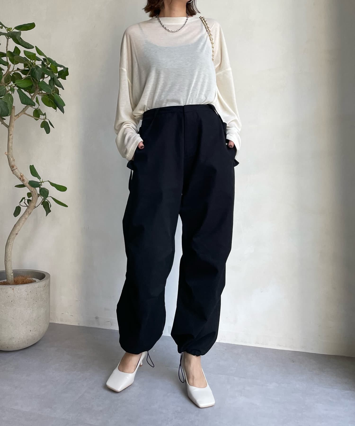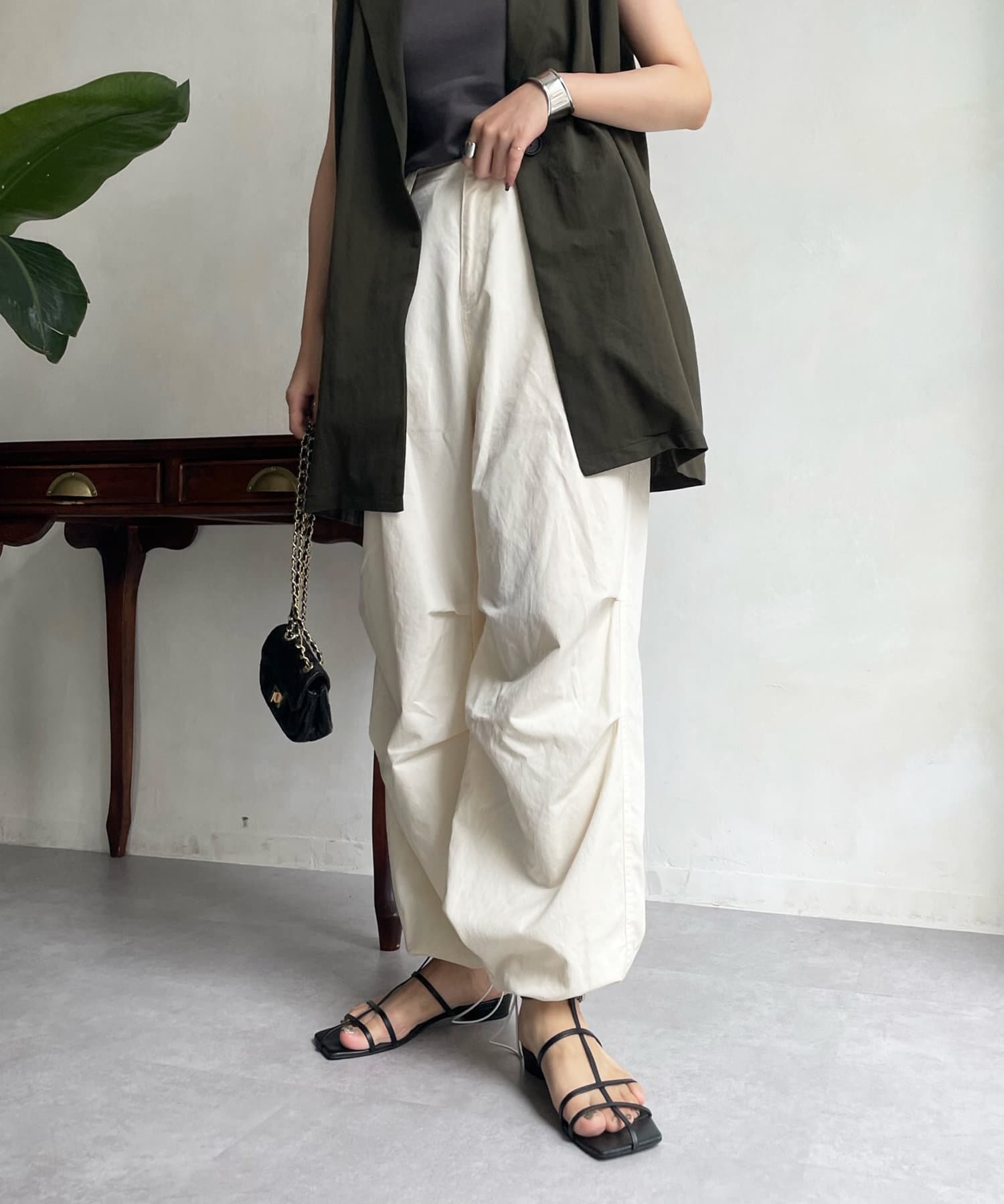 トレンドのパラシュートパンツ。DOUDOUらしく、大人に仕上がるデザインで登場。