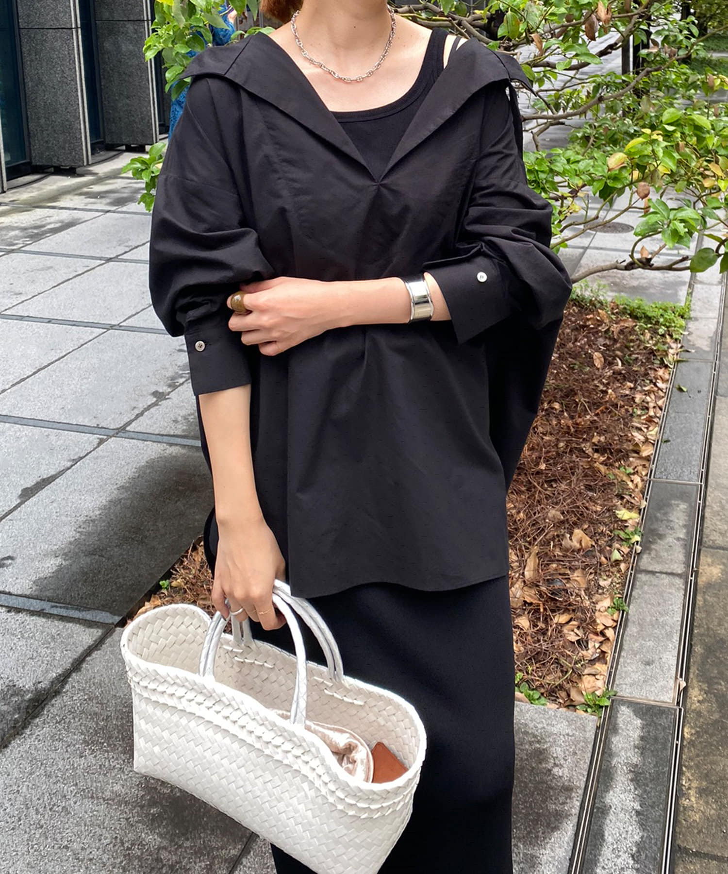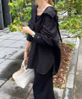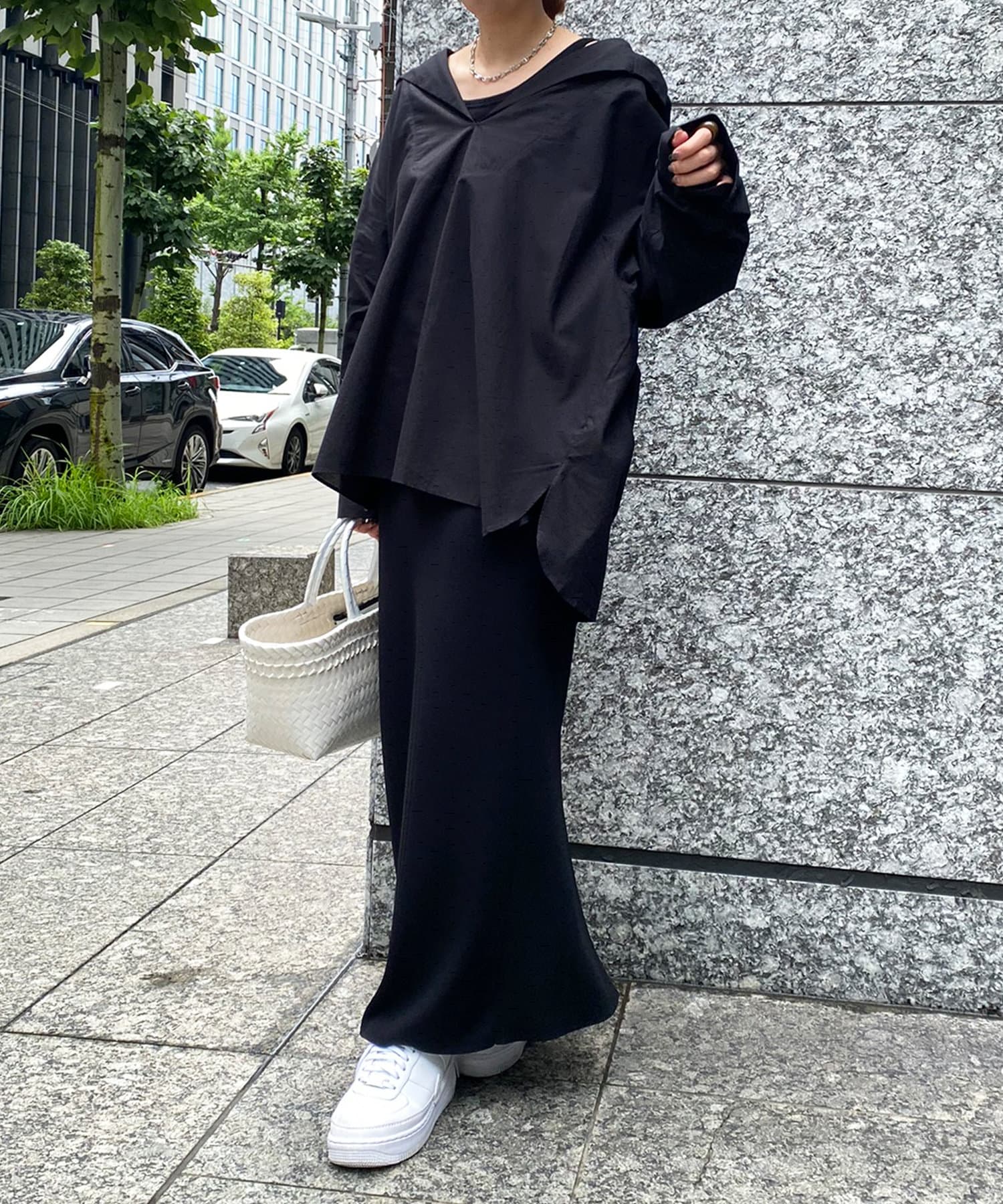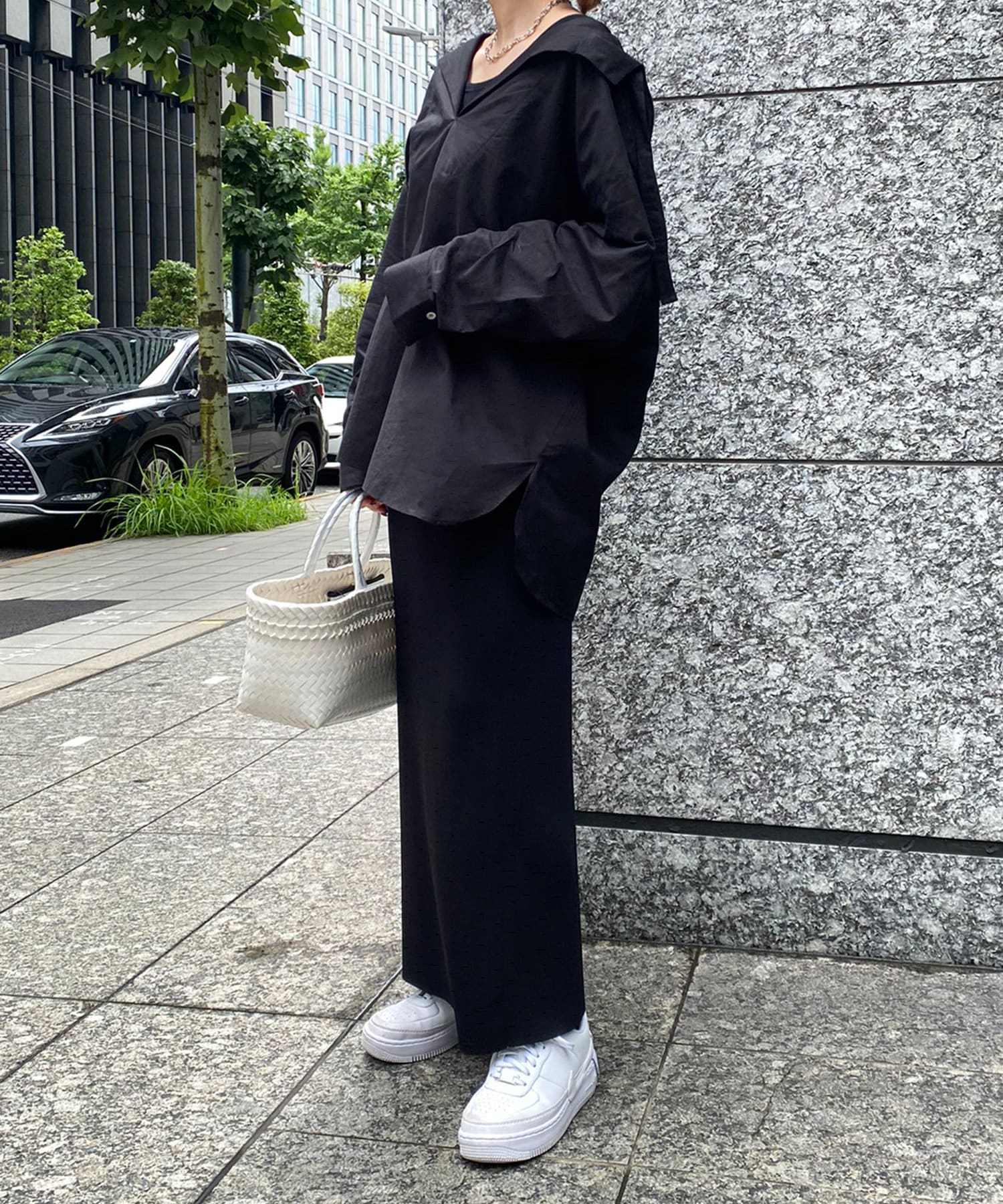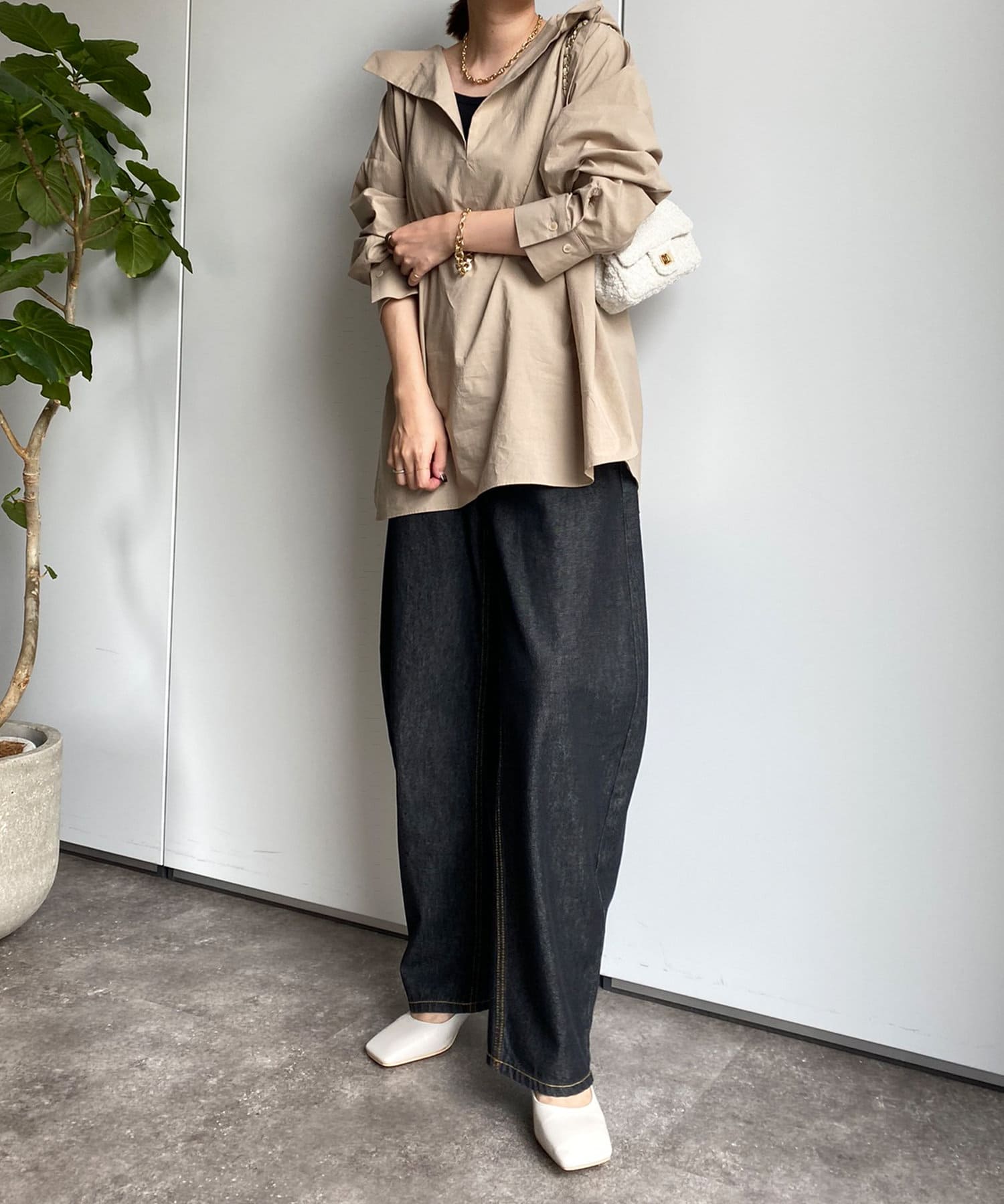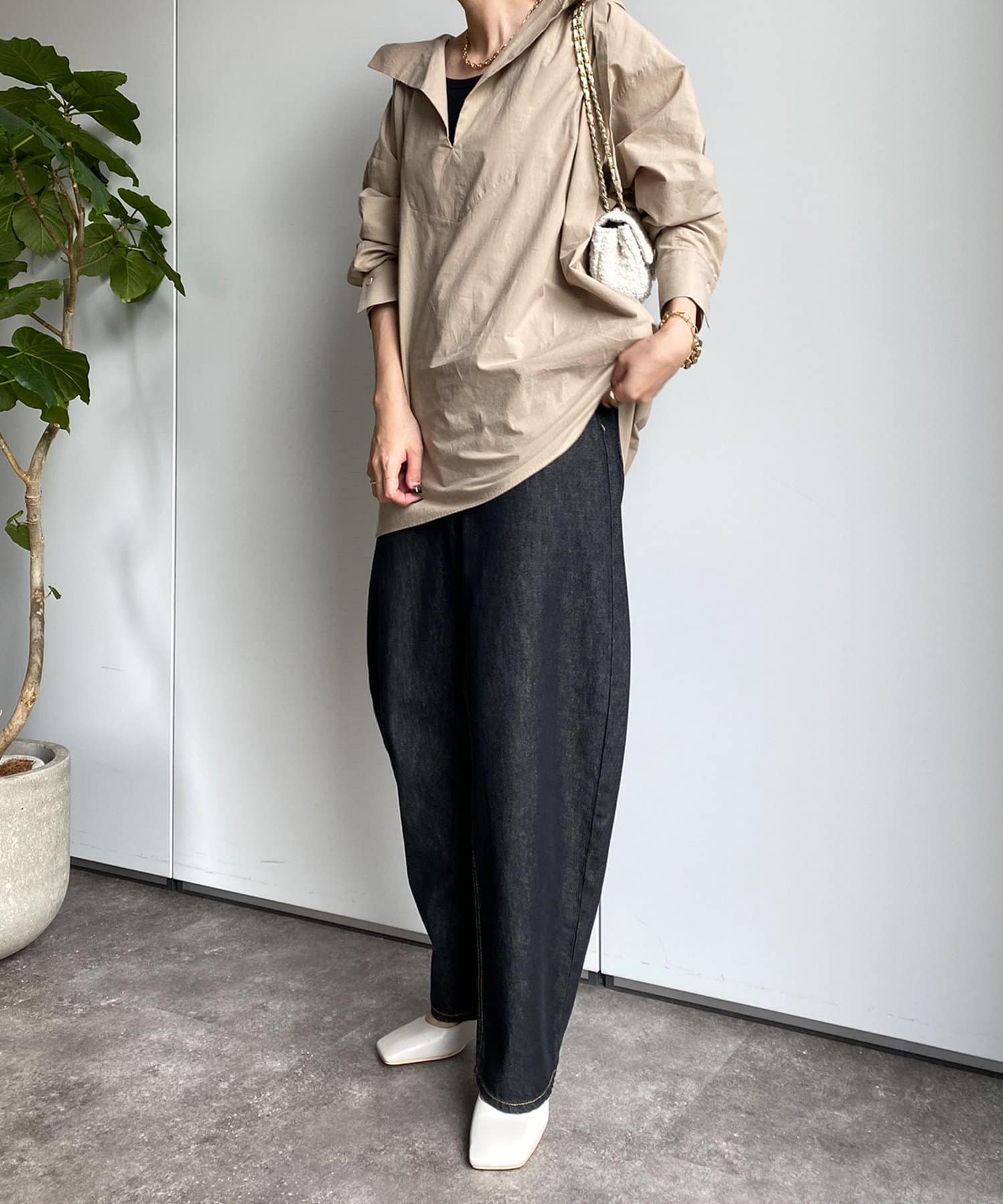 身体のラインを拾わない、ルーズなサイジングで程よく抜け感のあるリラクシーな印象を与えます。