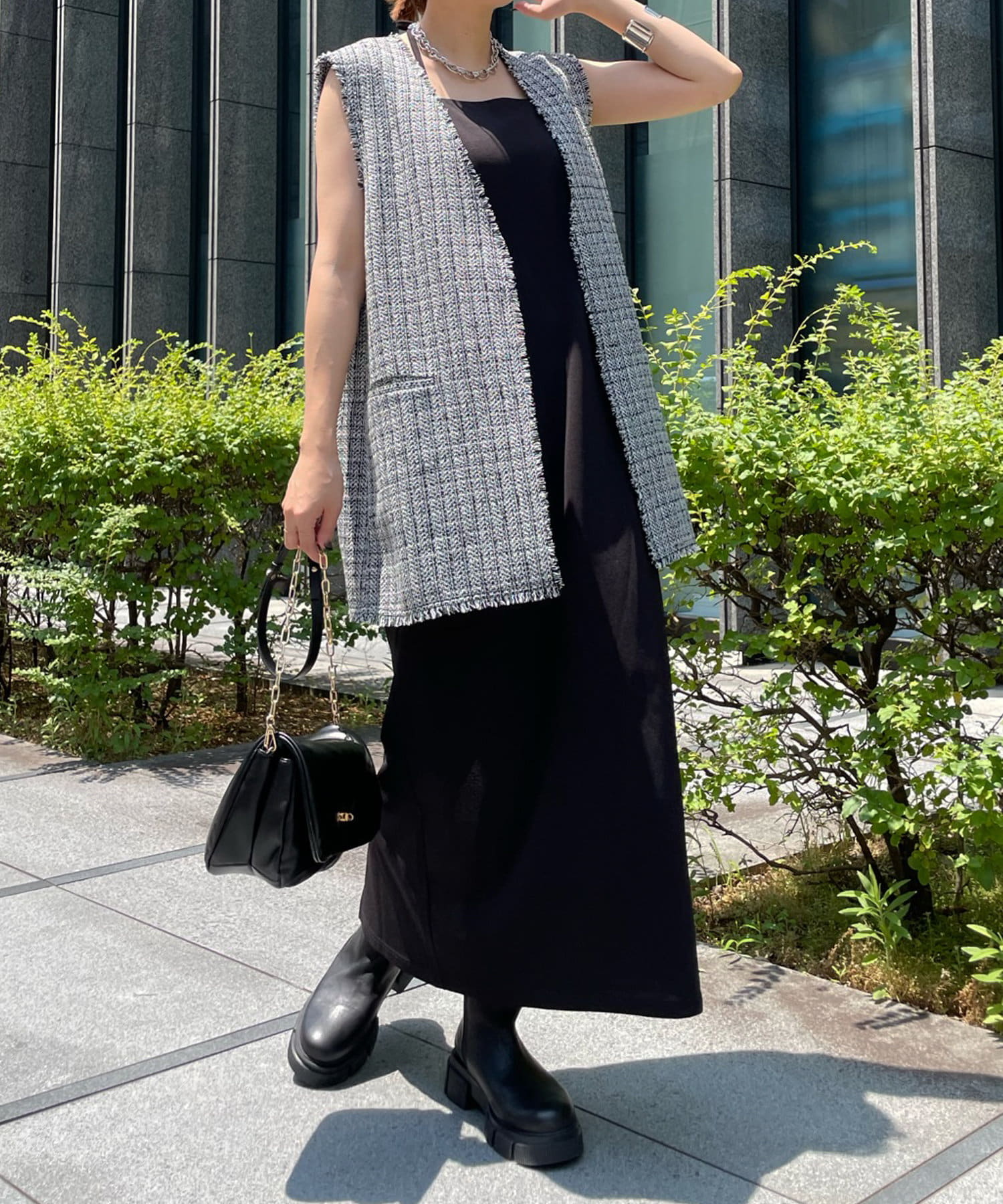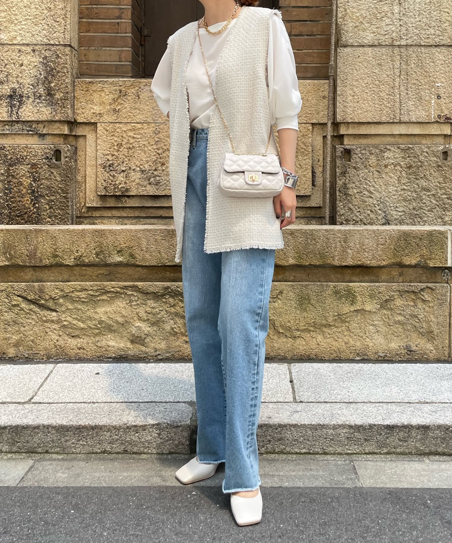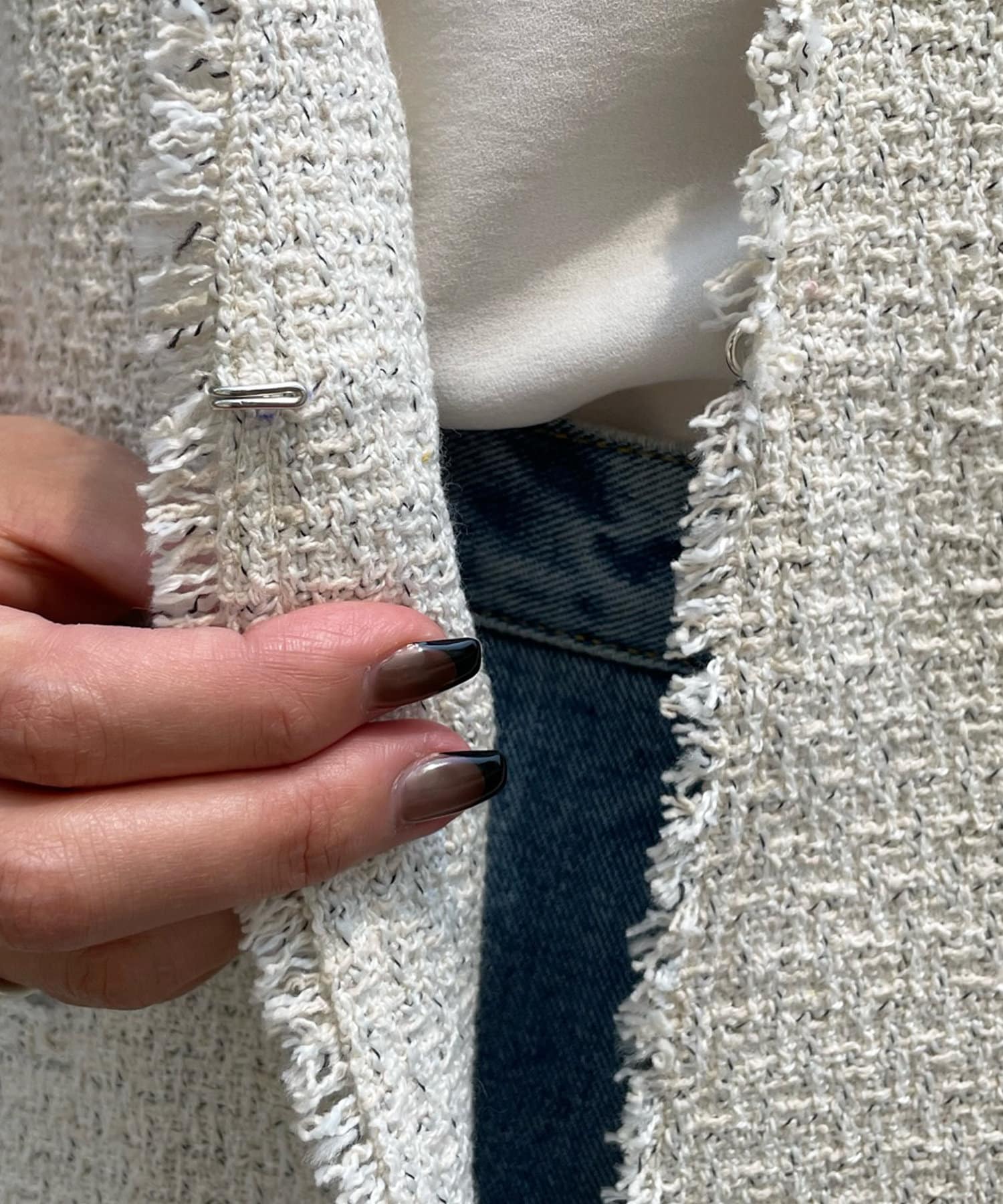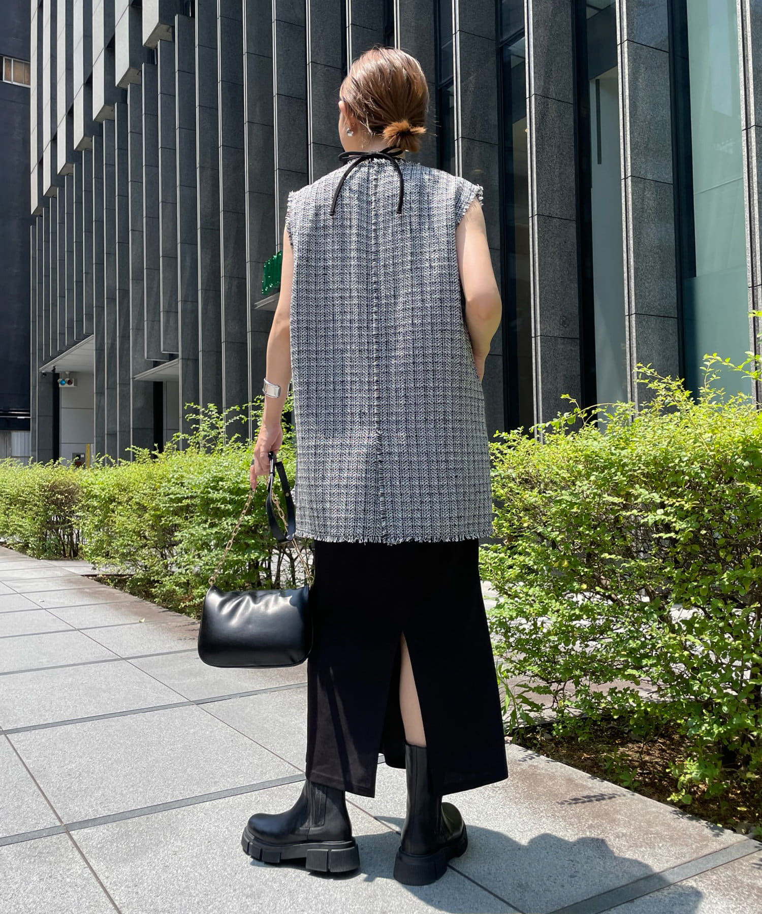 表情感のあるツイード素材は、高級感を漂わせながらもトレンドライクな印象を与えます。