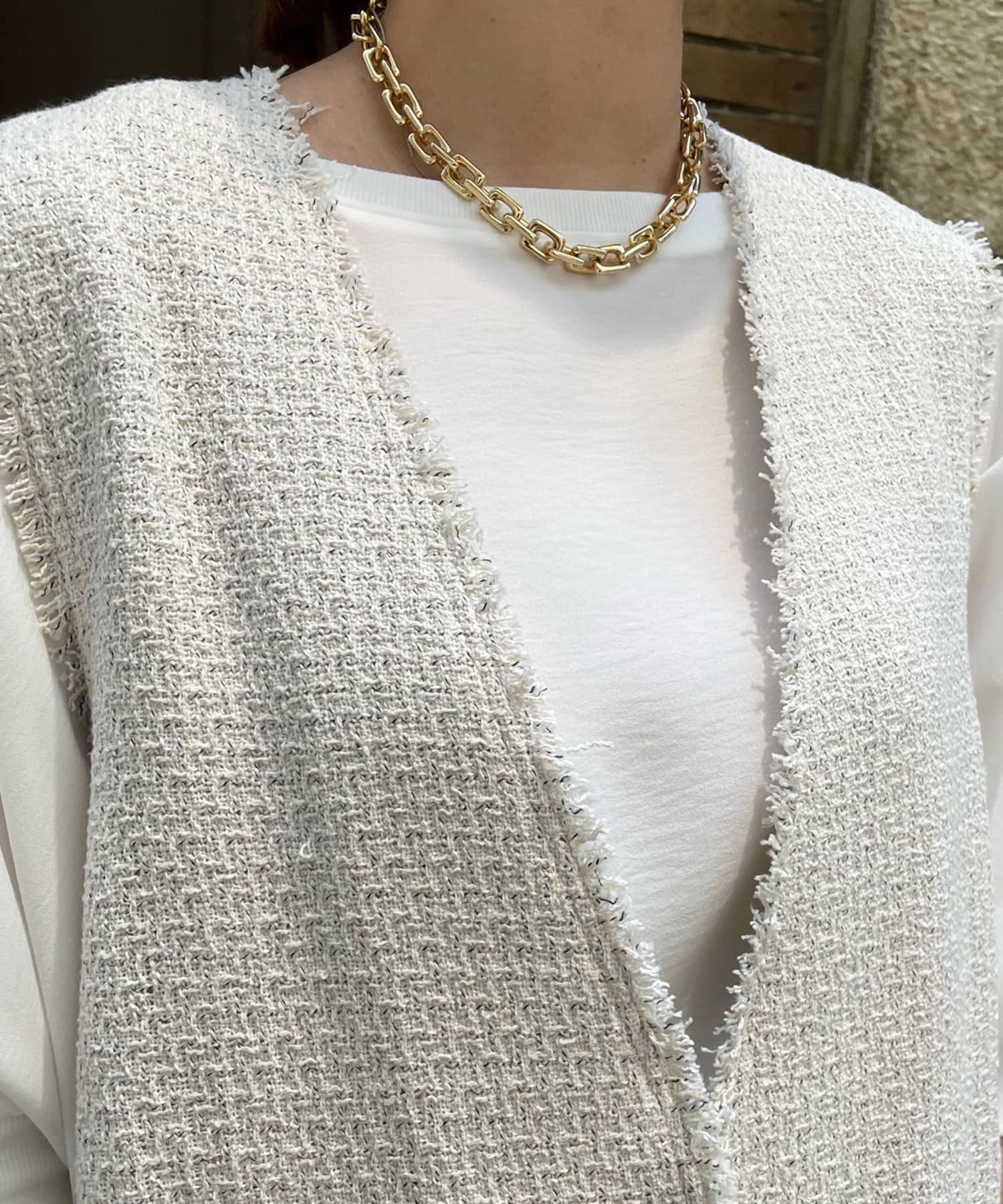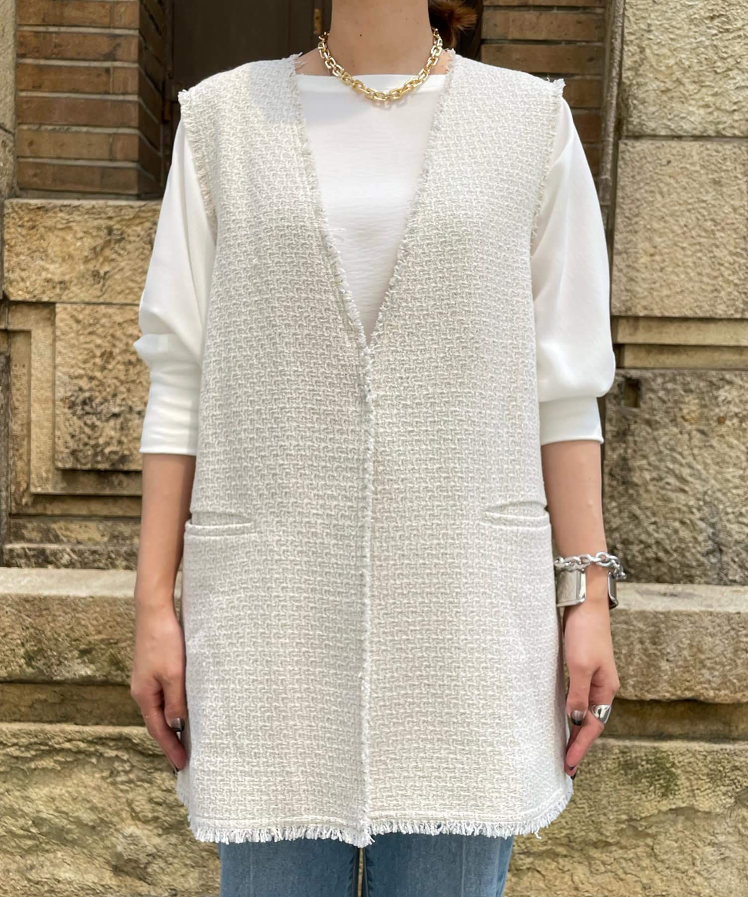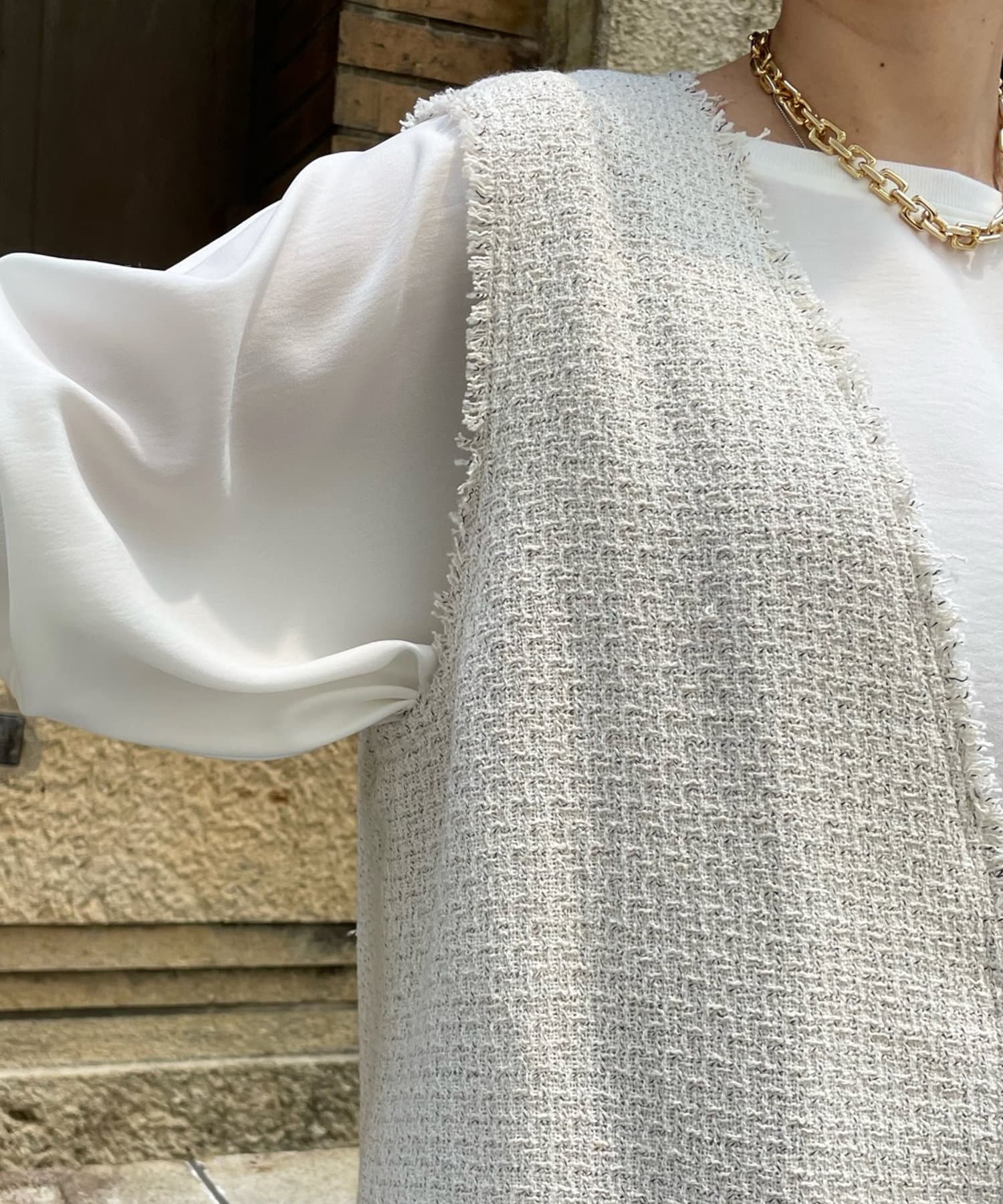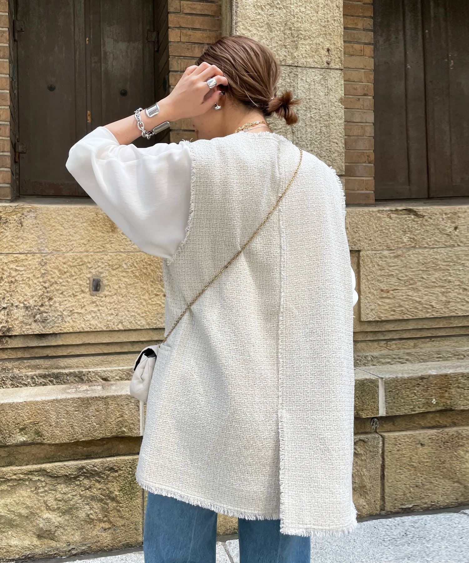 表情感のあるツイード素材は、高級感を漂わせながらもトレンドライクな印象を与えます。