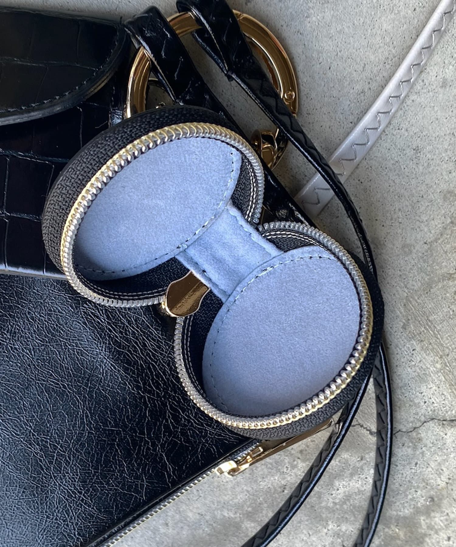 形の違う3つのポーチは簡単に取り外しが出来るので、お手持ちのバッグなどに付け替えも可能。使い勝手は自由自在です。