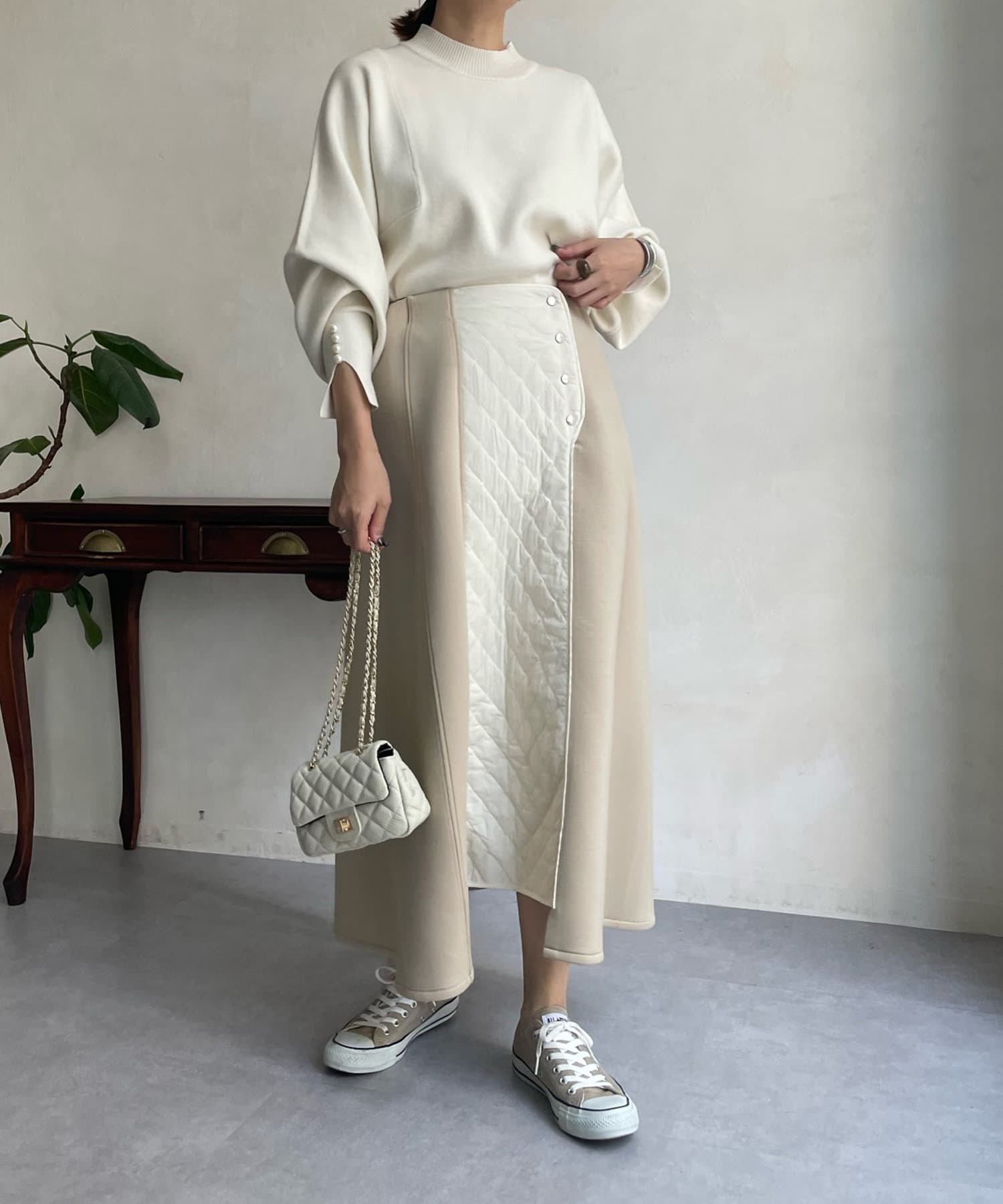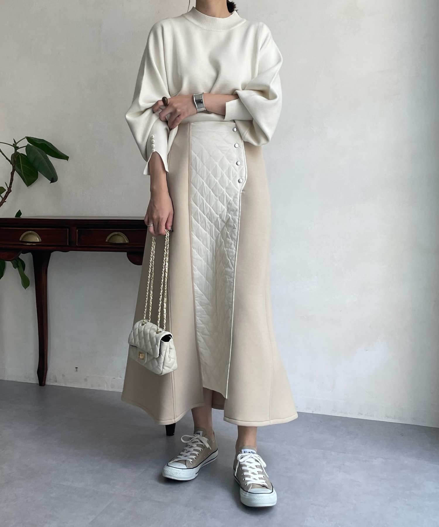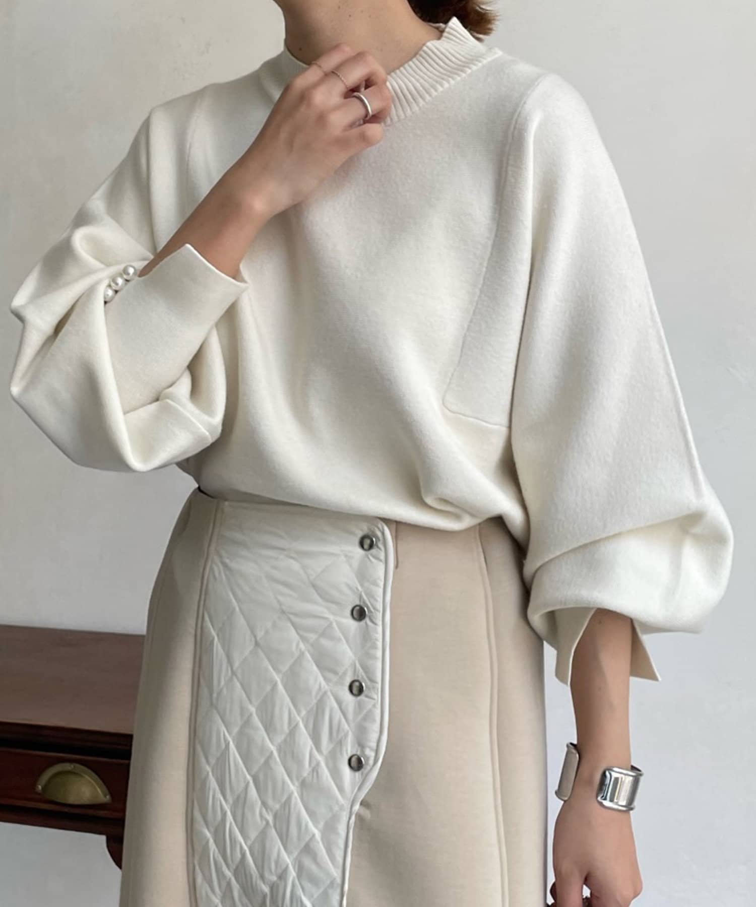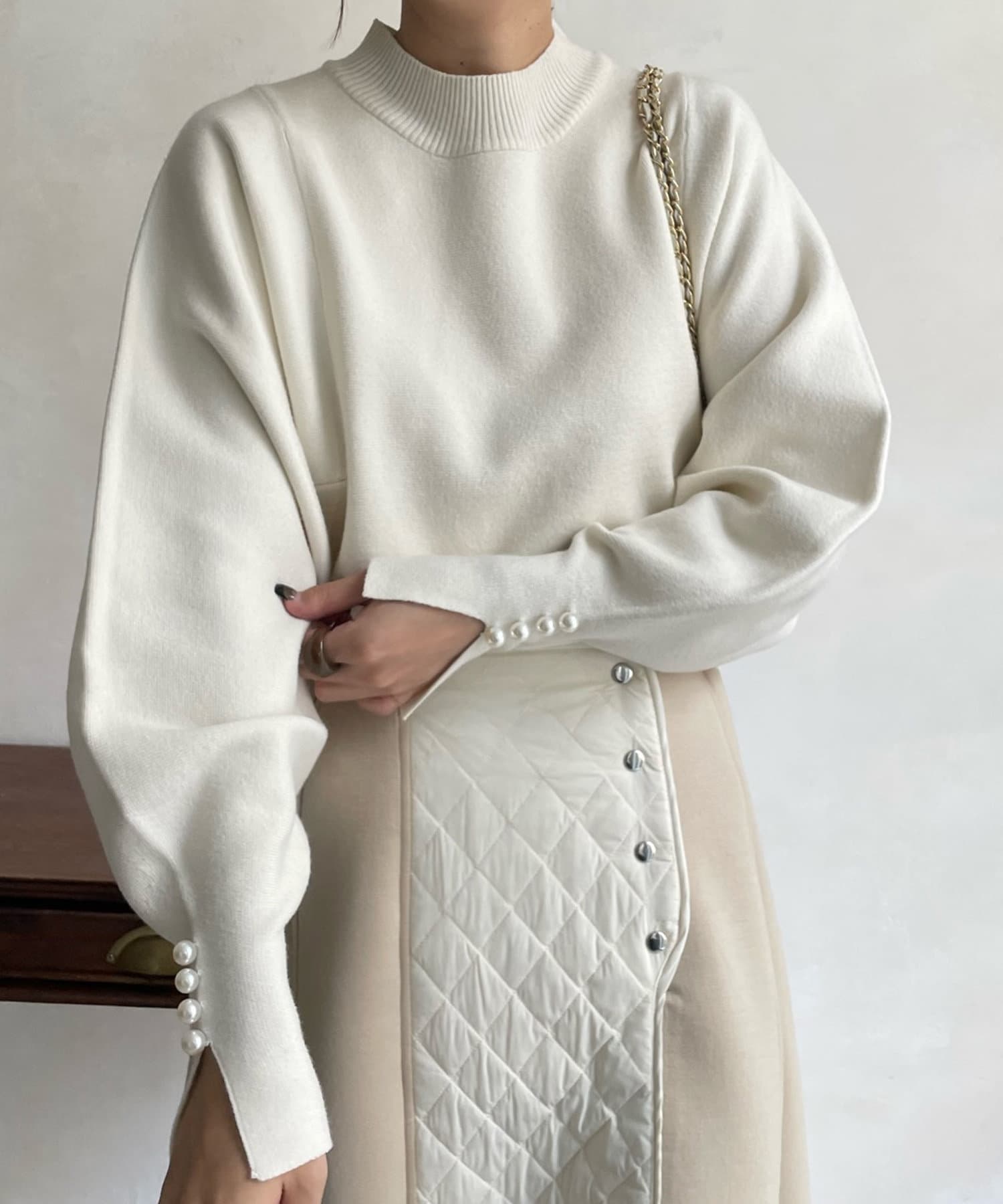 袖口のパールデザインがさりげなくコーディネートのポイントになってくれます◎