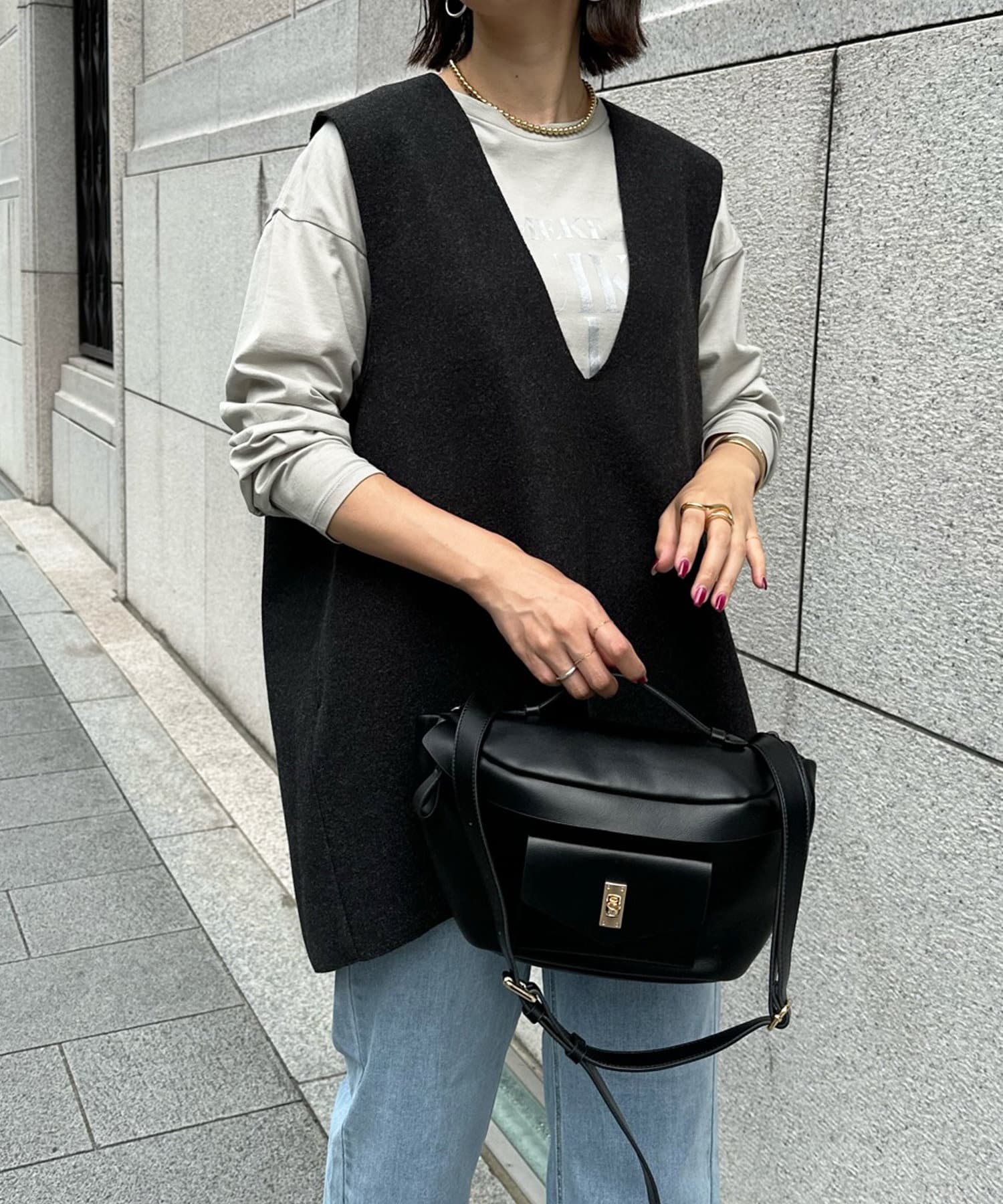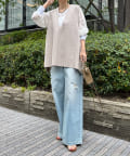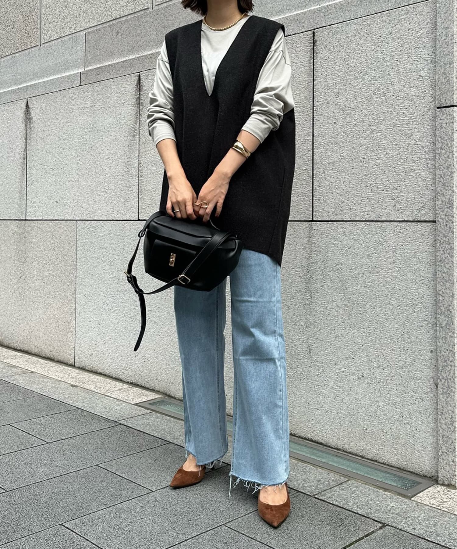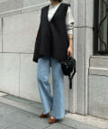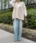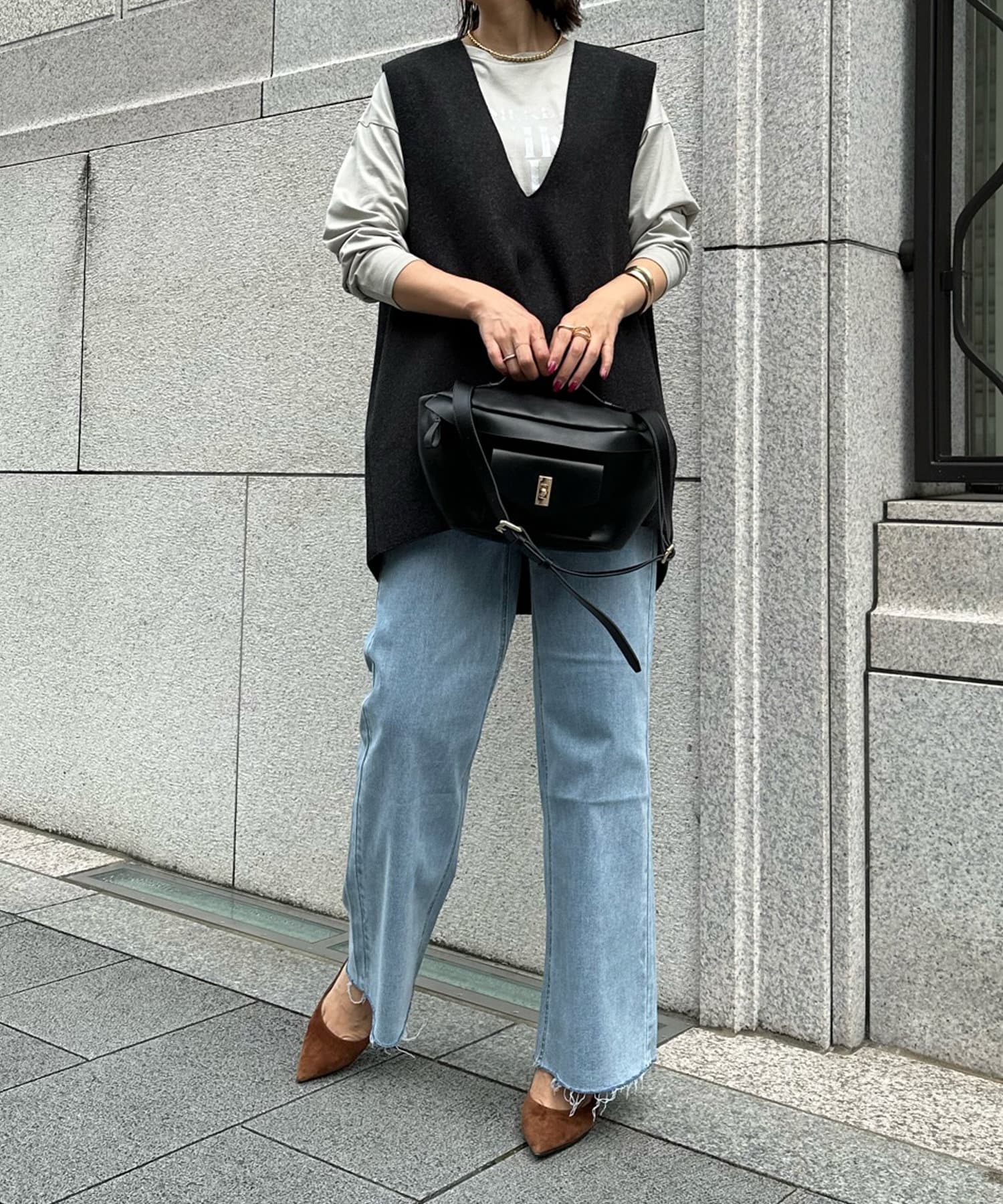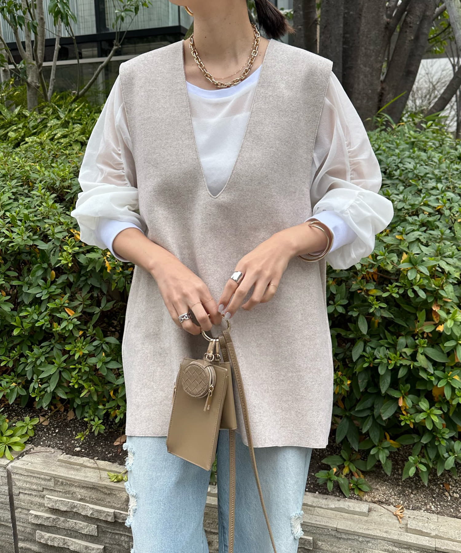 深めのVネックがレイヤードした時におしゃれに魅せてくれるポイント。カットソーやブラウスのレイヤードにはもちろん寒い時期にはアウターの下に忍ばせたりとロングシーズン活躍してくれます。
