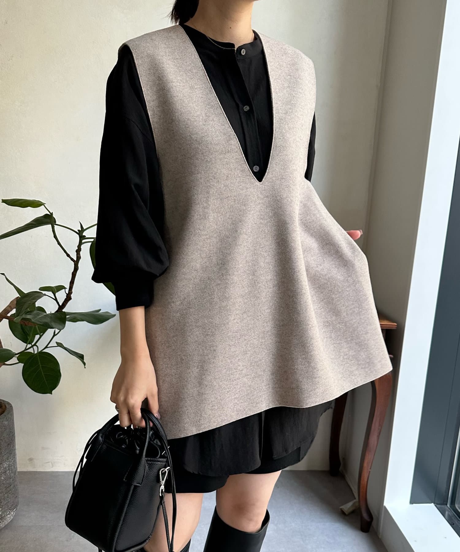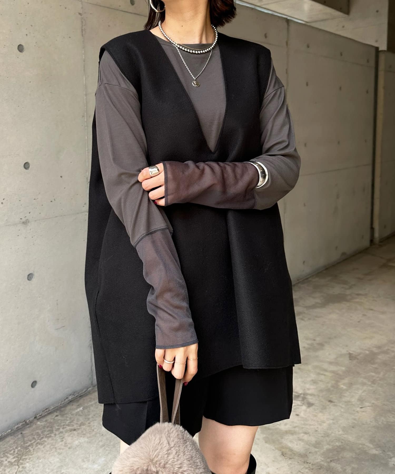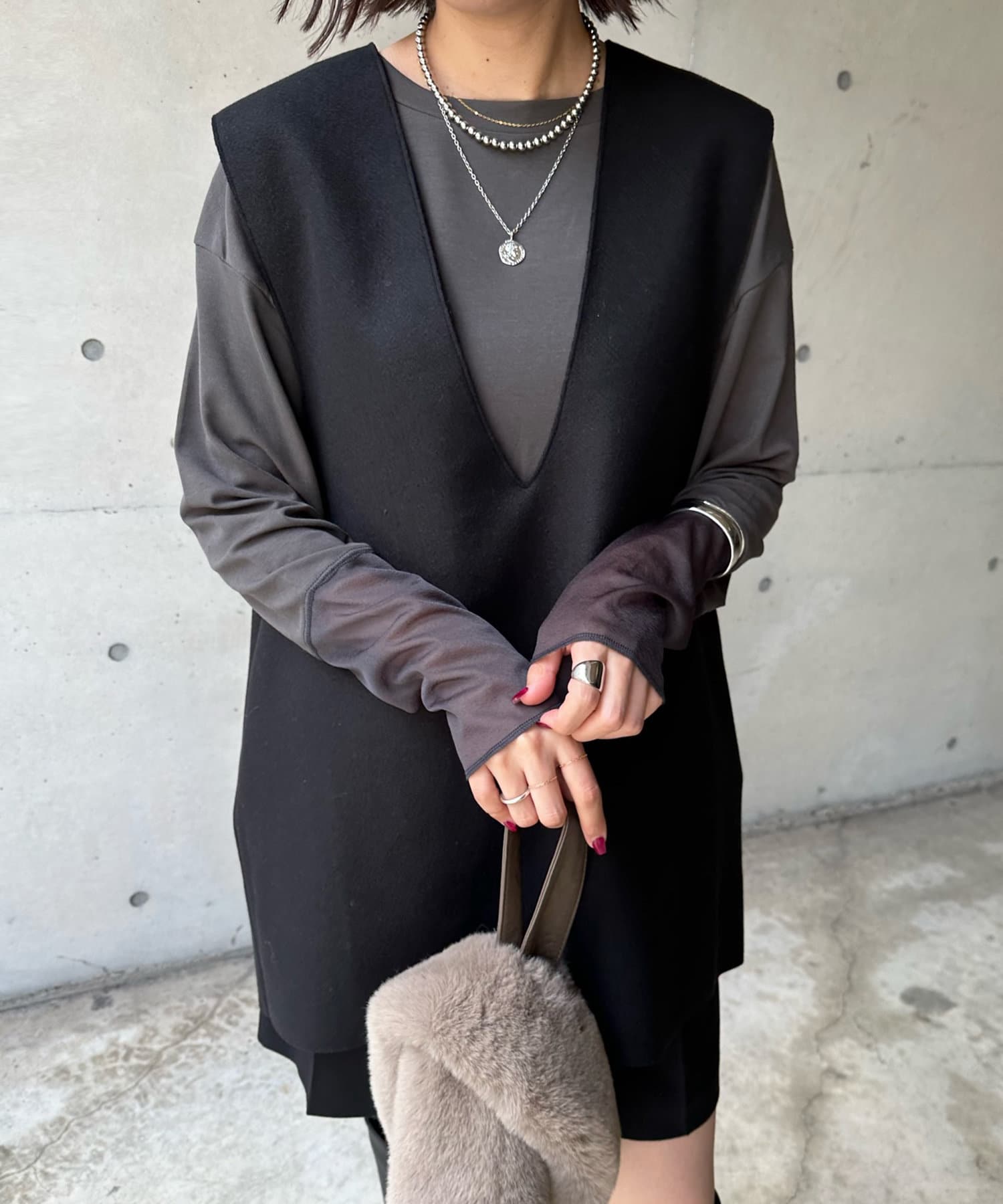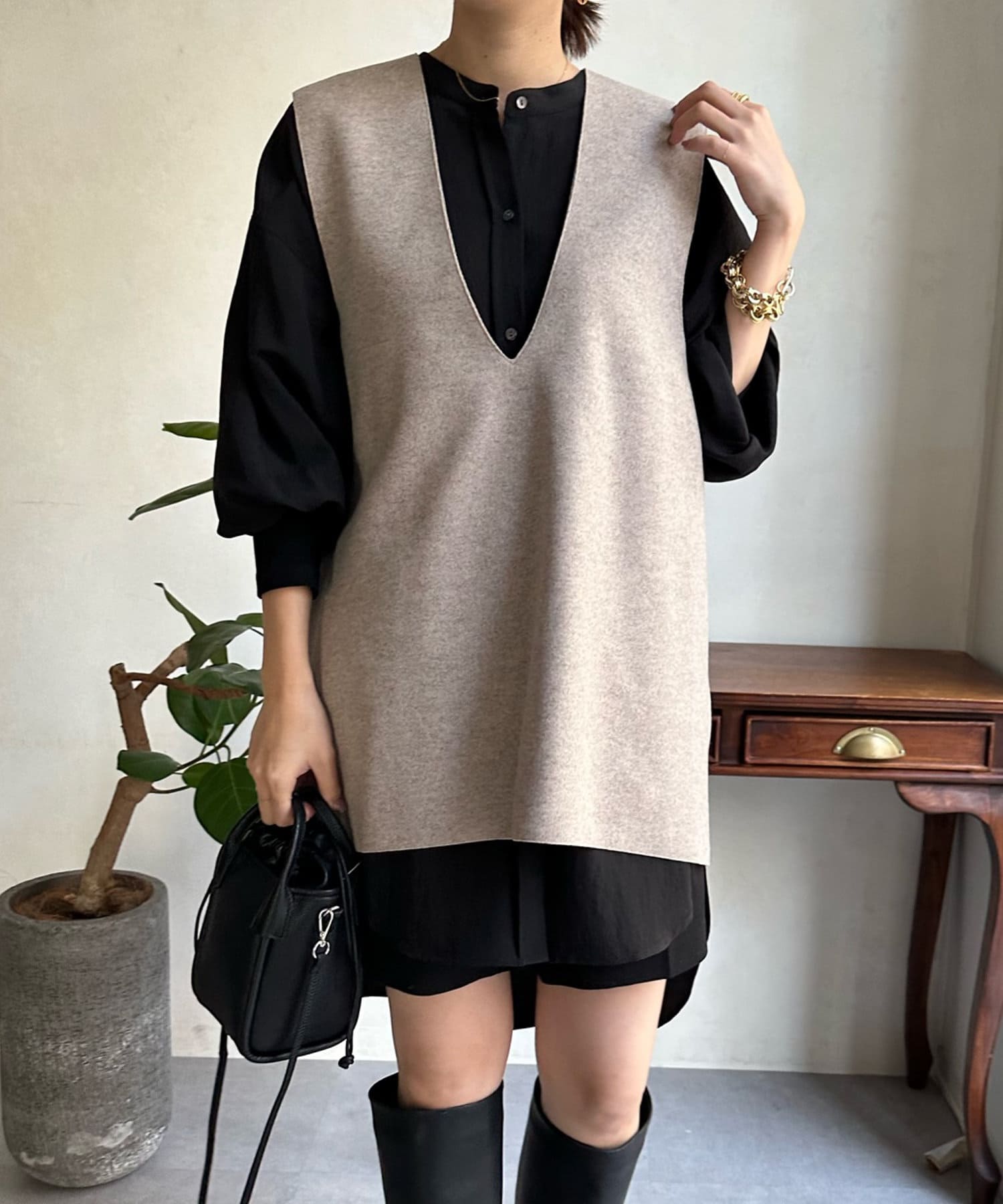 インナーはブラウス、薄手のニットなどの上に着れるので使いやすいアイテムです