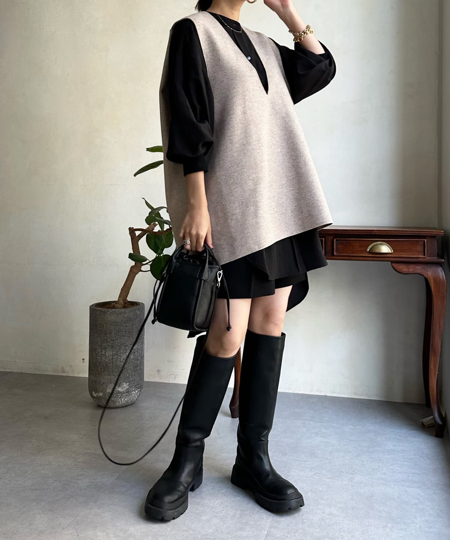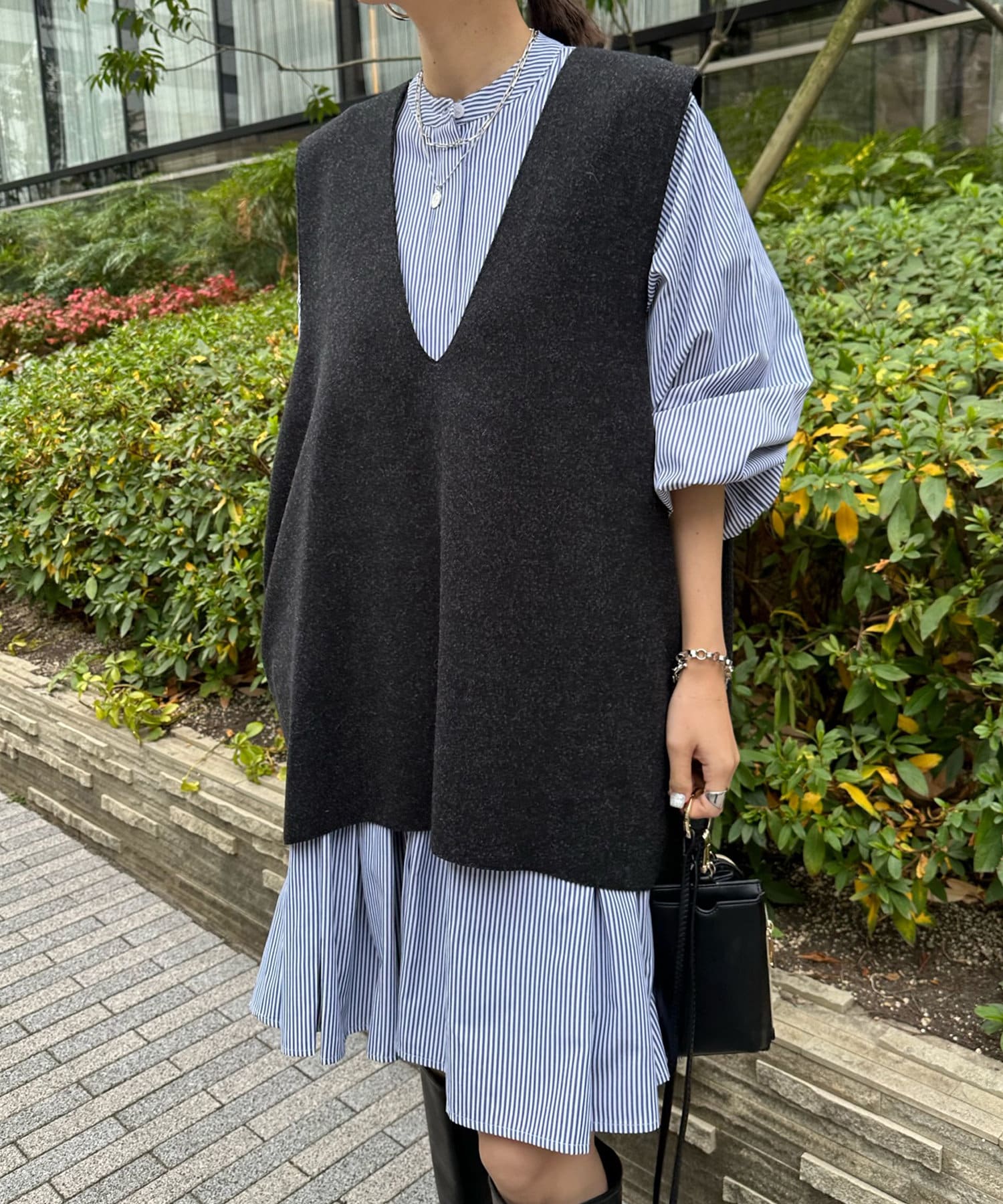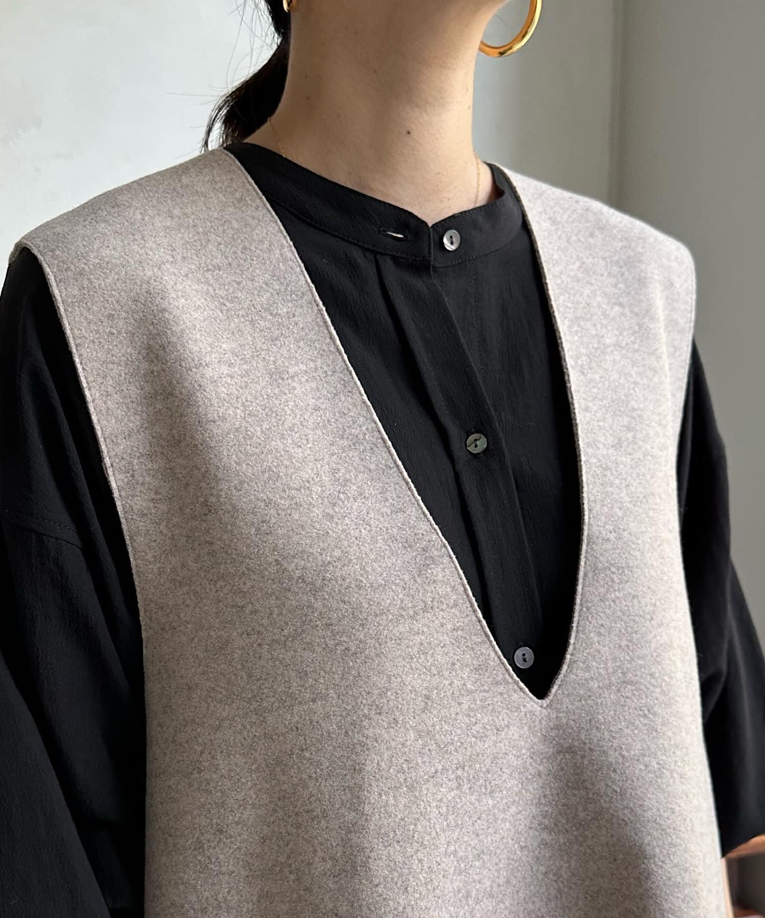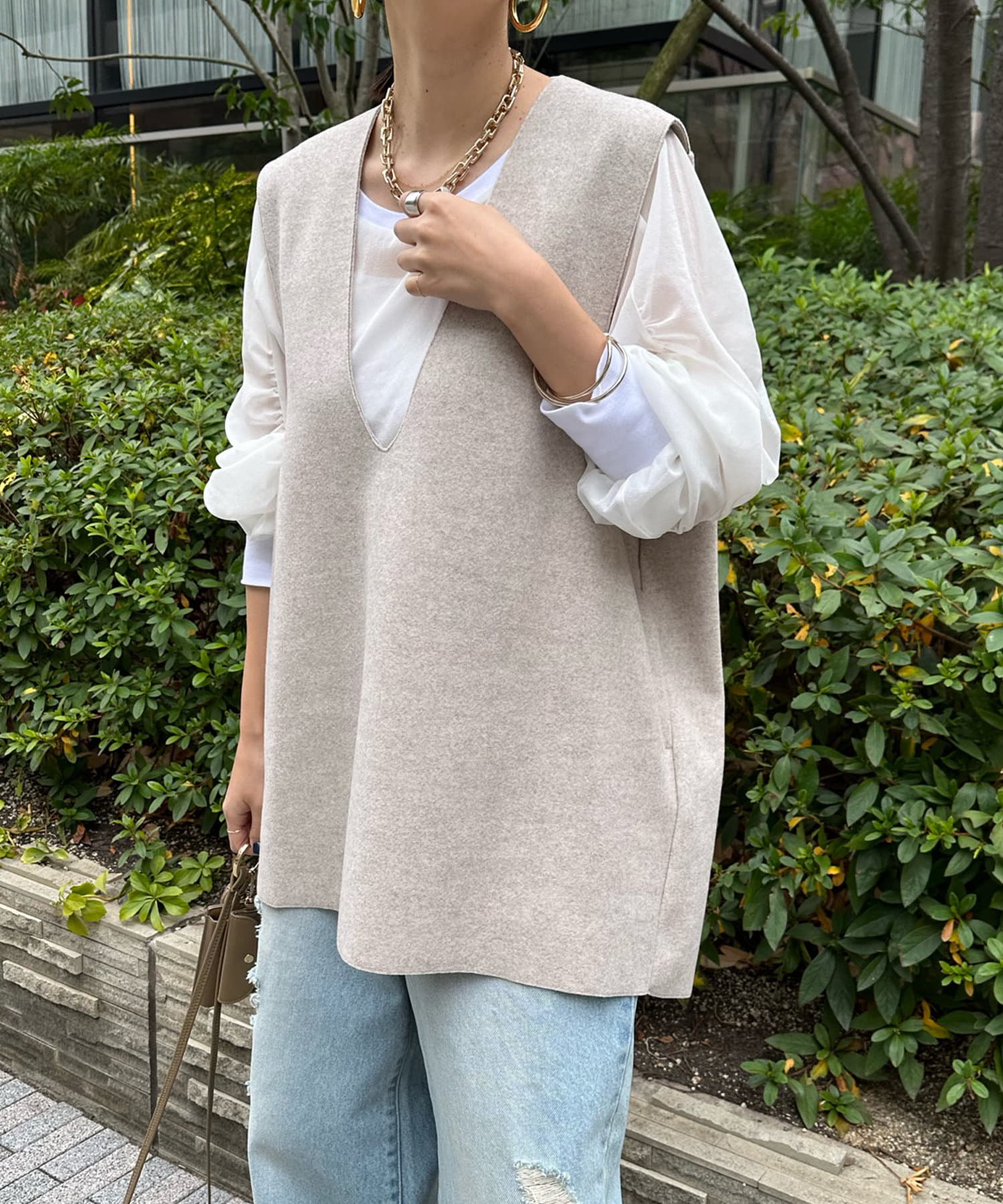 インナーはブラウス、薄手のニットなどの上に着れるので使いやすいアイテムです