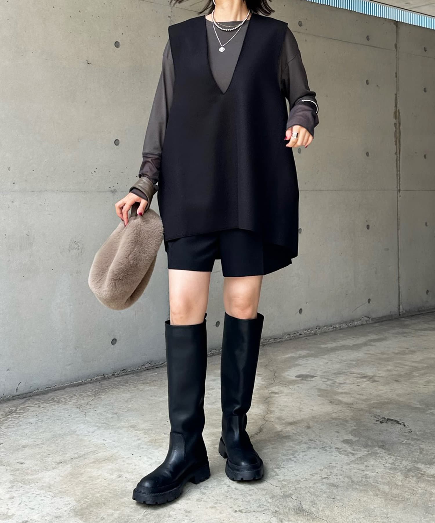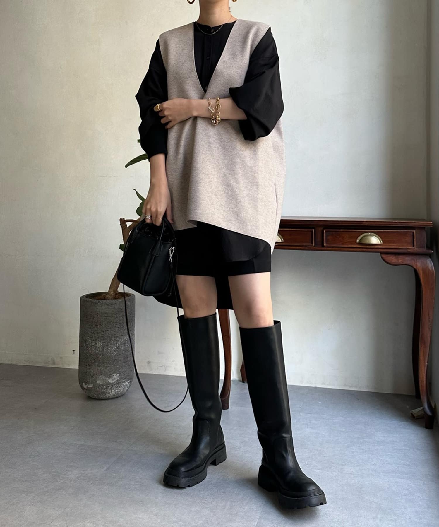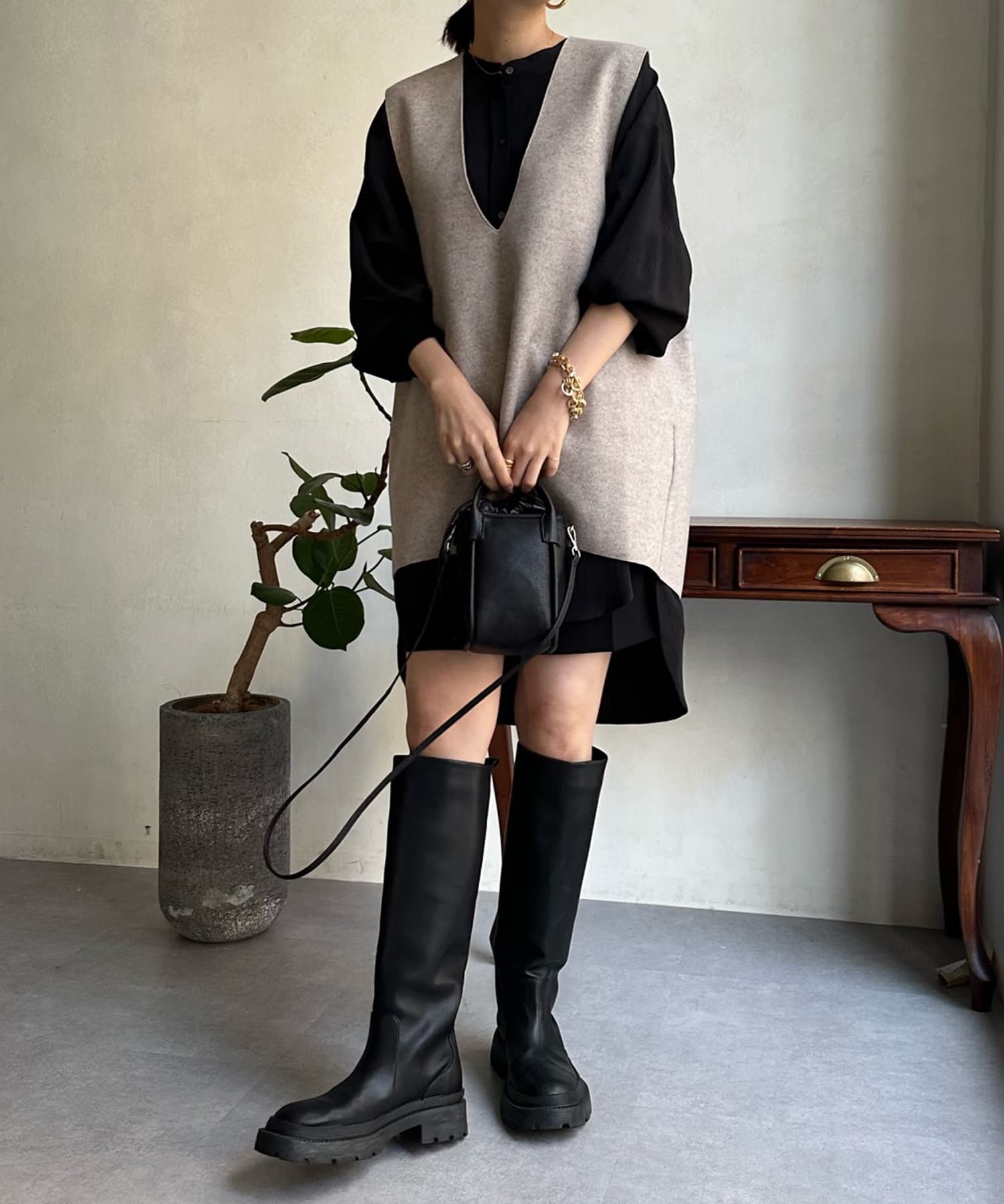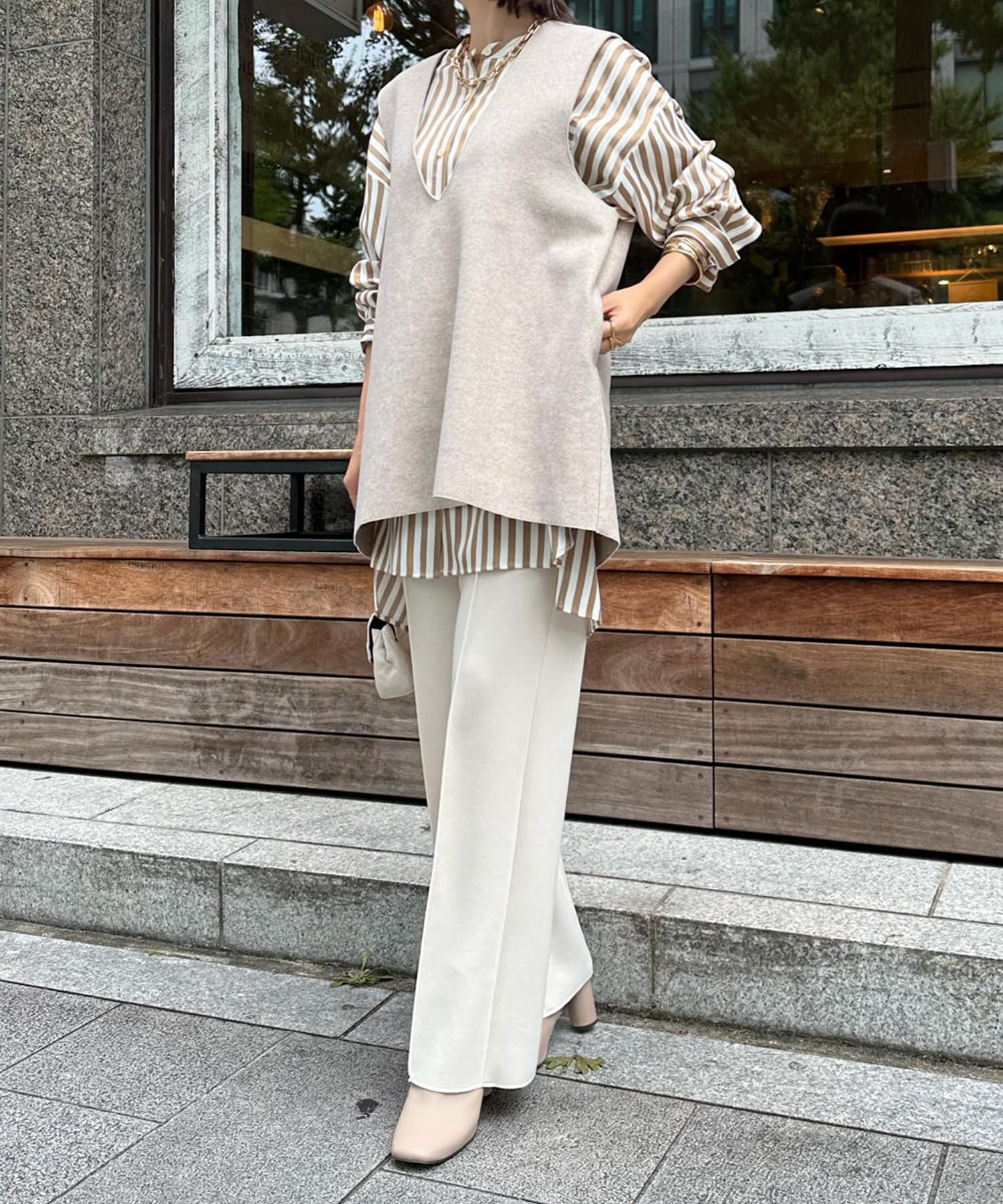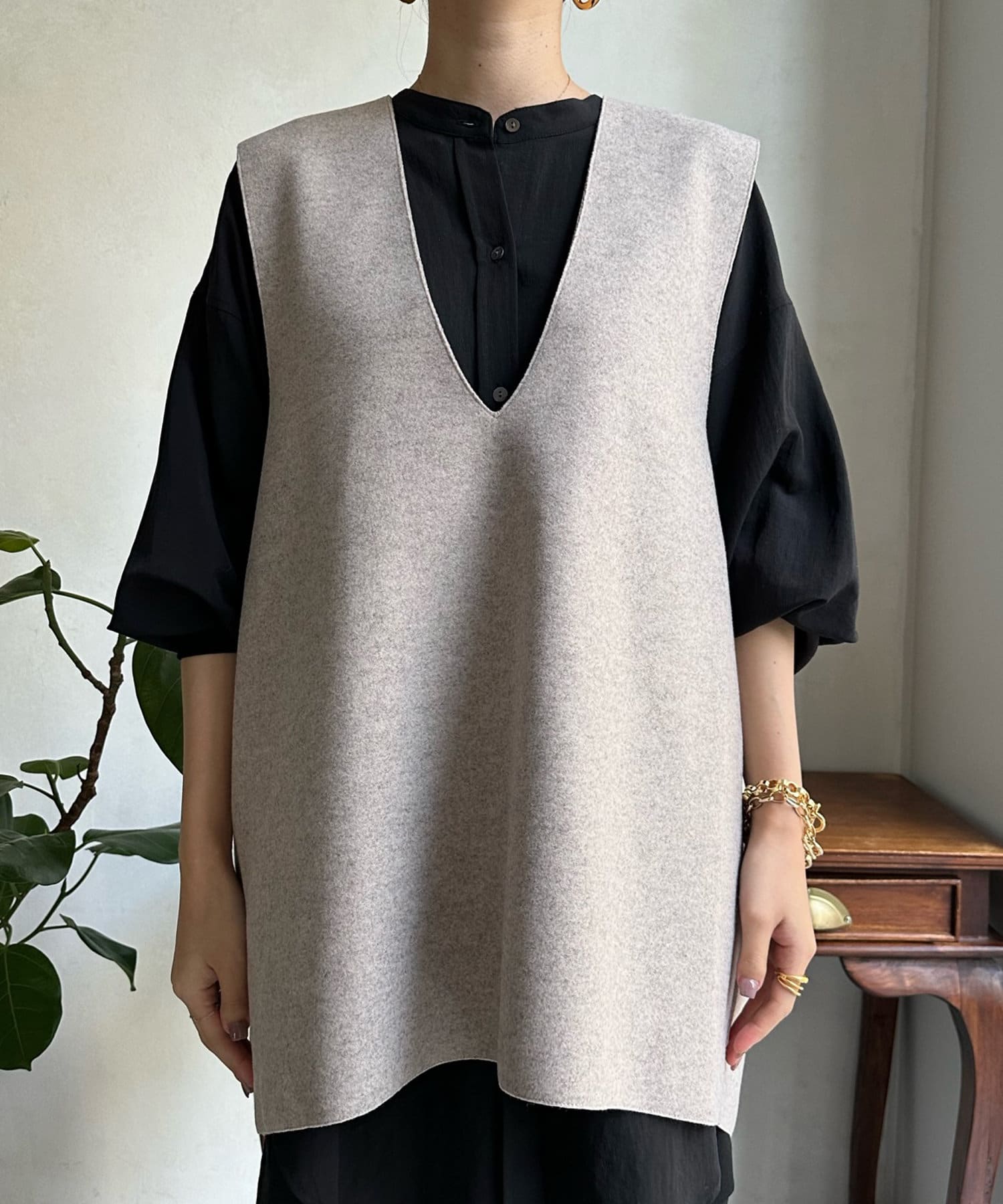 インナーはブラウス、薄手のニットなどの上に着れるので使いやすいアイテムです