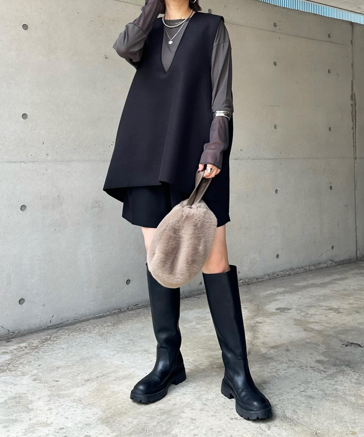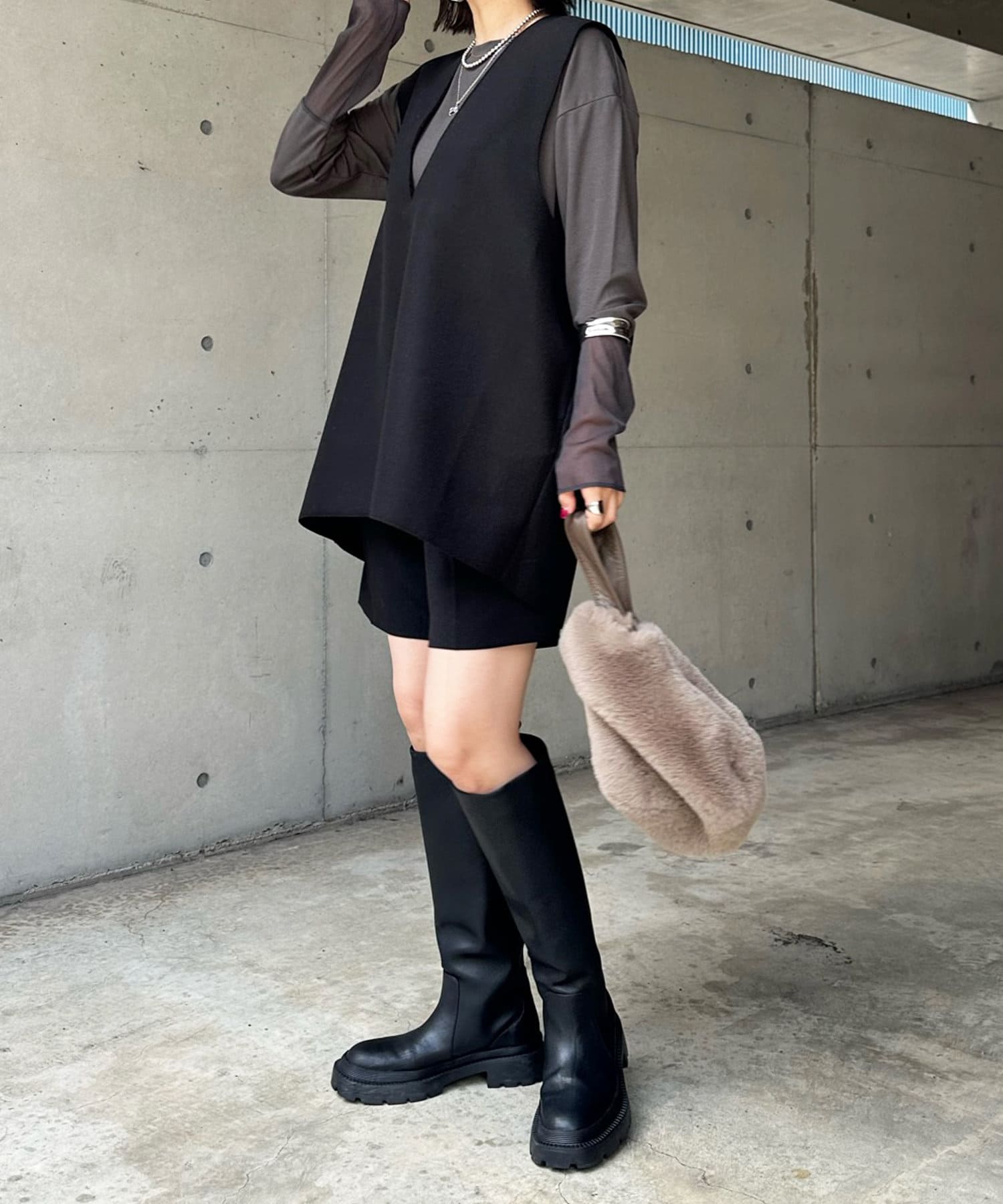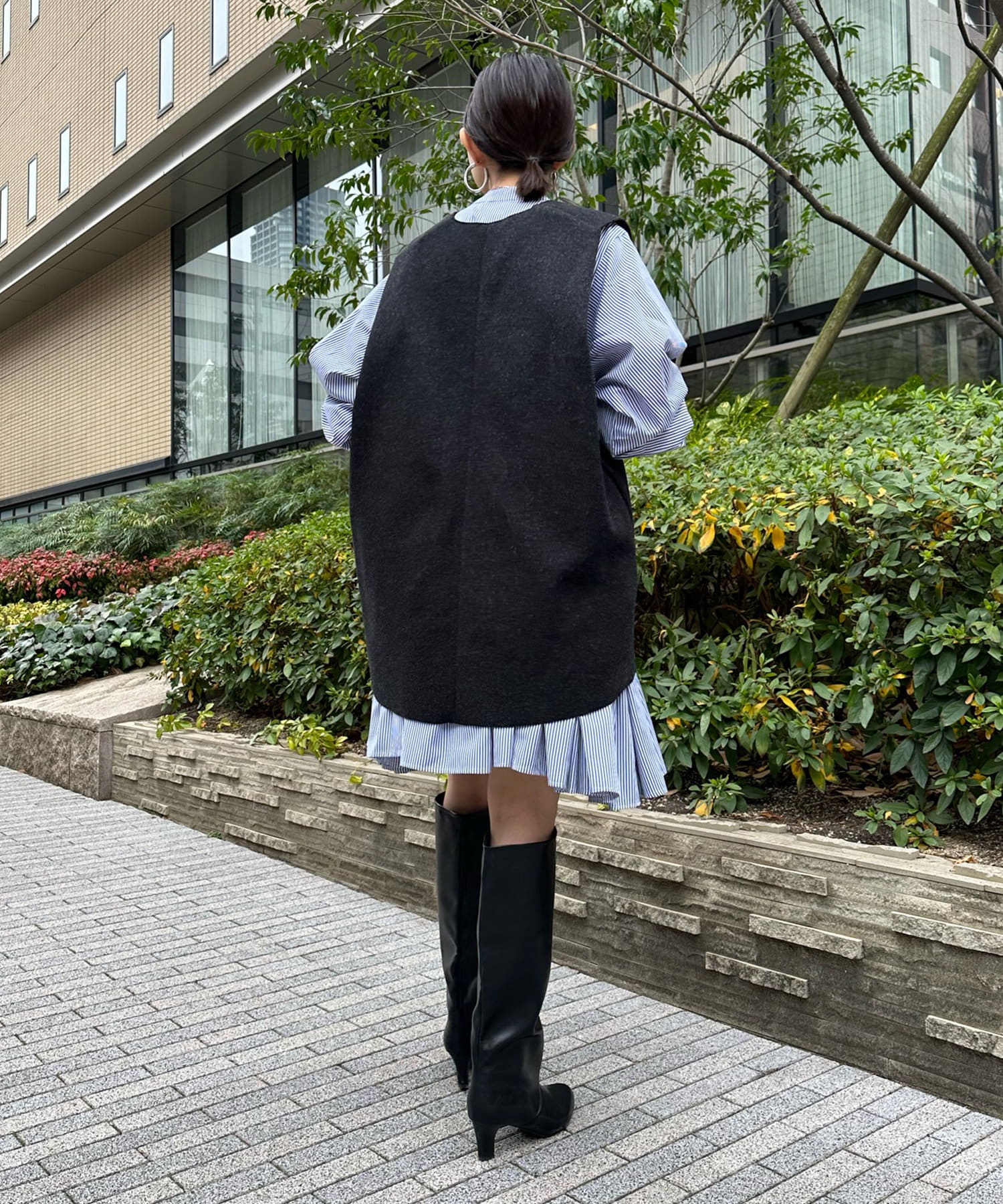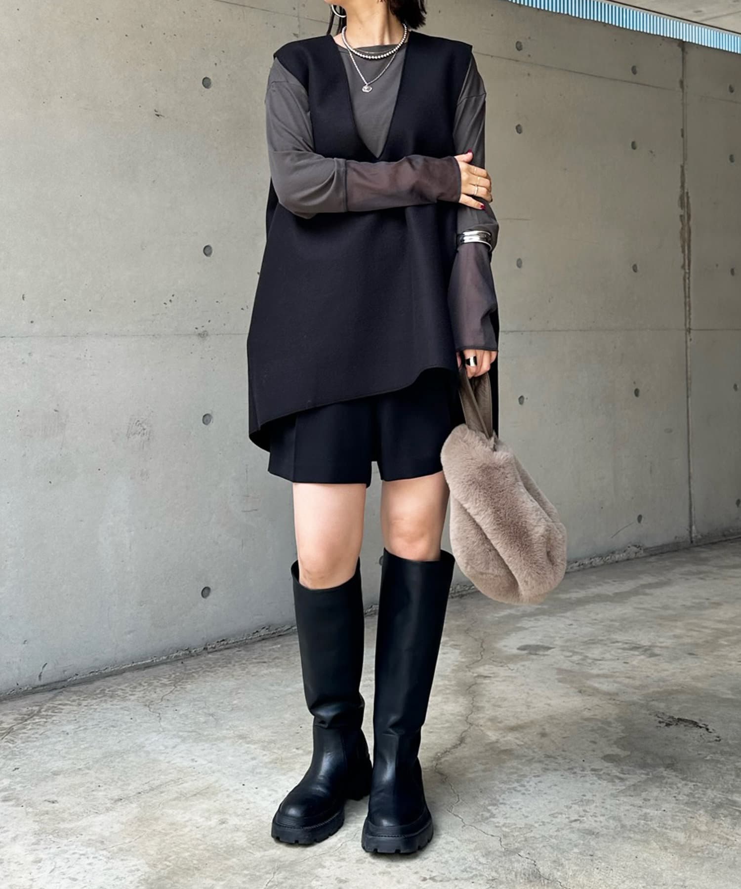 インナーはブラウス、薄手のニットなどの上に着れるので使いやすいアイテムです