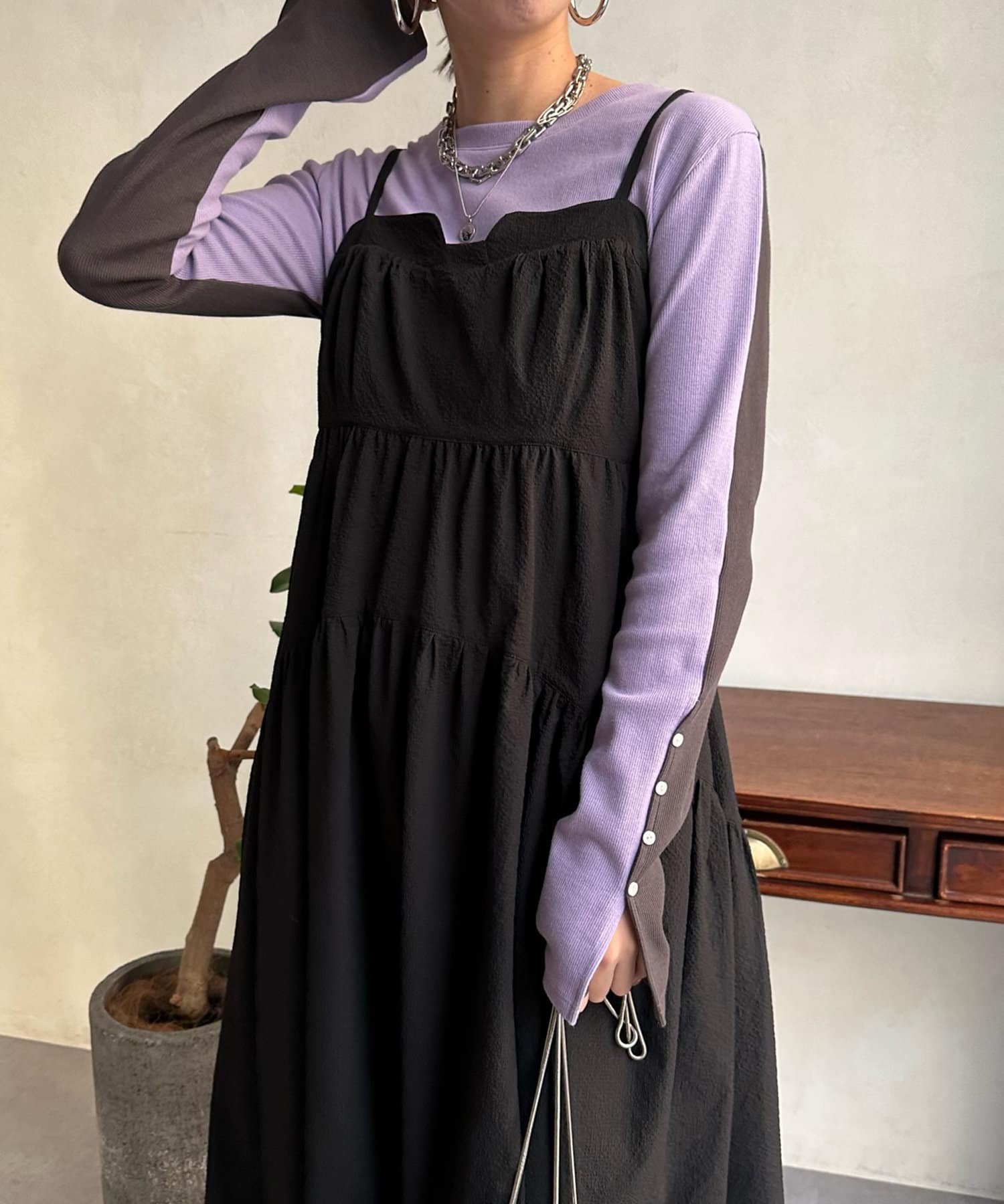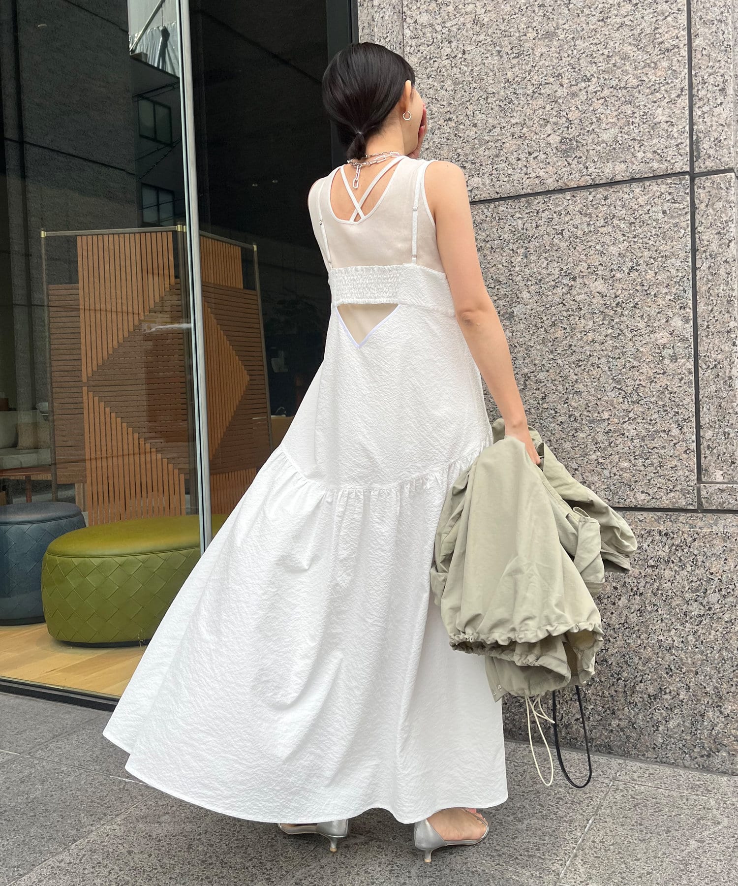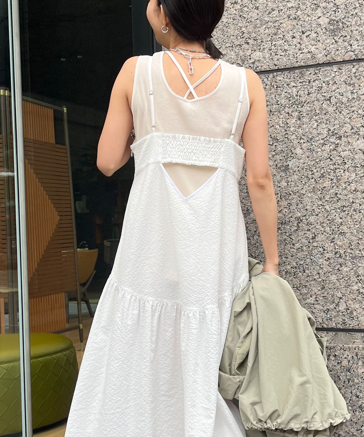 バックまでこだわった華奢ストラップのキャミワンピ!
