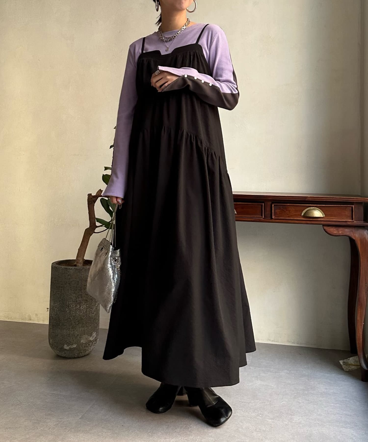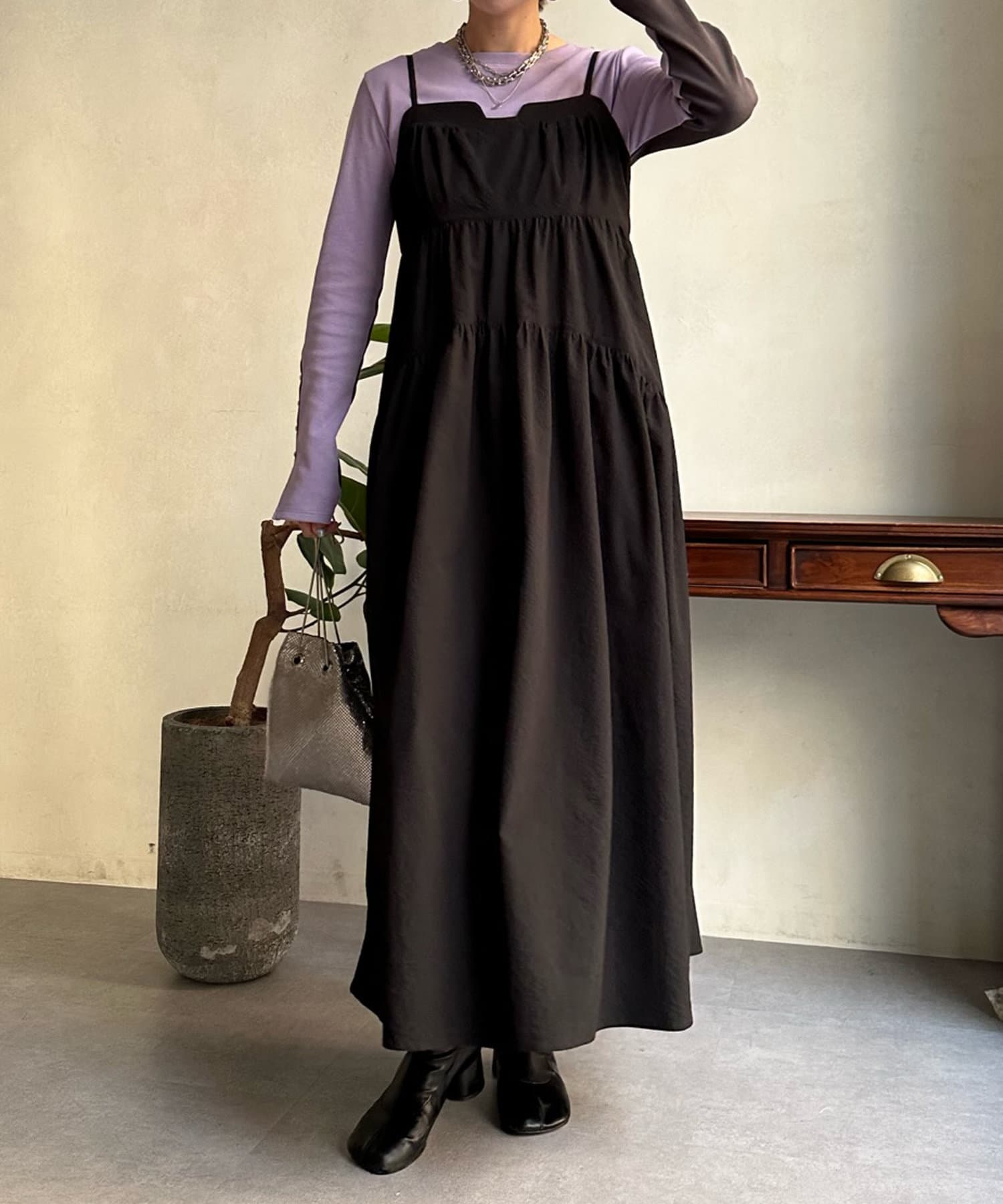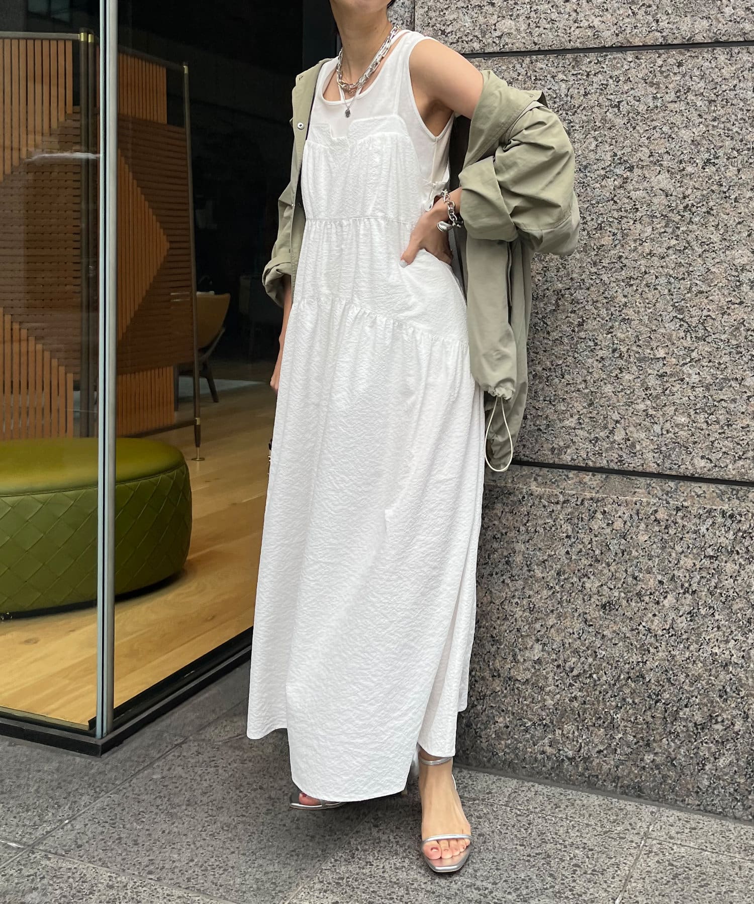 程良いAラインシルエットの、魅力たっぷりなキャミワンピースが登場。