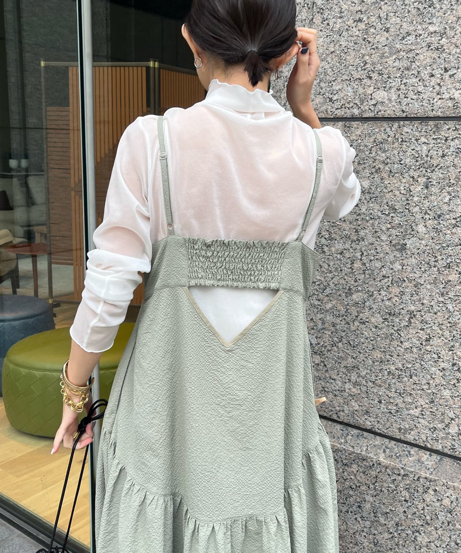 華奢な肩ストラップ&バックシャンデザインで後ろ姿も抜かりなく女性らしい印象を与えてくれます。