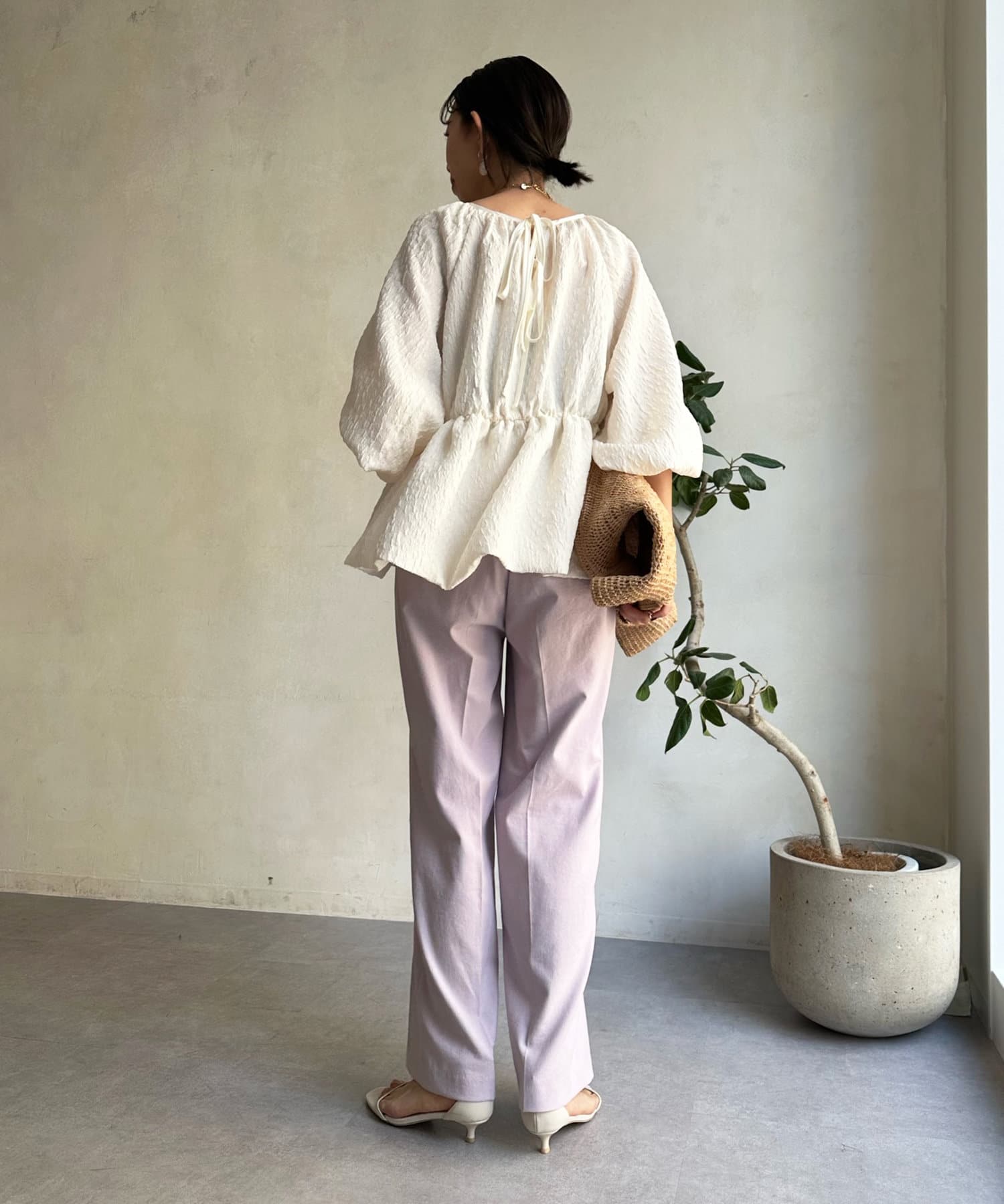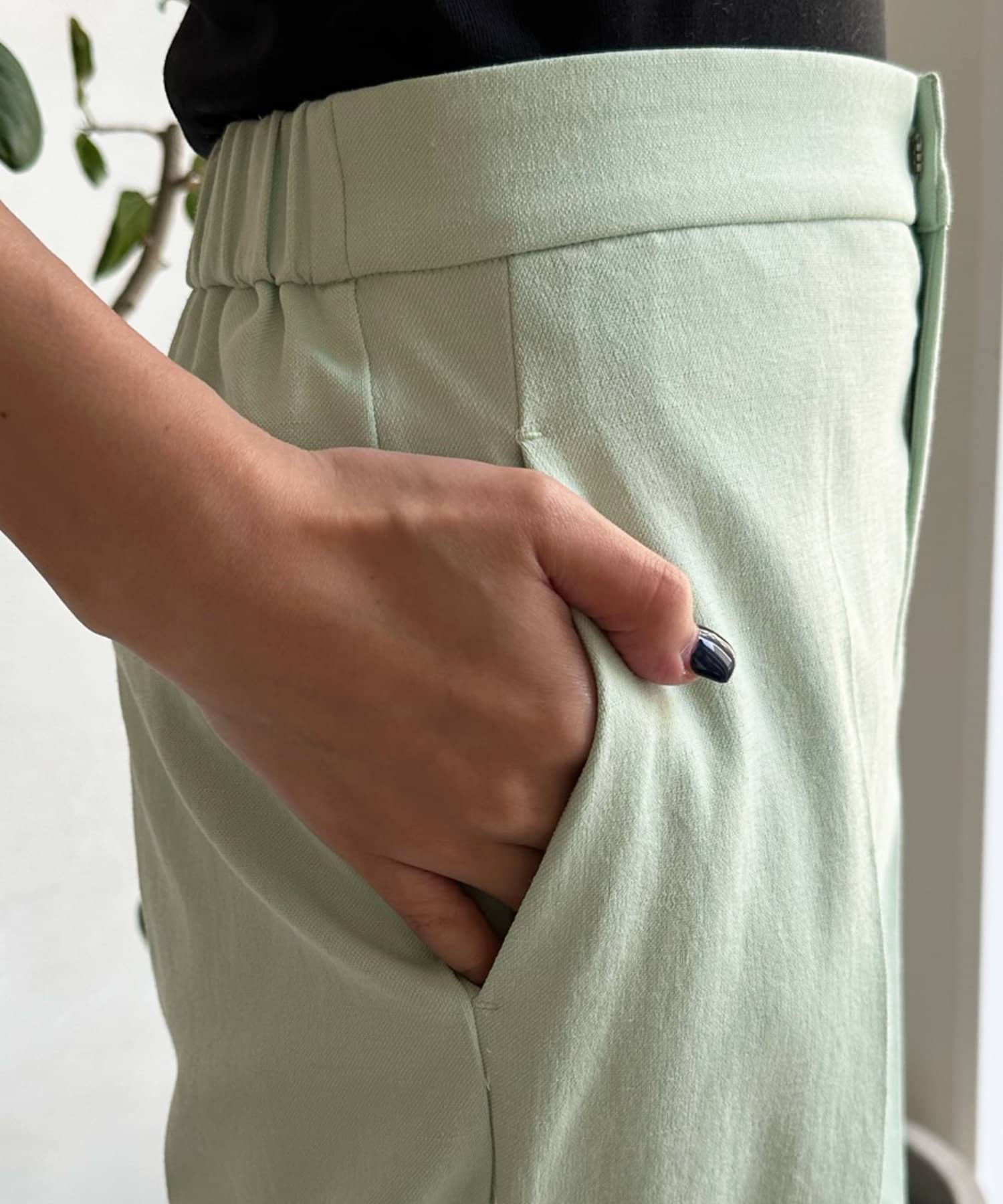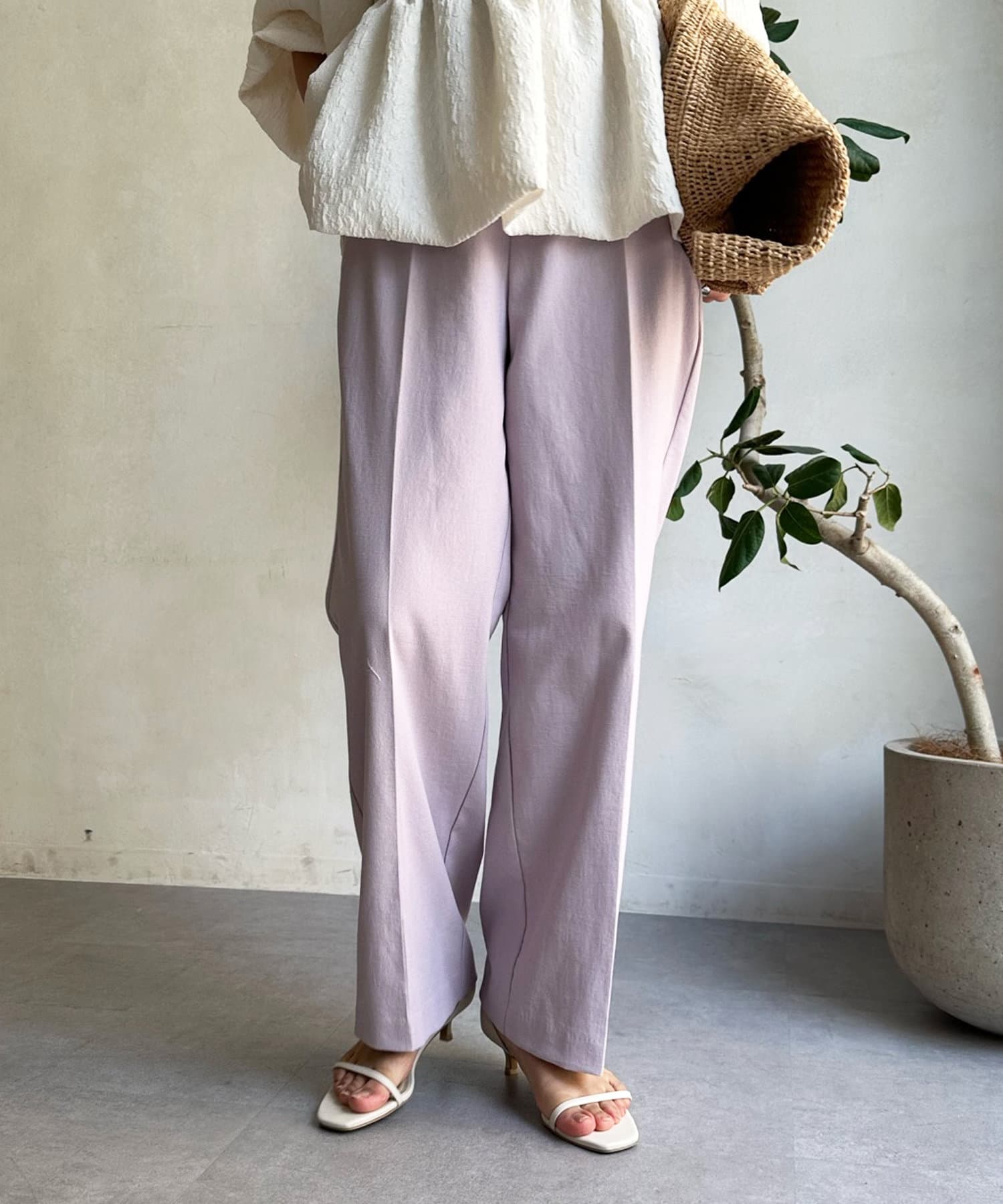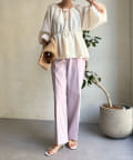 センタープレス入りできちんとした印象ながらも、後ろウエストにゴムを入れることで着心地の良さも実現しました。